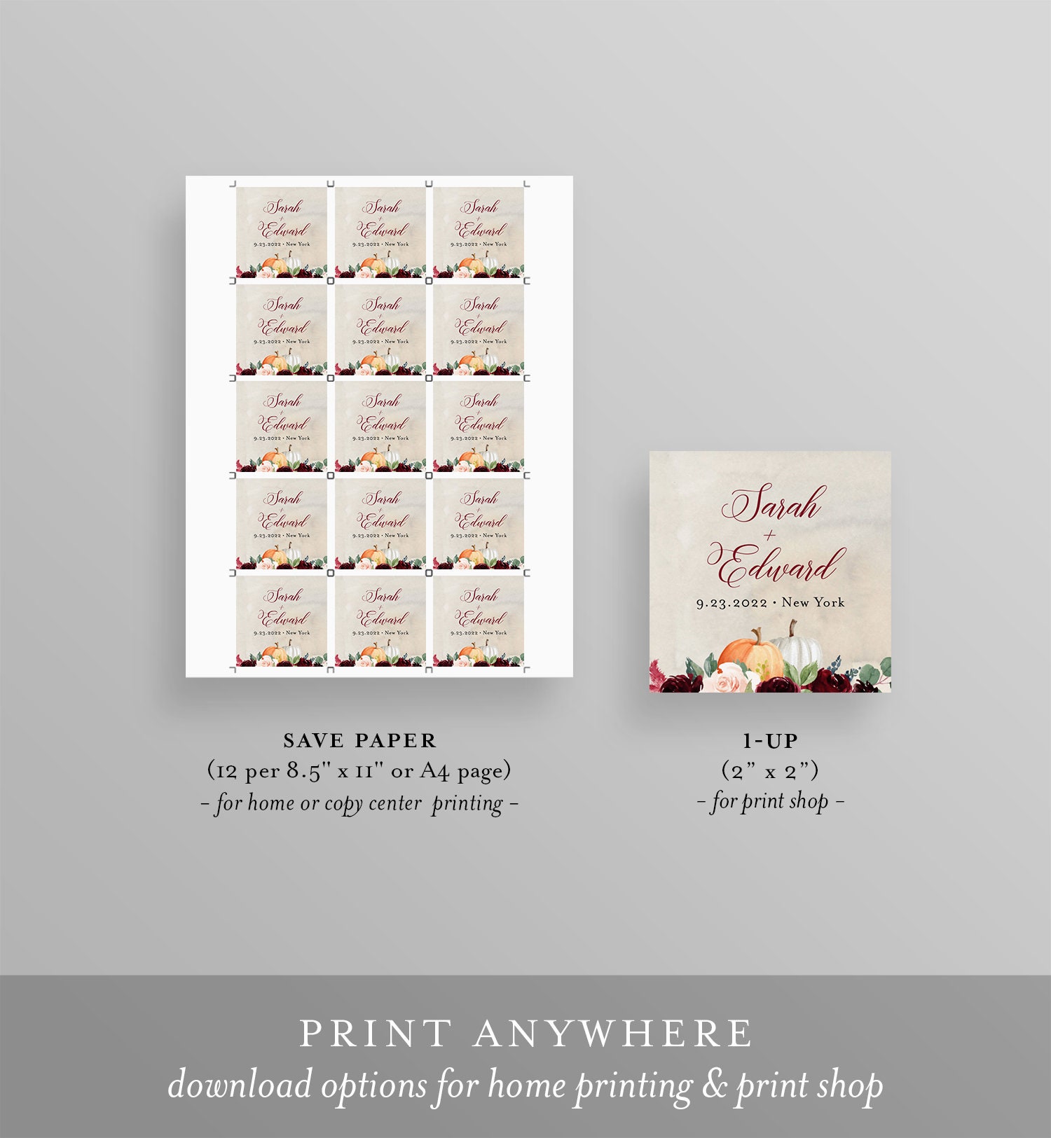• Home printer - use the "save paper" option when downloading your PDF to format the file with as many labels/tags it can fit on a page. Print on card stock or full sheet label paper. Trim using scissors, paper trimmer or 2" circle punch.