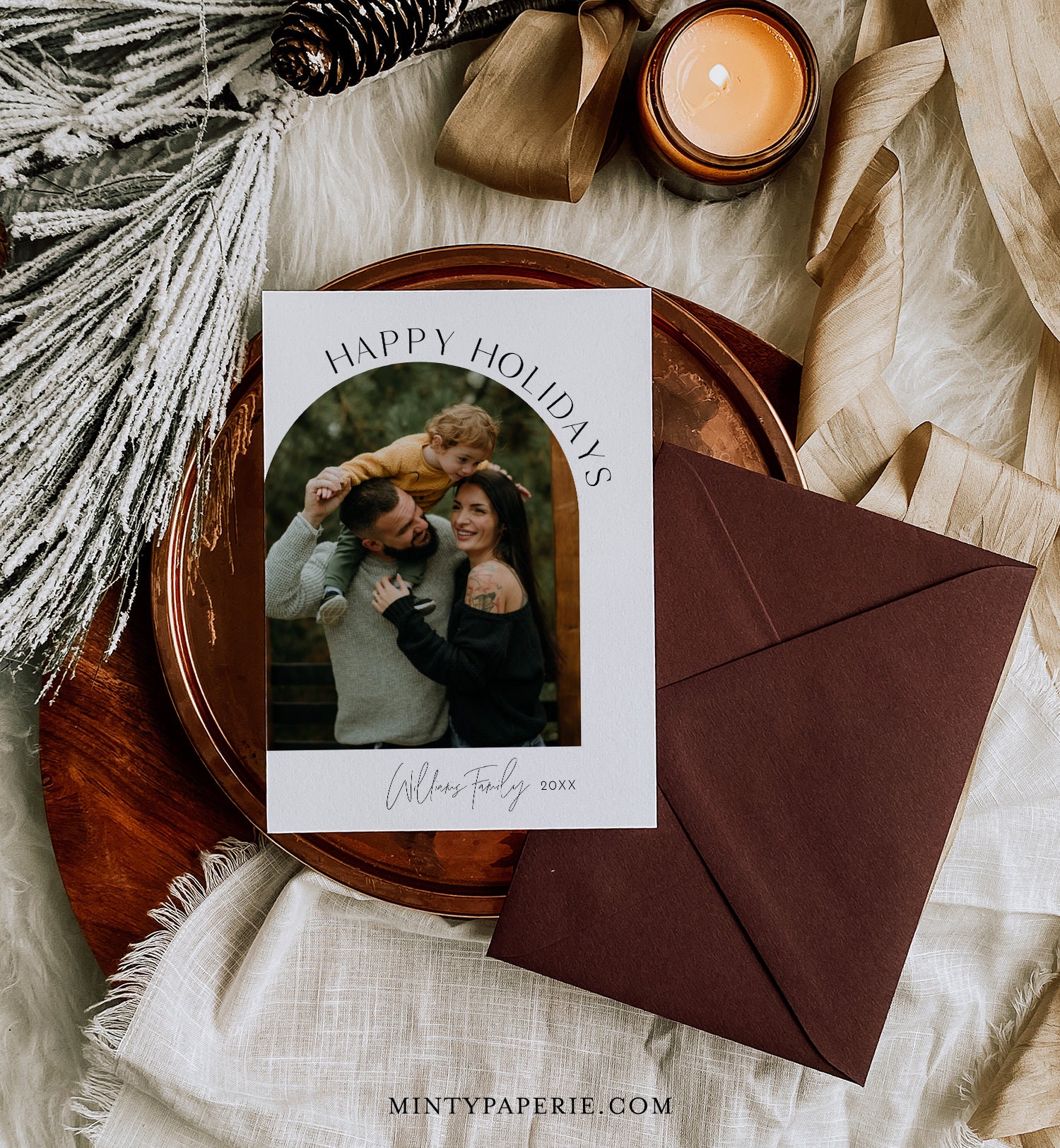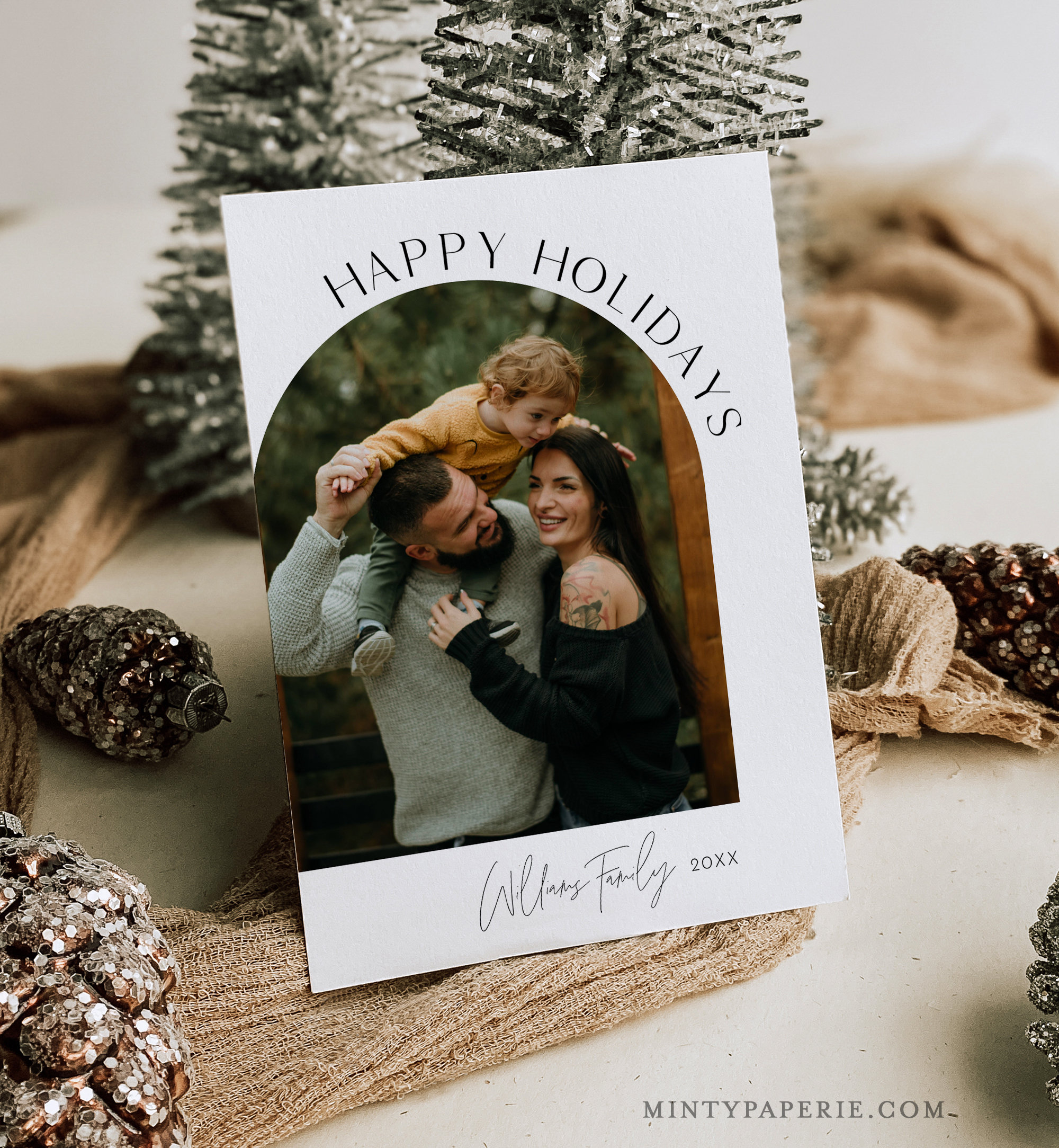 This photo holiday card template is an instant download. Access your template within minutes of purchase and edit using Templett - A fully customizable template editor that allows you to personalize your printable directly in your web browser. No software to install or fonts to download.