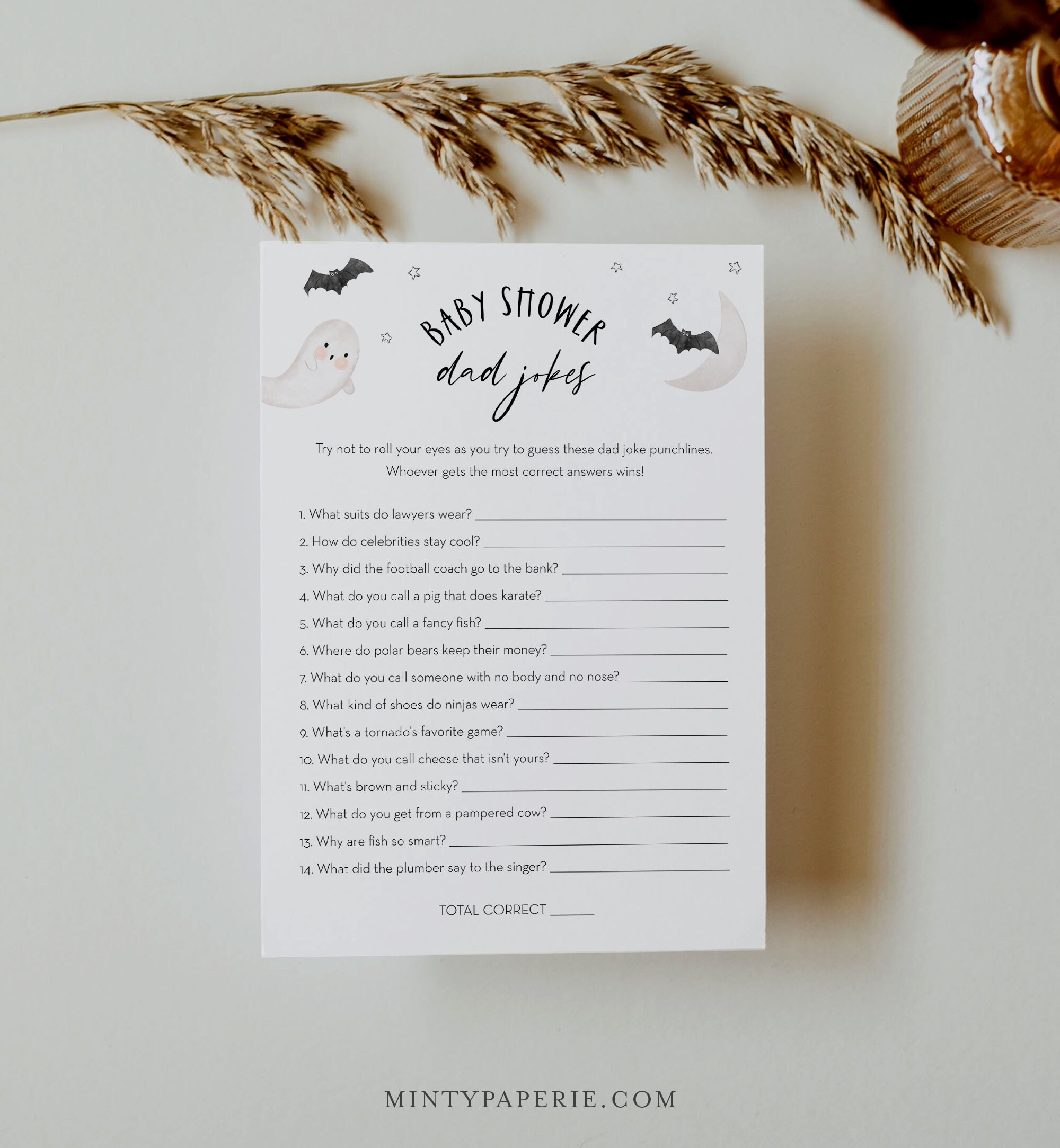This dad jokes baby shower game is an instant download. Access your template within minutes of purchase and edit in Templett - A fully customizable template editor that allows you to personalize your printable directly in your web browser. No software to install or fonts to download.
