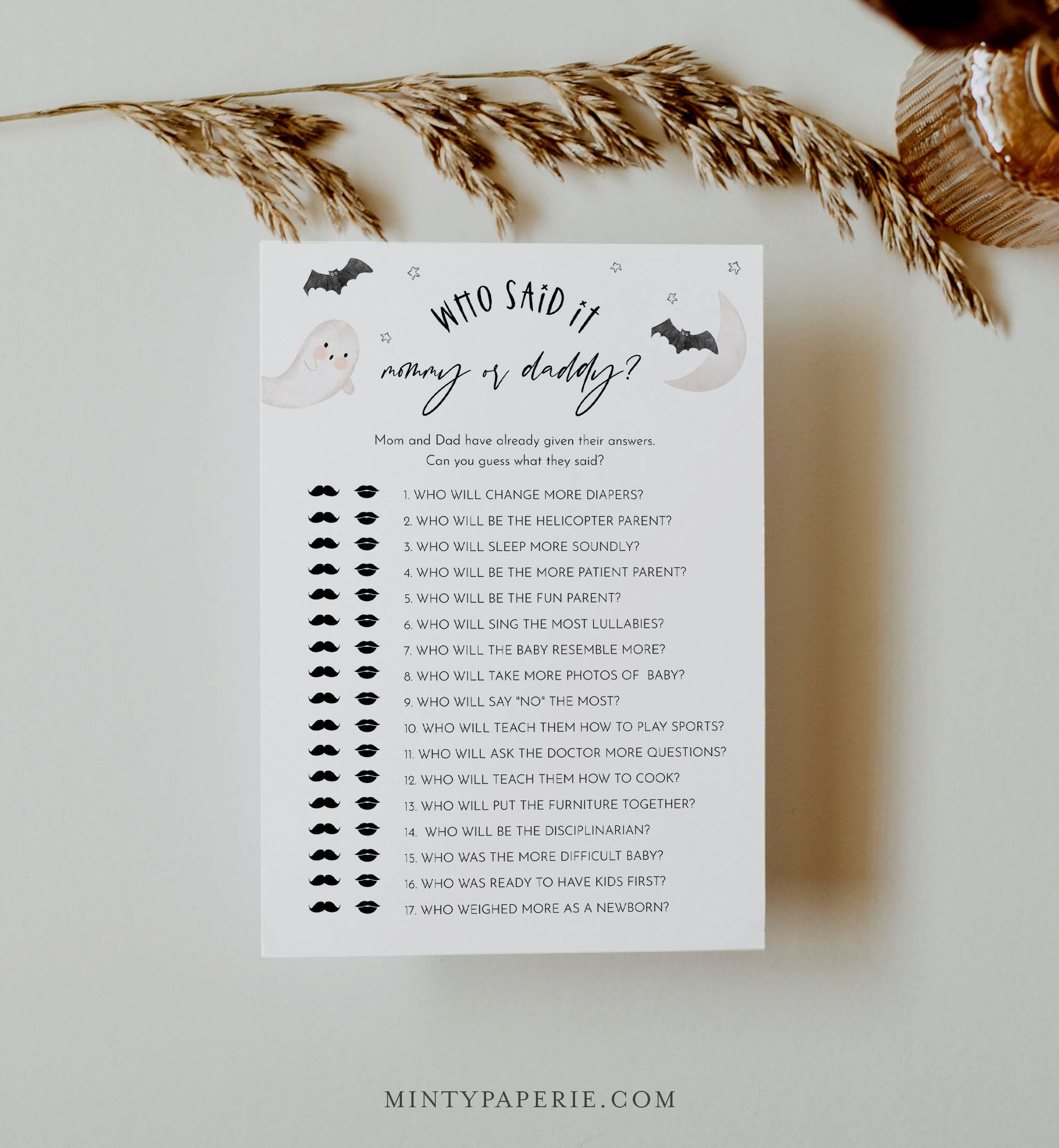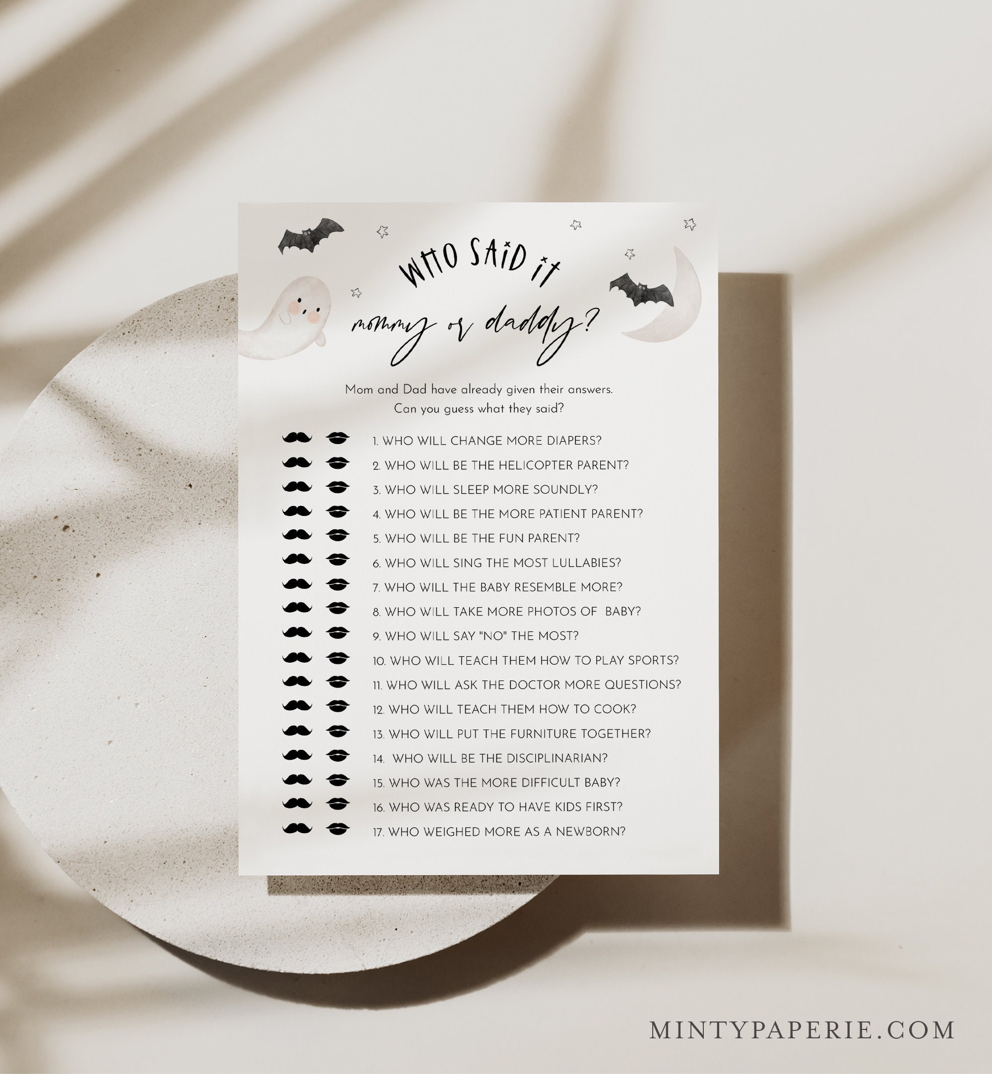 This who said it - mommy or daddy game is an instant download. Access your template within minutes of purchase and edit in Templett - A fully customizable template editor that allows you to personalize your printable directly in your web browser. No software to install or fonts to download.