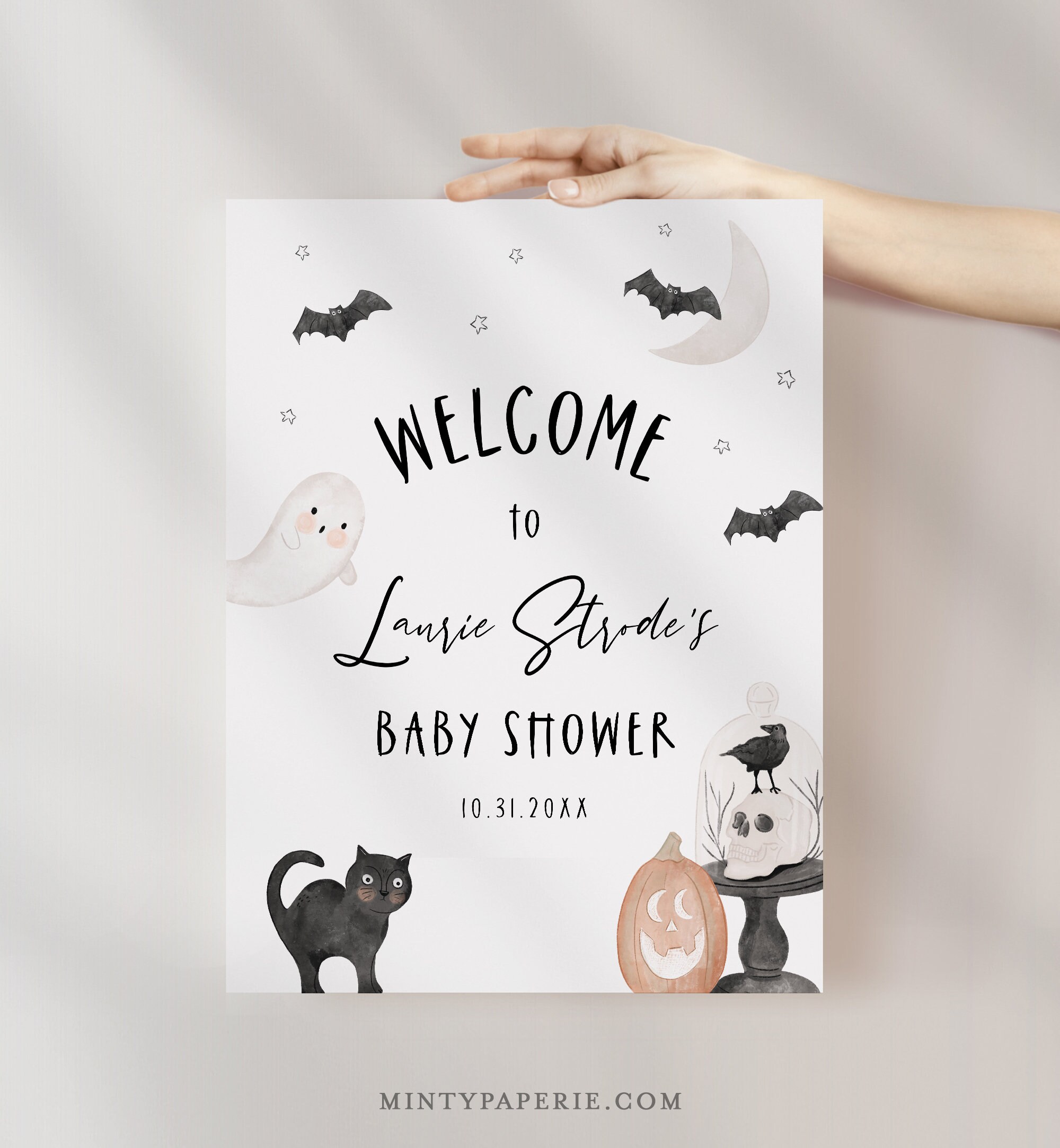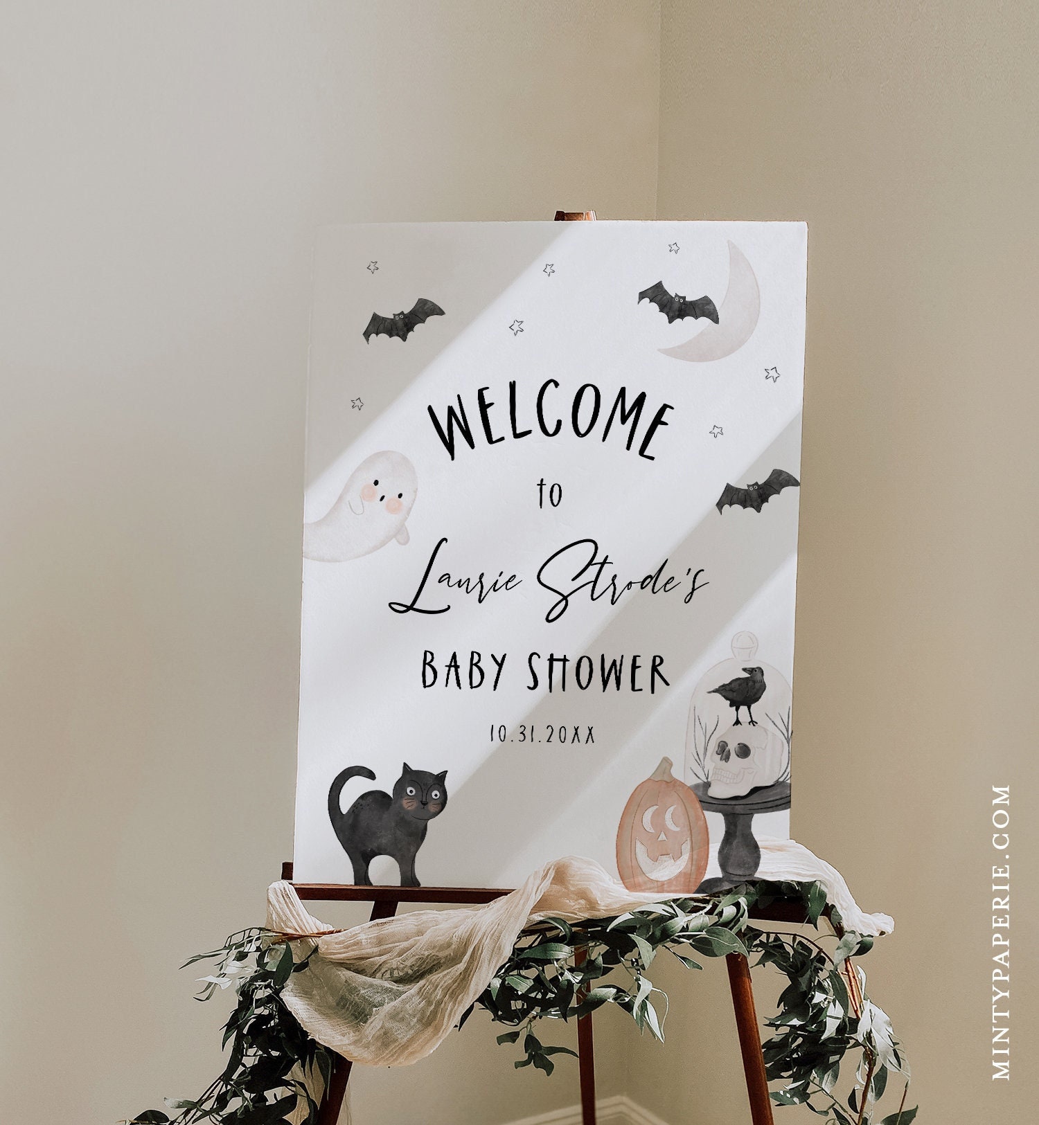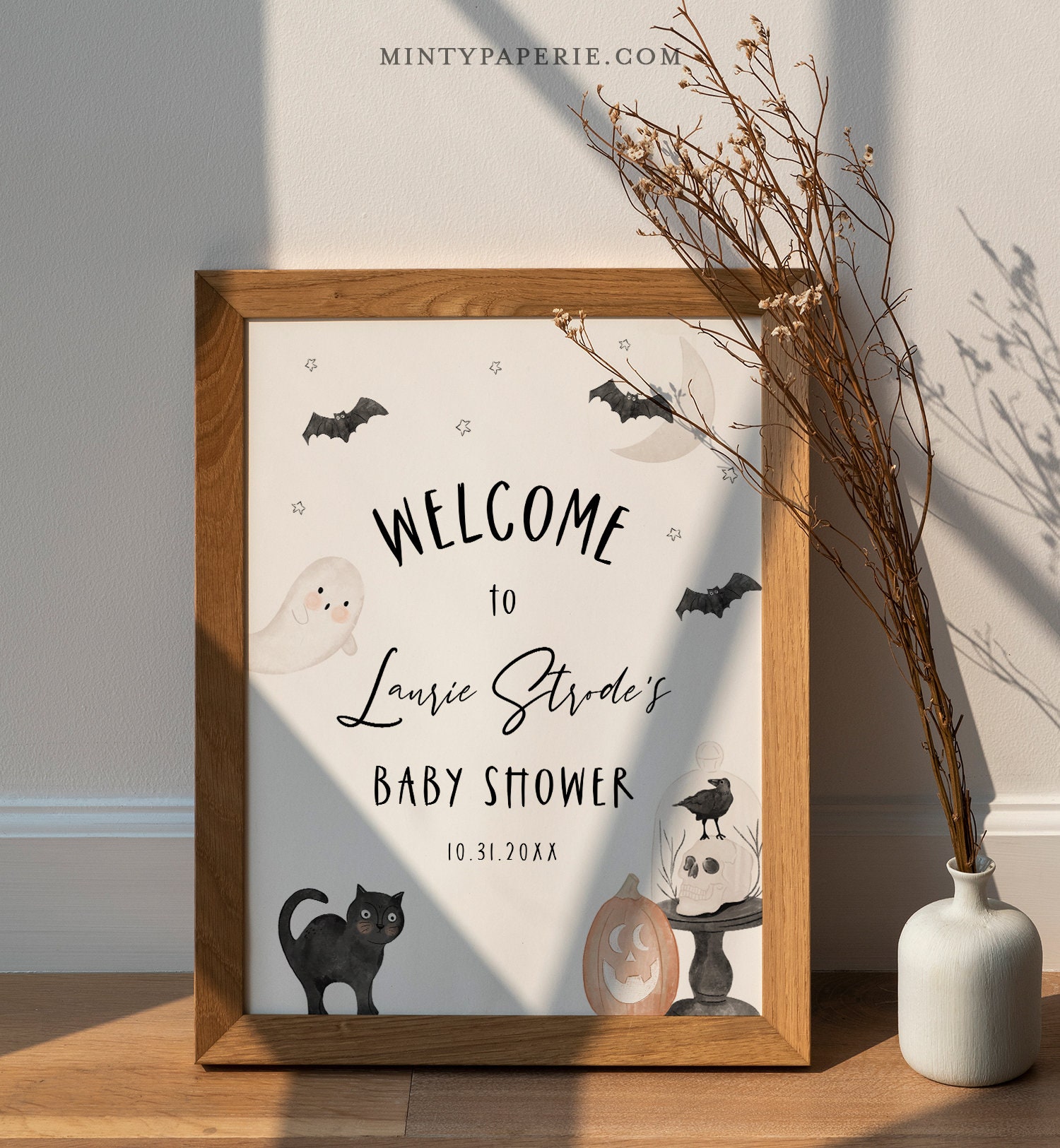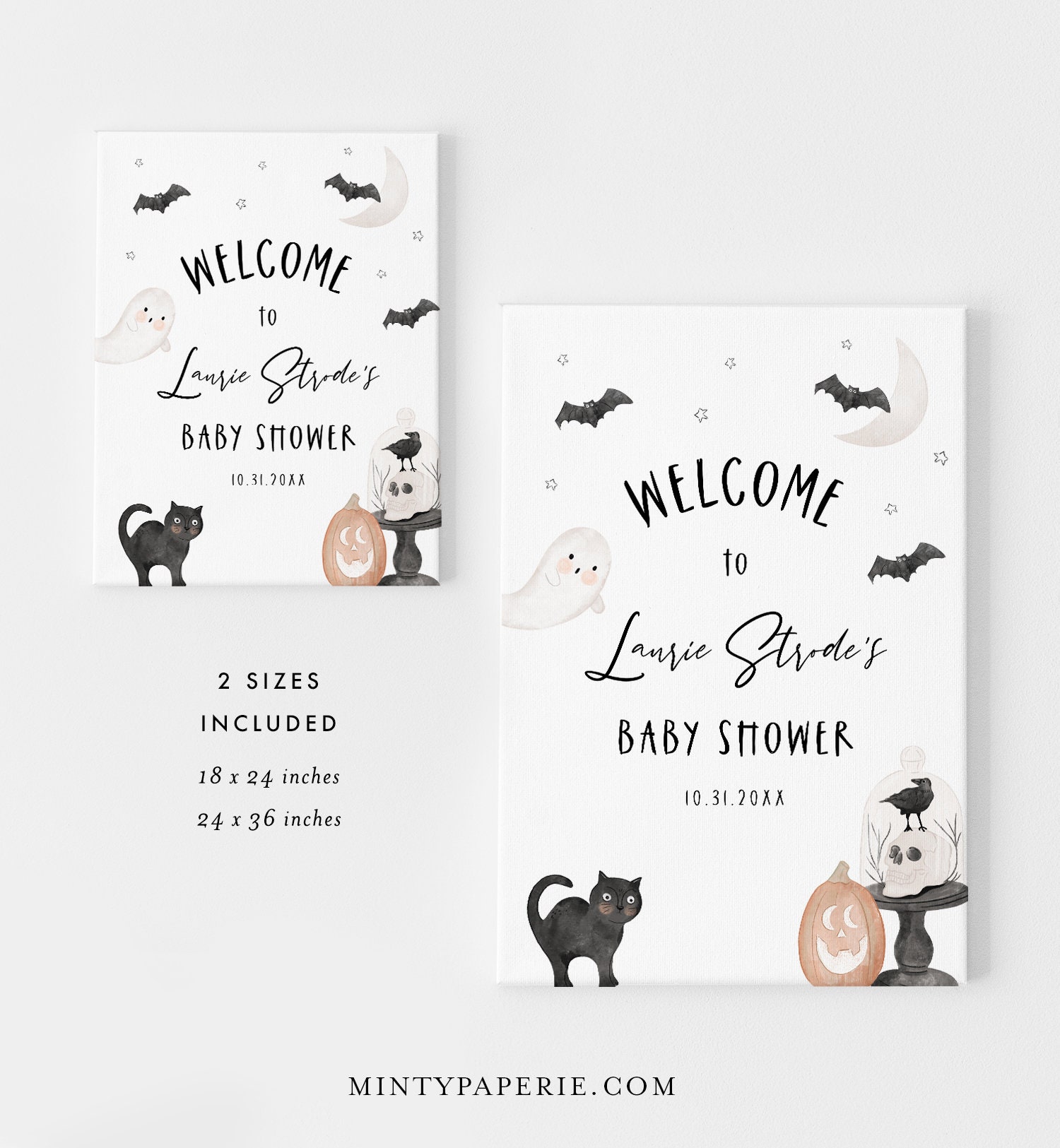 This halloween baby shower welcome sign is an instant download. Access your template within minutes of purchase and edit in Templett - A fully customizable template editor that allows you to personalize your printable directly in your web browser. No software to install or fonts to download.