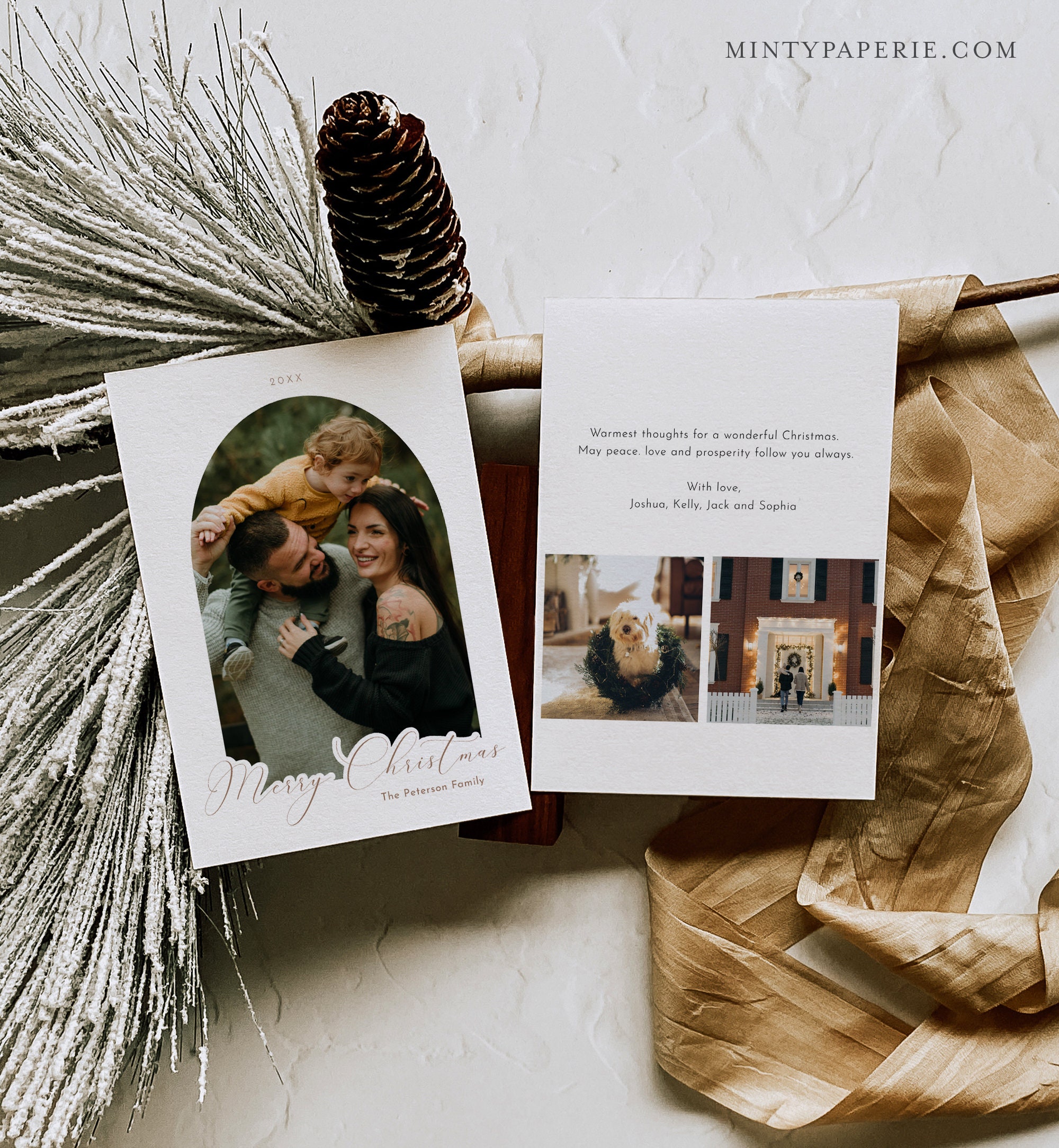 This photo holiday card template is an instant download. Access your template within minutes of purchase and edit using Templett - A fully customizable template editor that allows you to personalize your printable directly in your web browser. No software to install or fonts to download.