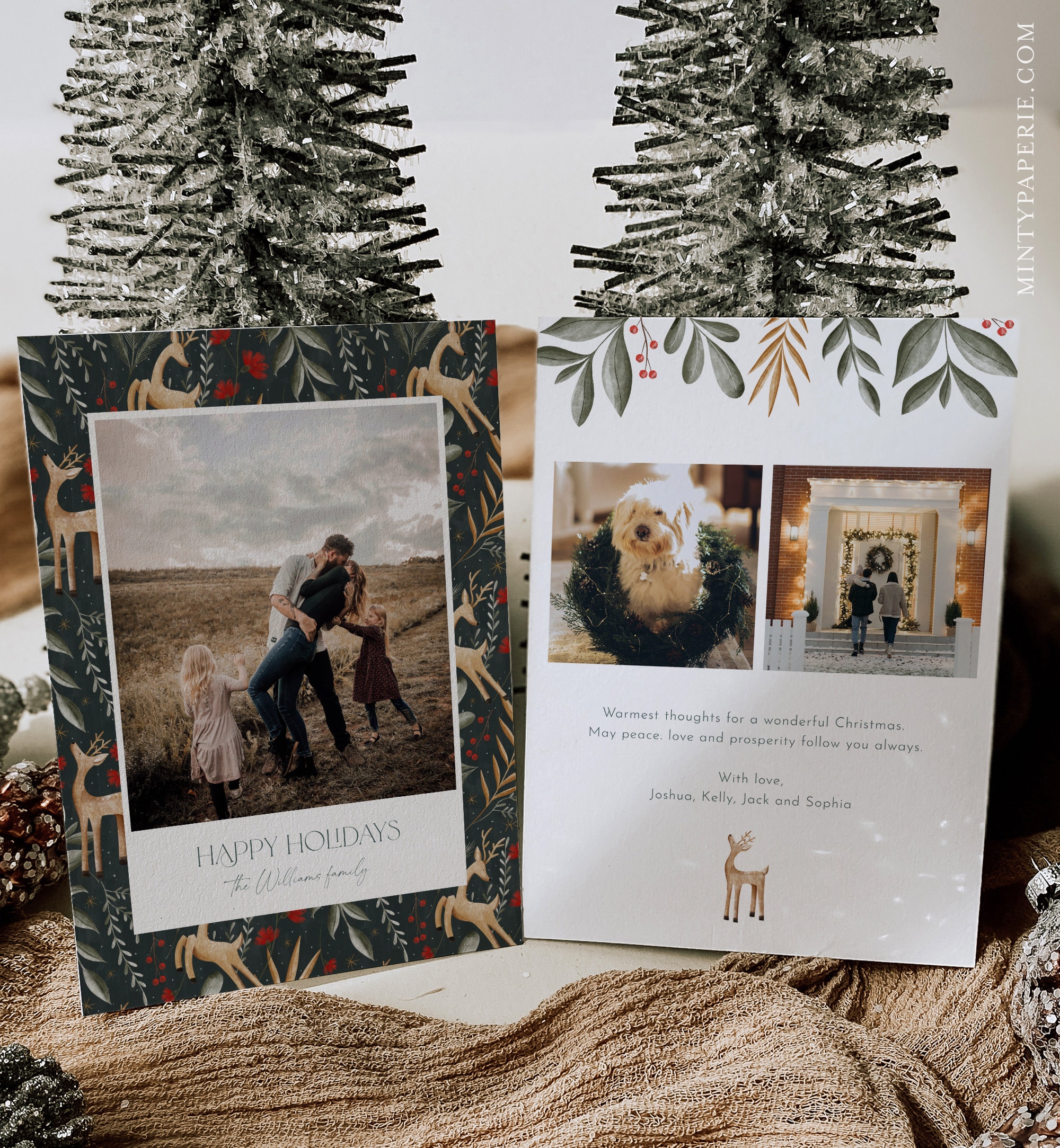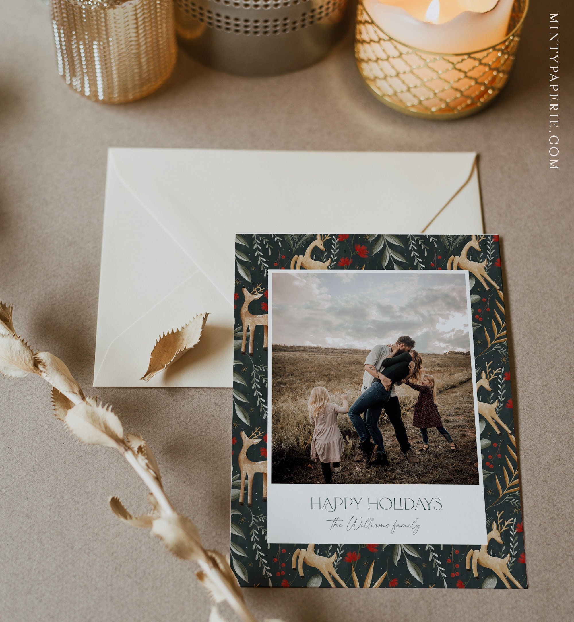 This photo holiday card template is an instant download. Access your template within minutes of purchase and edit using Templett - A fully customizable template editor that allows you to personalize your printable directly in your web browser. No software to install or fonts to download.