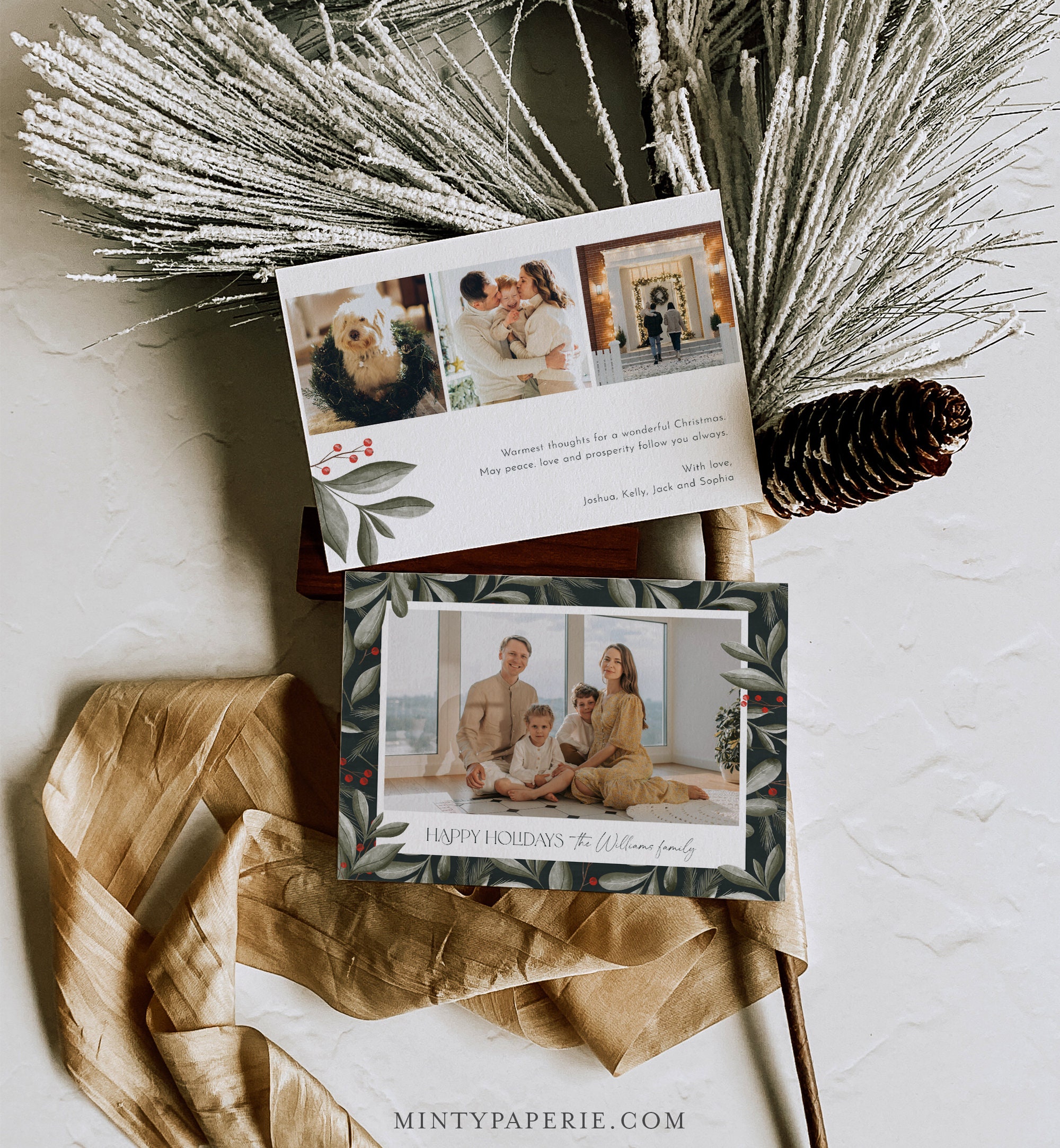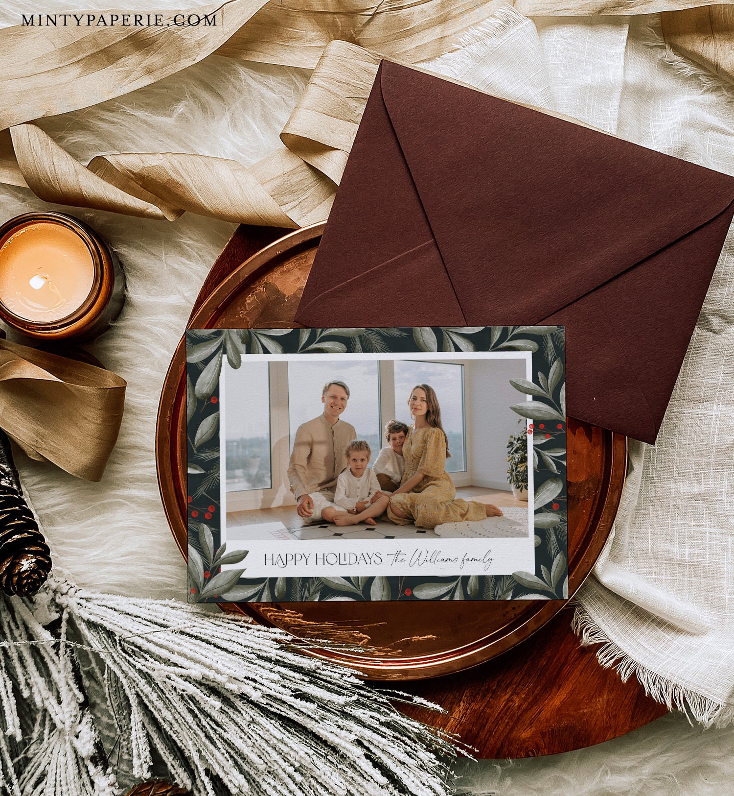 This photo holiday card template is an instant download. Access your template within minutes of purchase and edit using Templett - A fully customizable template editor that allows you to personalize your printable directly in your web browser. No software to install or fonts to download.