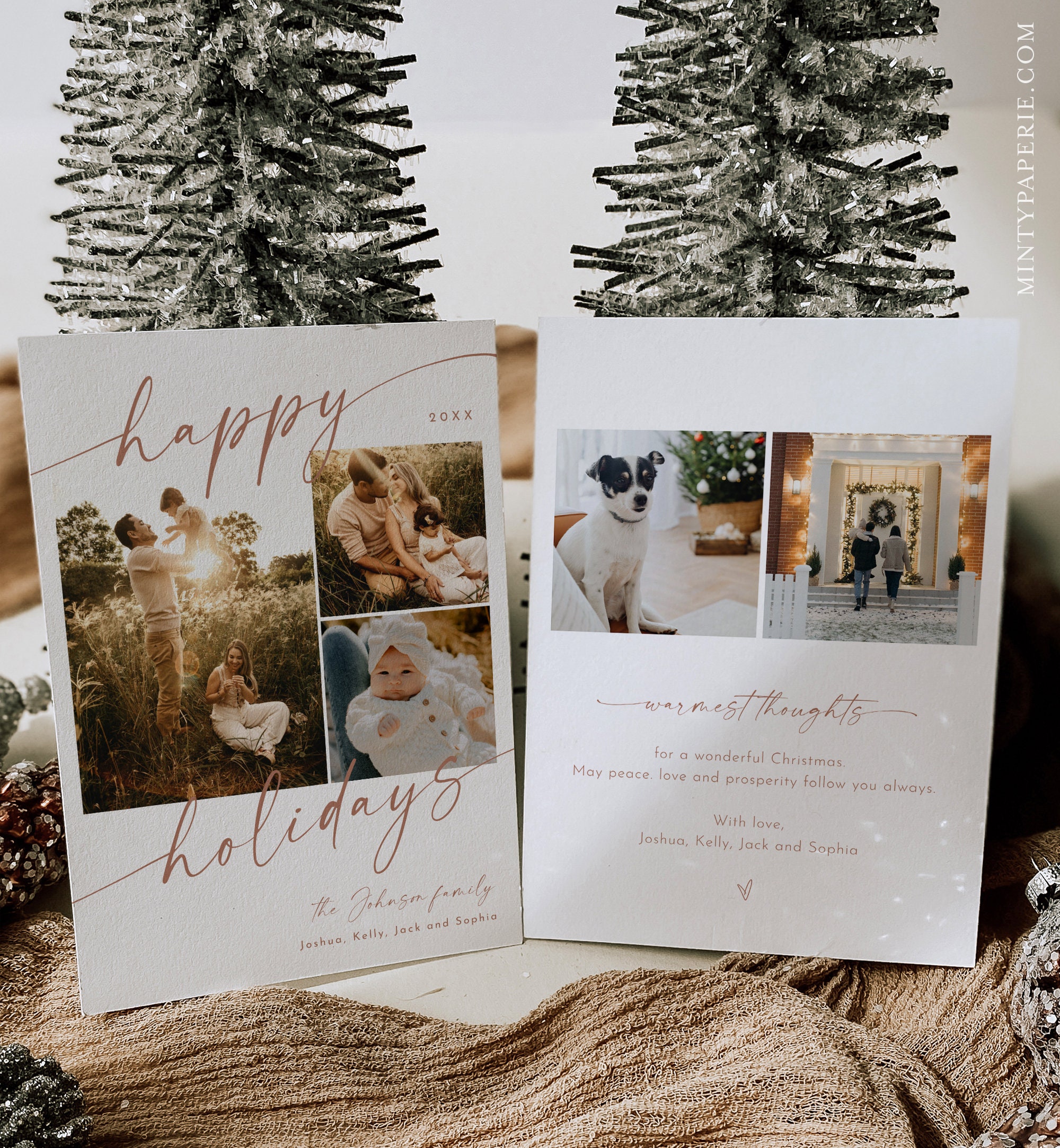 This photo holiday card template is an instant download. Access your template within minutes of purchase and edit using Templett - A fully customizable template editor that allows you to personalize your printable directly in your web browser. No software to install or fonts to download.