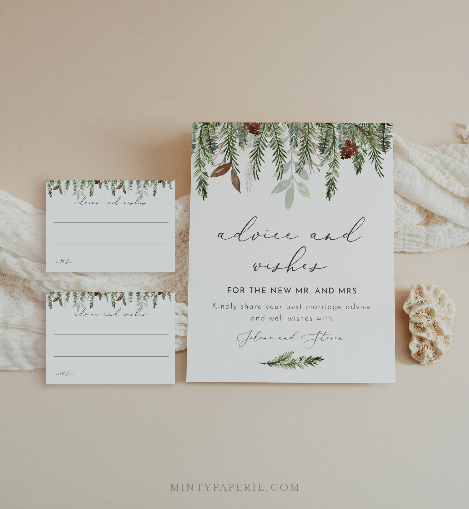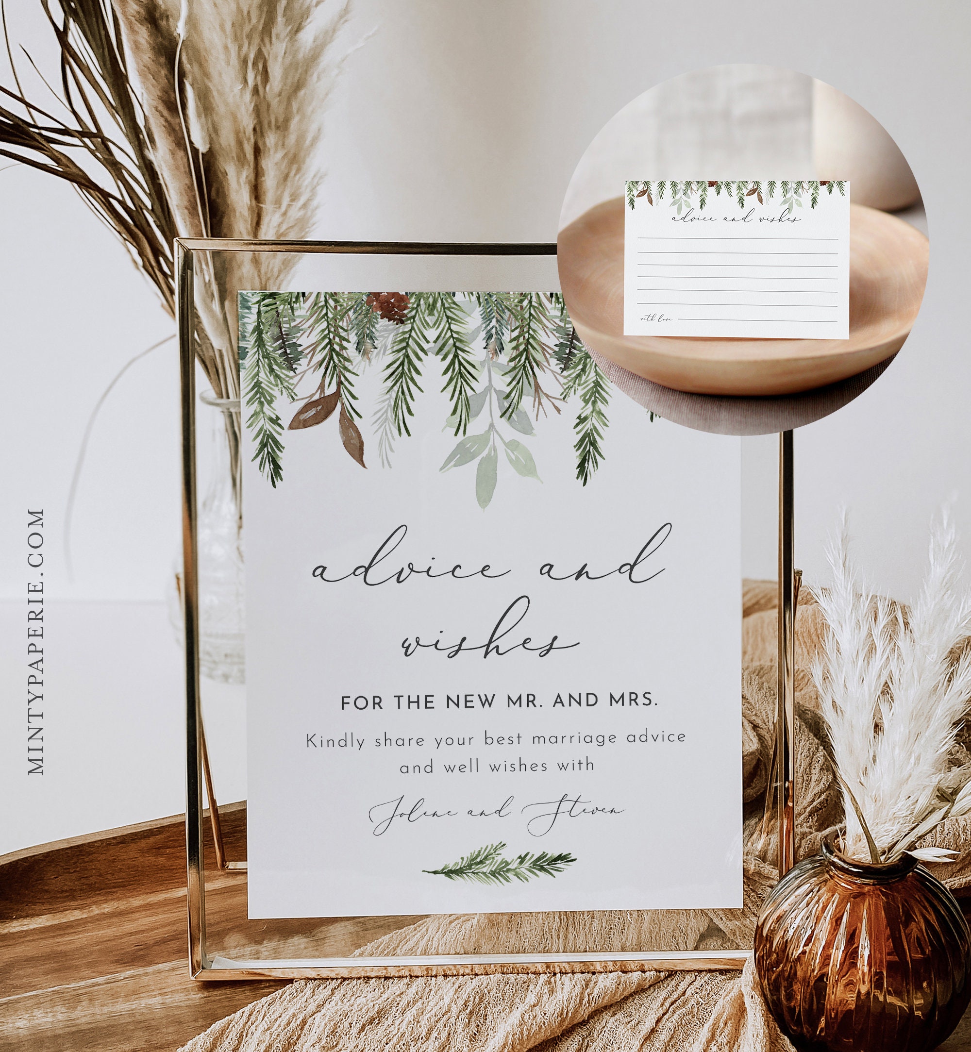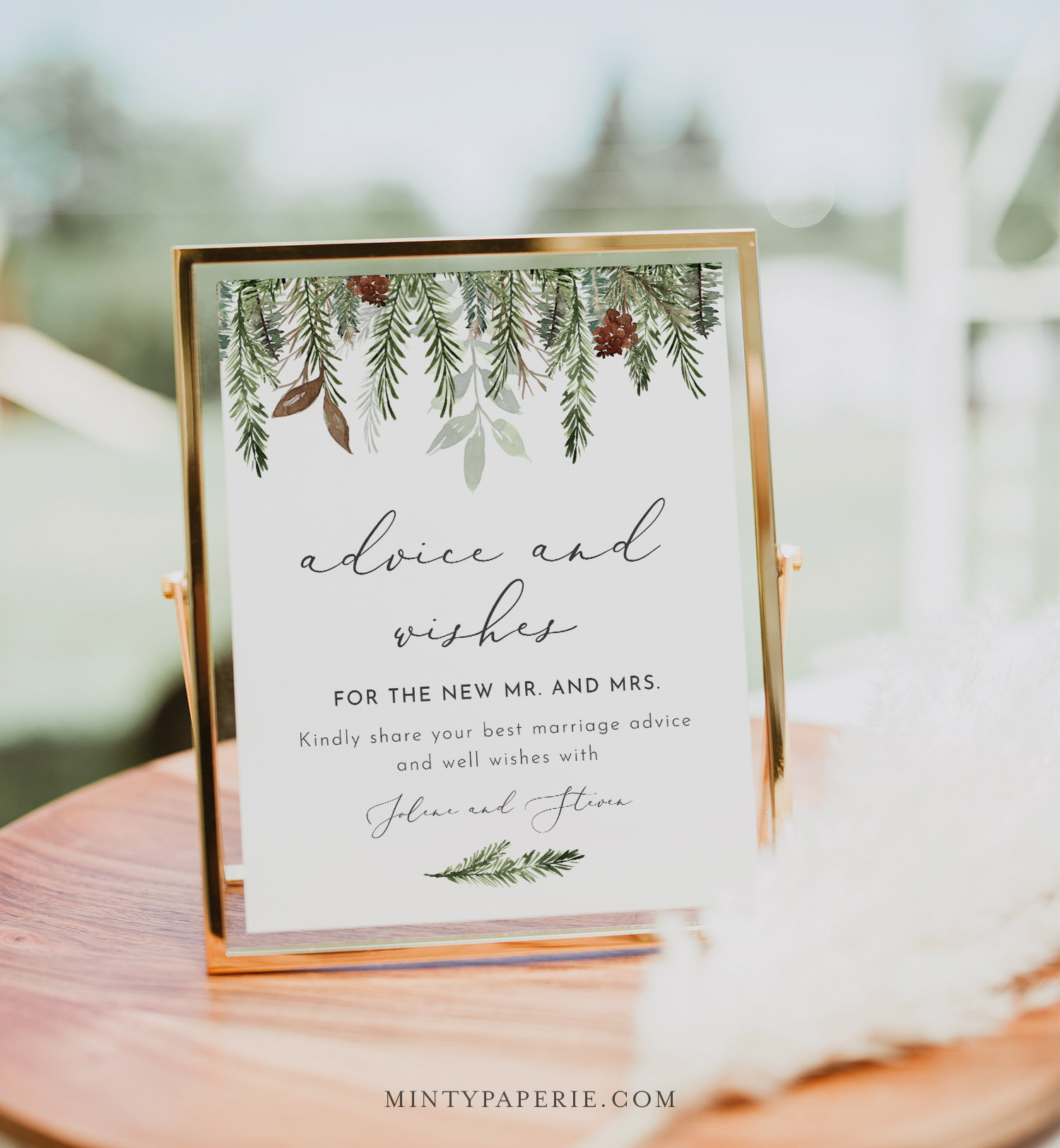This advice and wishes sign and advice card set is an instant download. Access your template within minutes of purchase and edit in Templett - A fully customizable template editor that allows you to personalize your printable directly in your web browser. No software to install or fonts to download.