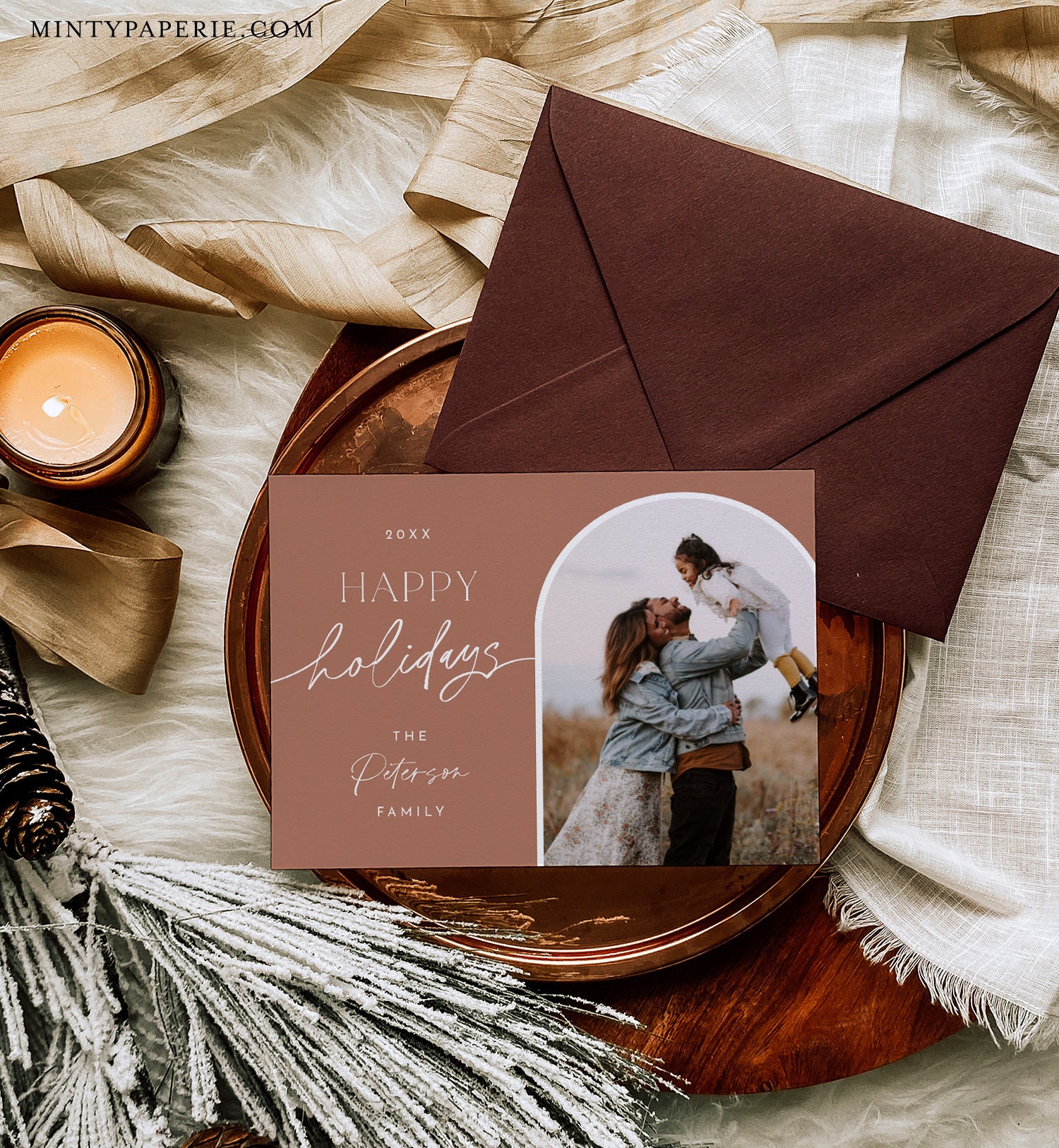 This photo holiday card template is an instant download. Access your template within minutes of purchase and edit using Templett - A fully customizable template editor that allows you to personalize your printable directly in your web browser. No software to install or fonts to download.