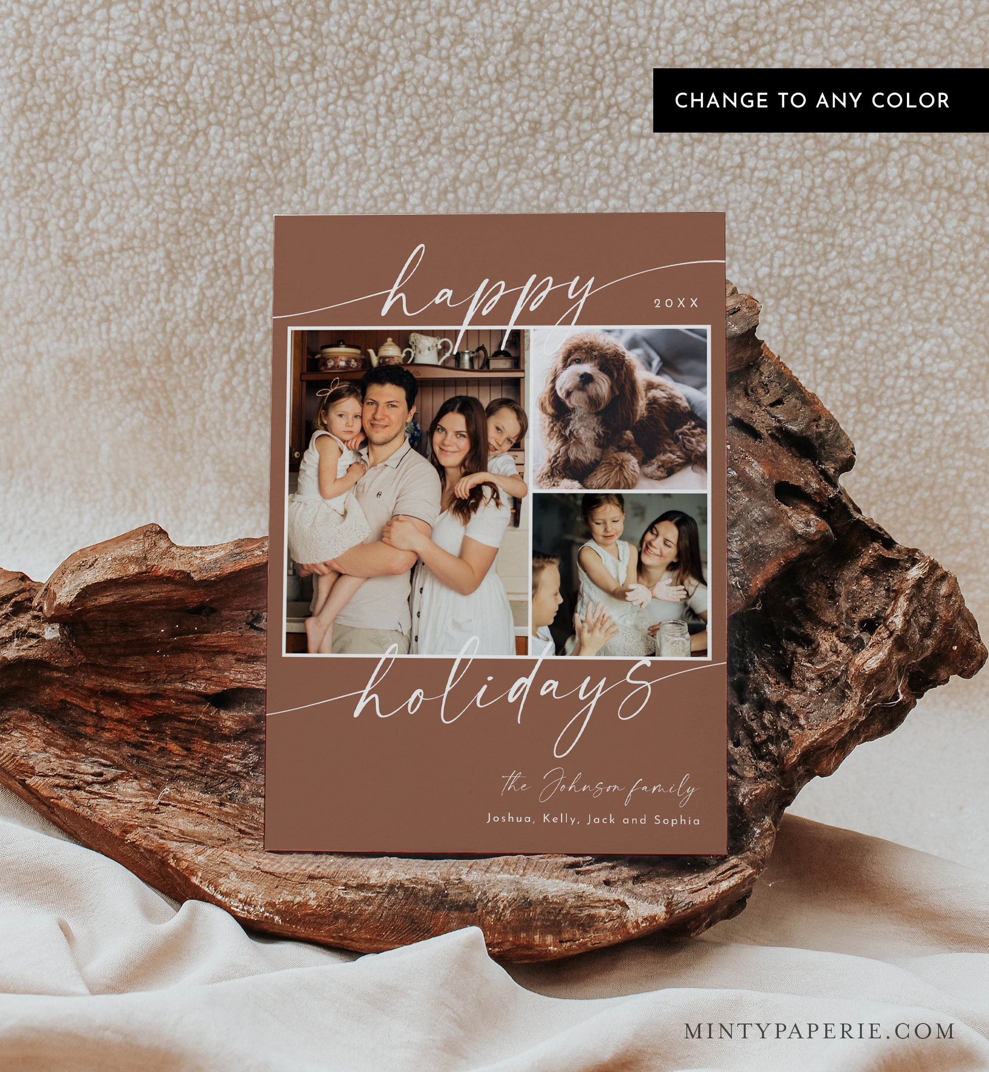 This photo holiday card template is an instant download. Access your template within minutes of purchase and edit using Templett - A fully customizable template editor that allows you to personalize your printable directly in your web browser. No software to install or fonts to download.