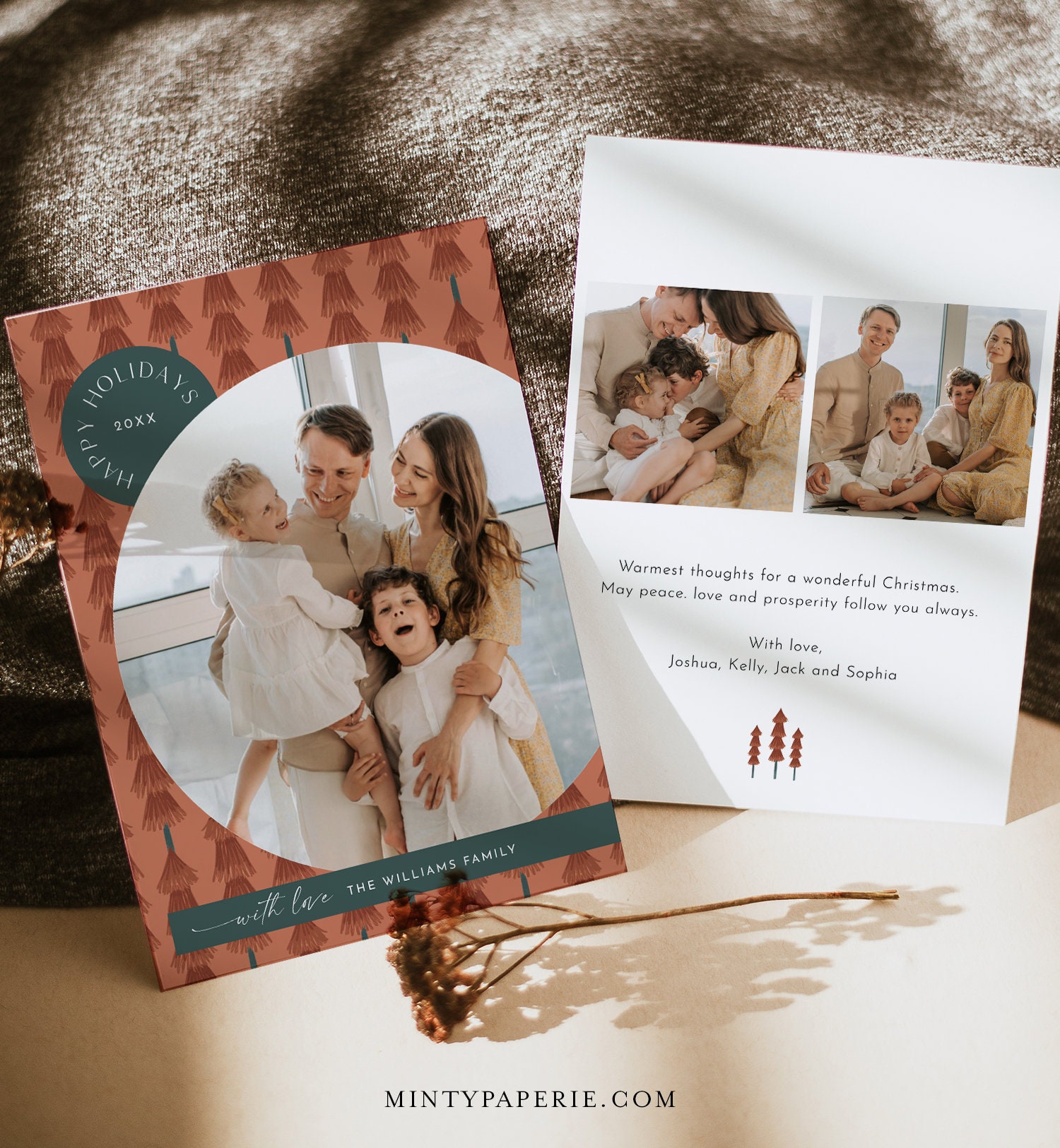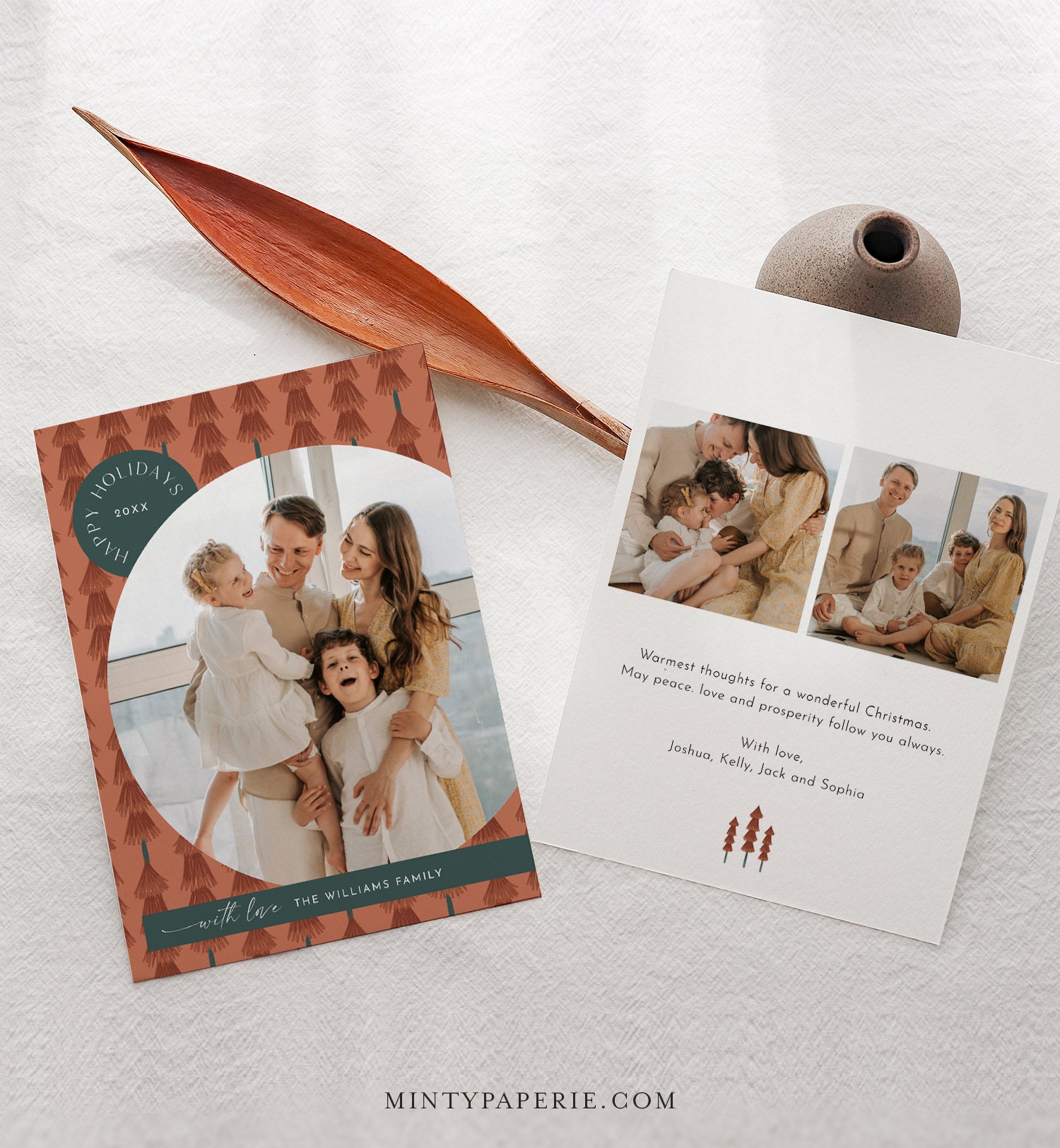 This photo holiday card template is an instant download. Access your template within minutes of purchase and edit using Templett - A fully customizable template editor that allows you to personalize your printable directly in your web browser. No software to install or fonts to download.