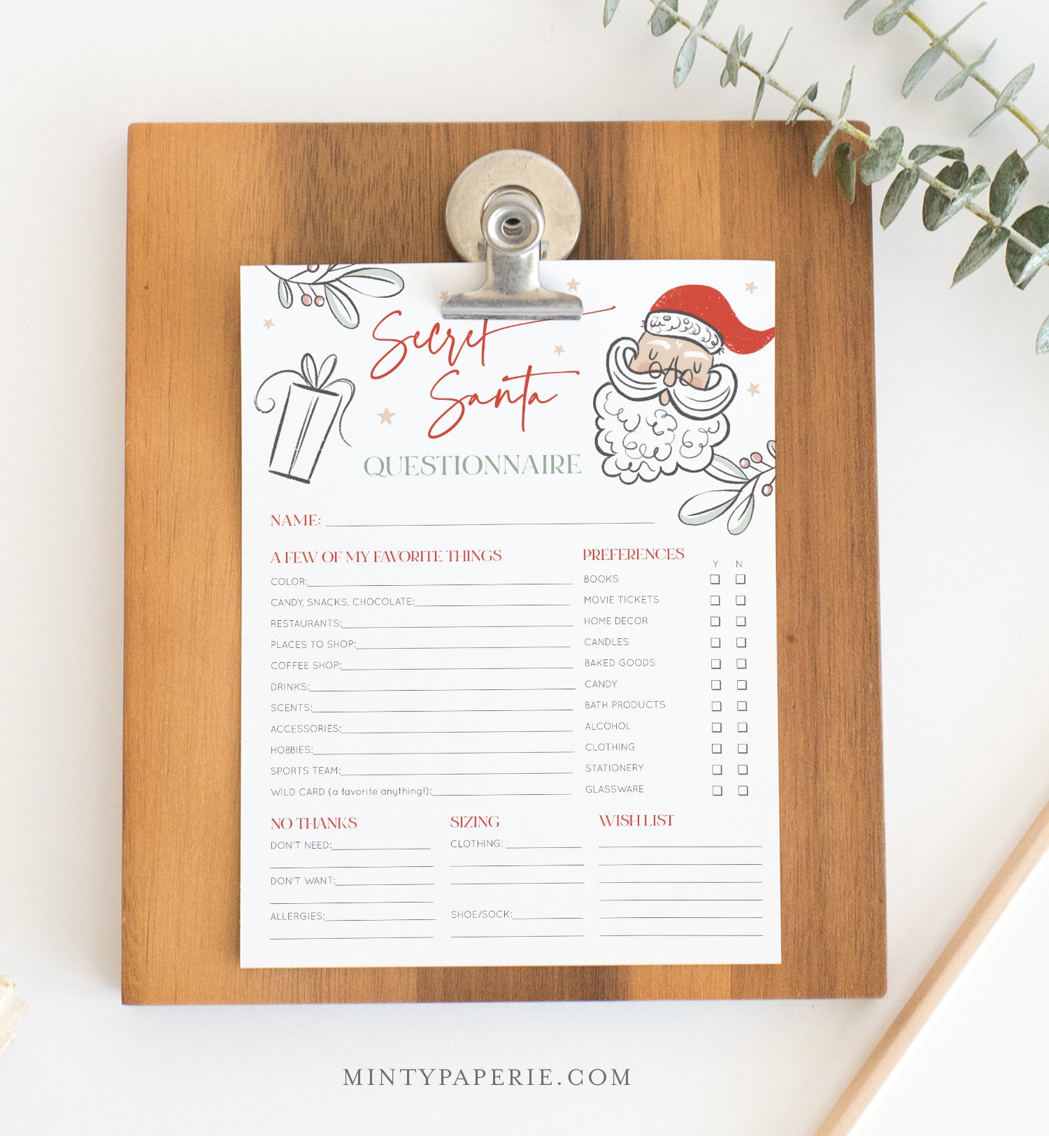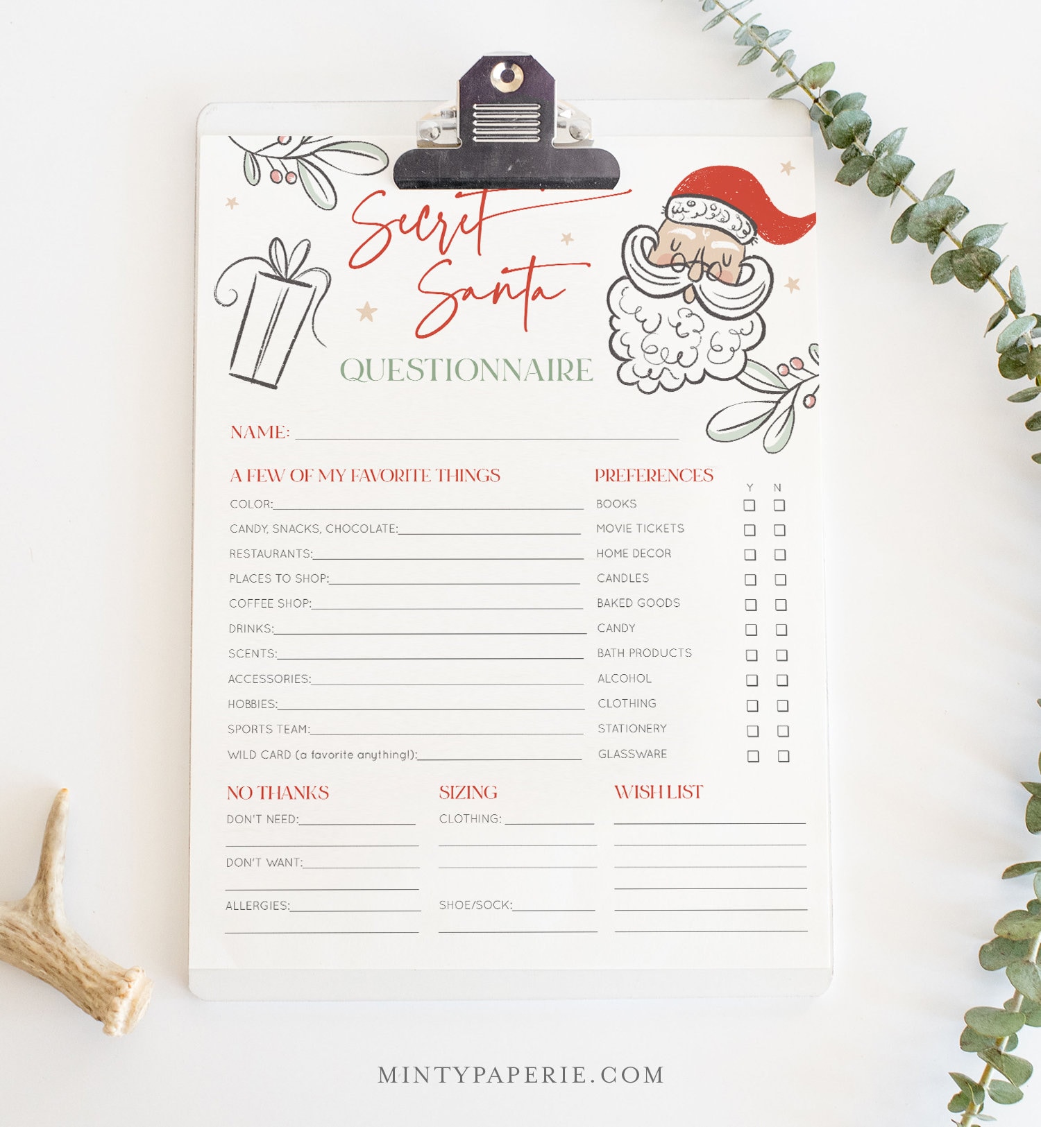 This gift exchange questionnaire is an instant download. Access your template within minutes of purchase and edit in Templett - A fully customizable template editor that allows you to personalize your printable directly in your web browser. No software to install or fonts to download.