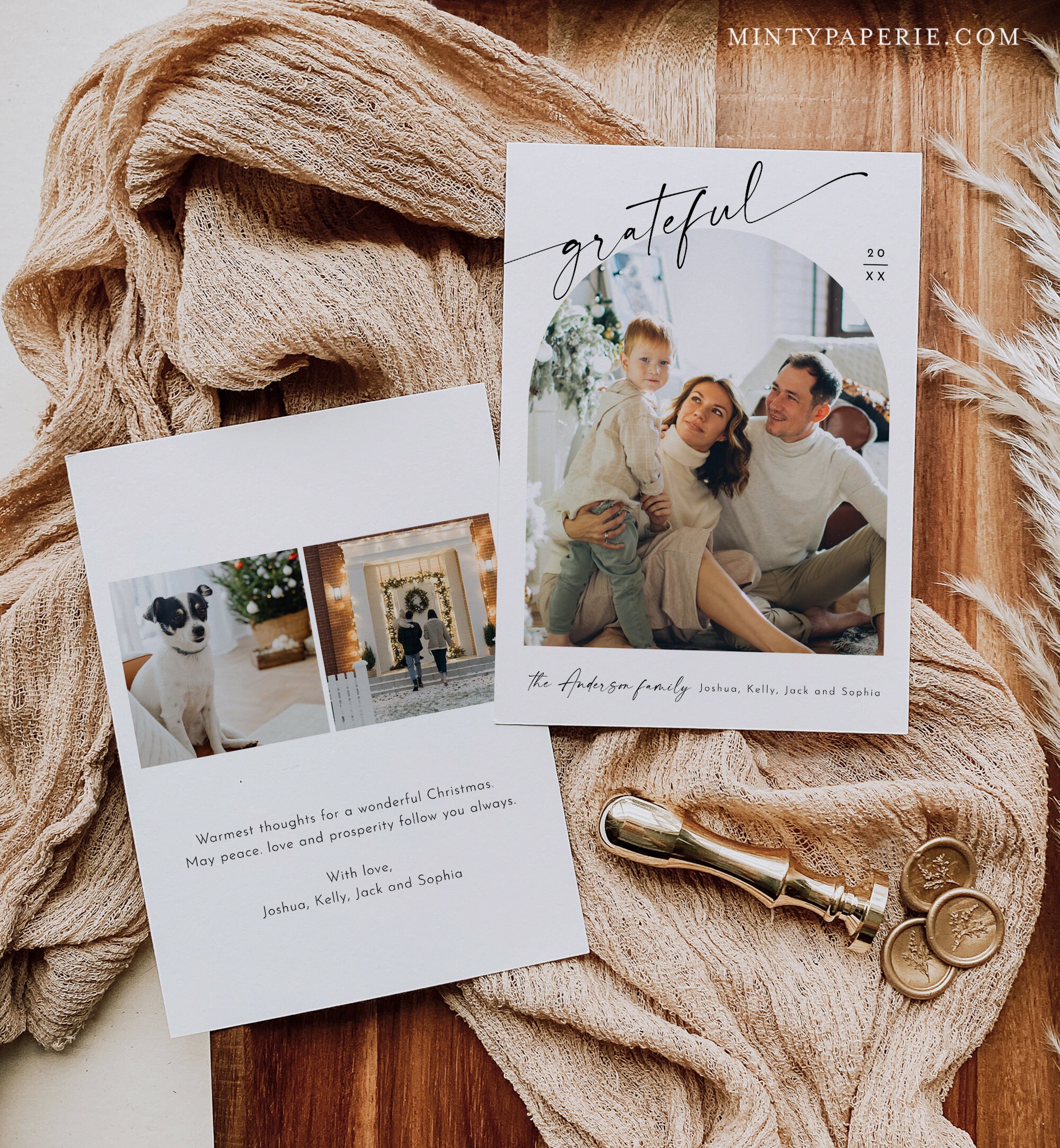 This photo holiday card template is an instant download. Access your template within minutes of purchase and edit using Templett - A fully customizable template editor that allows you to personalize your printable directly in your web browser. No software to install or fonts to download.