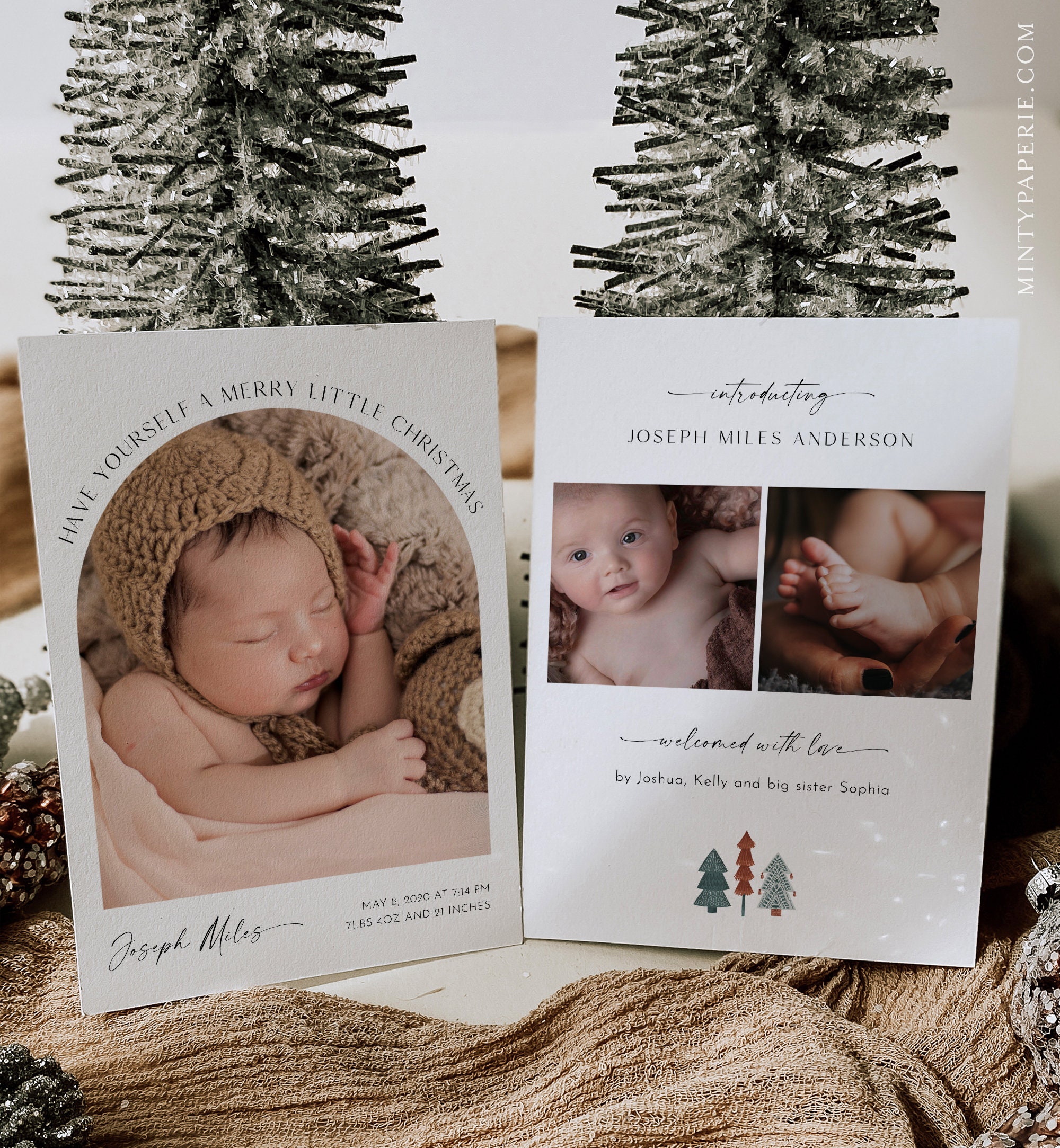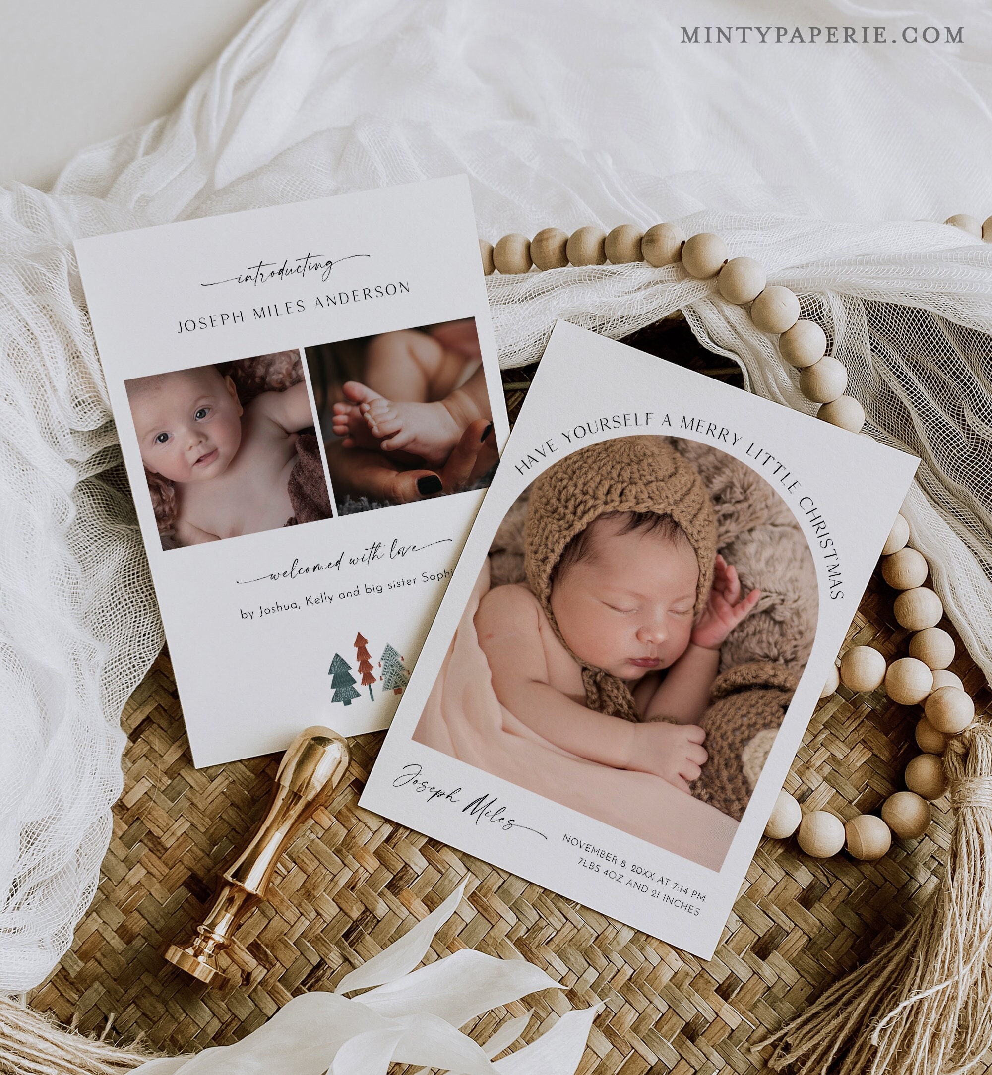 This holiday birth announcement card template is an instant download. Access your template within minutes of purchase and edit using Templett - A fully customizable template editor that allows you to personalize your printable directly in your web browser. No software to install or fonts to download.