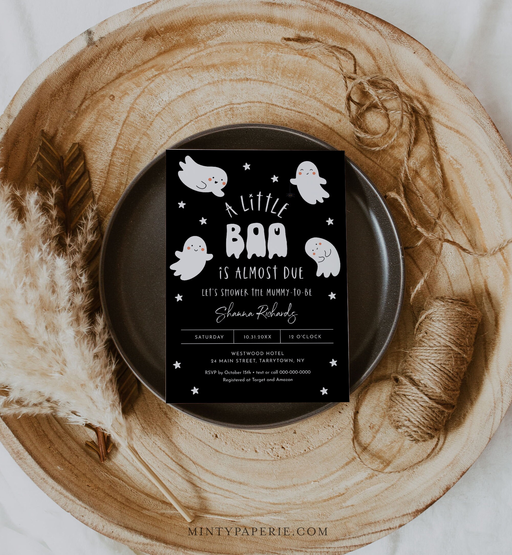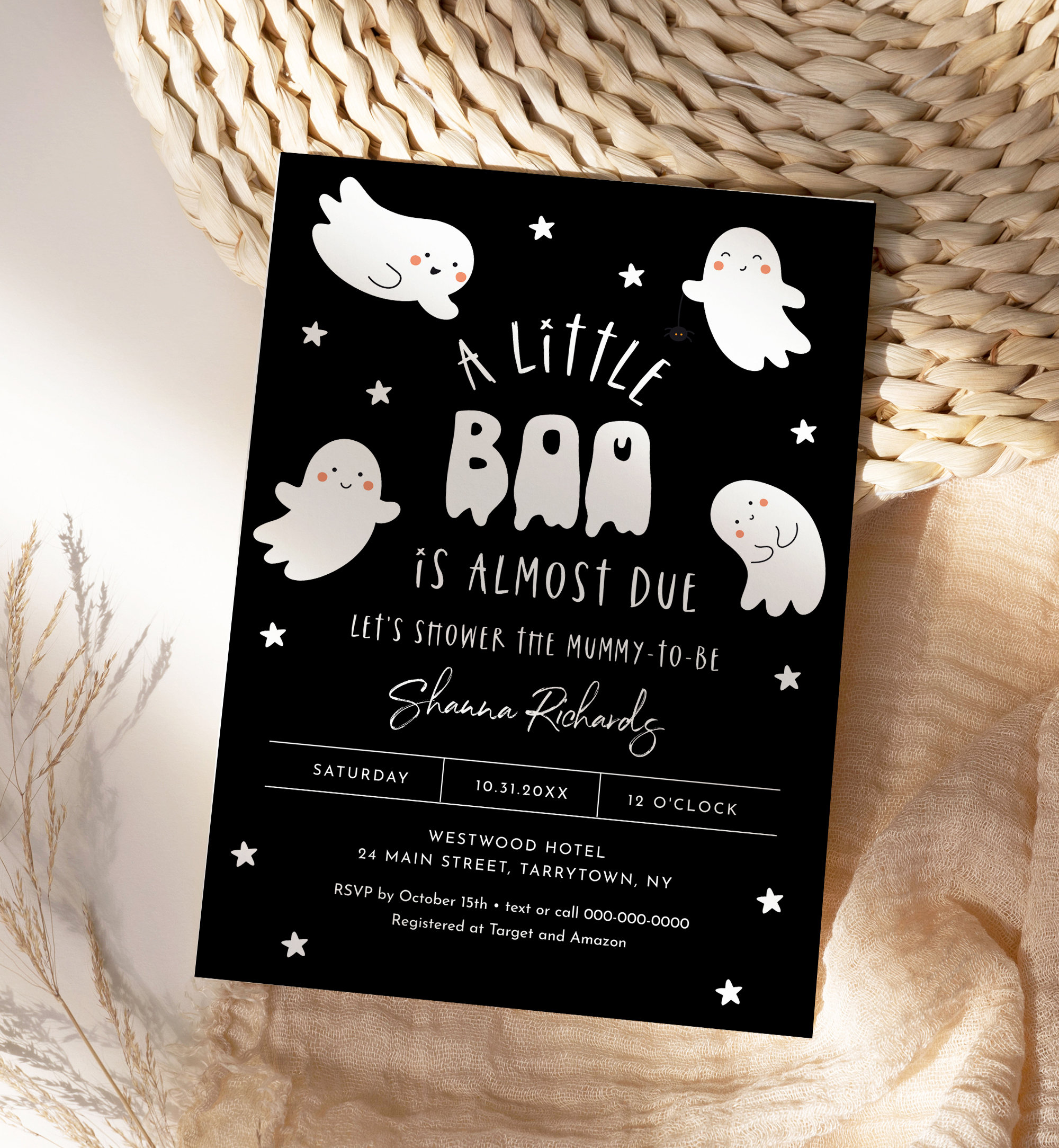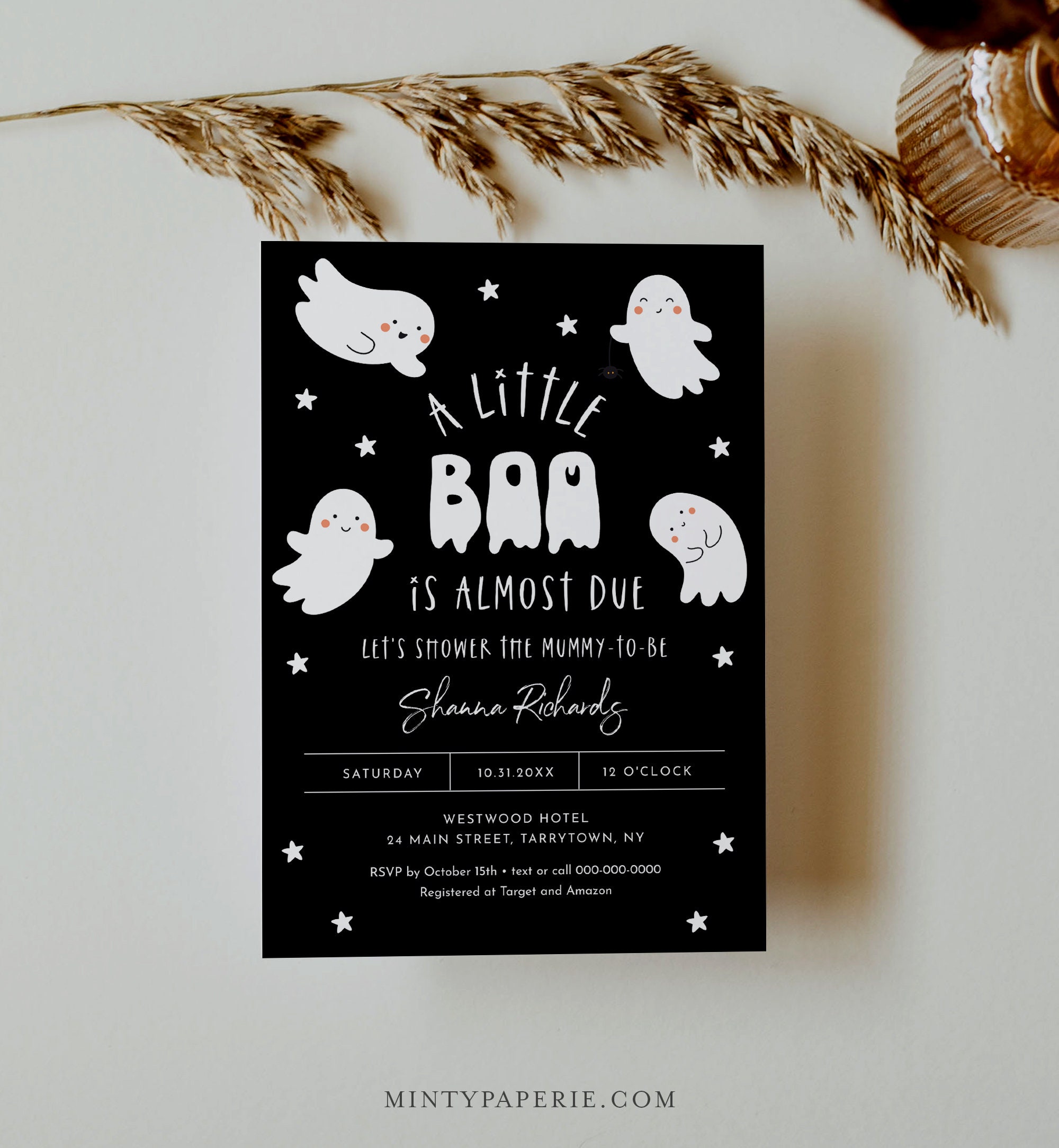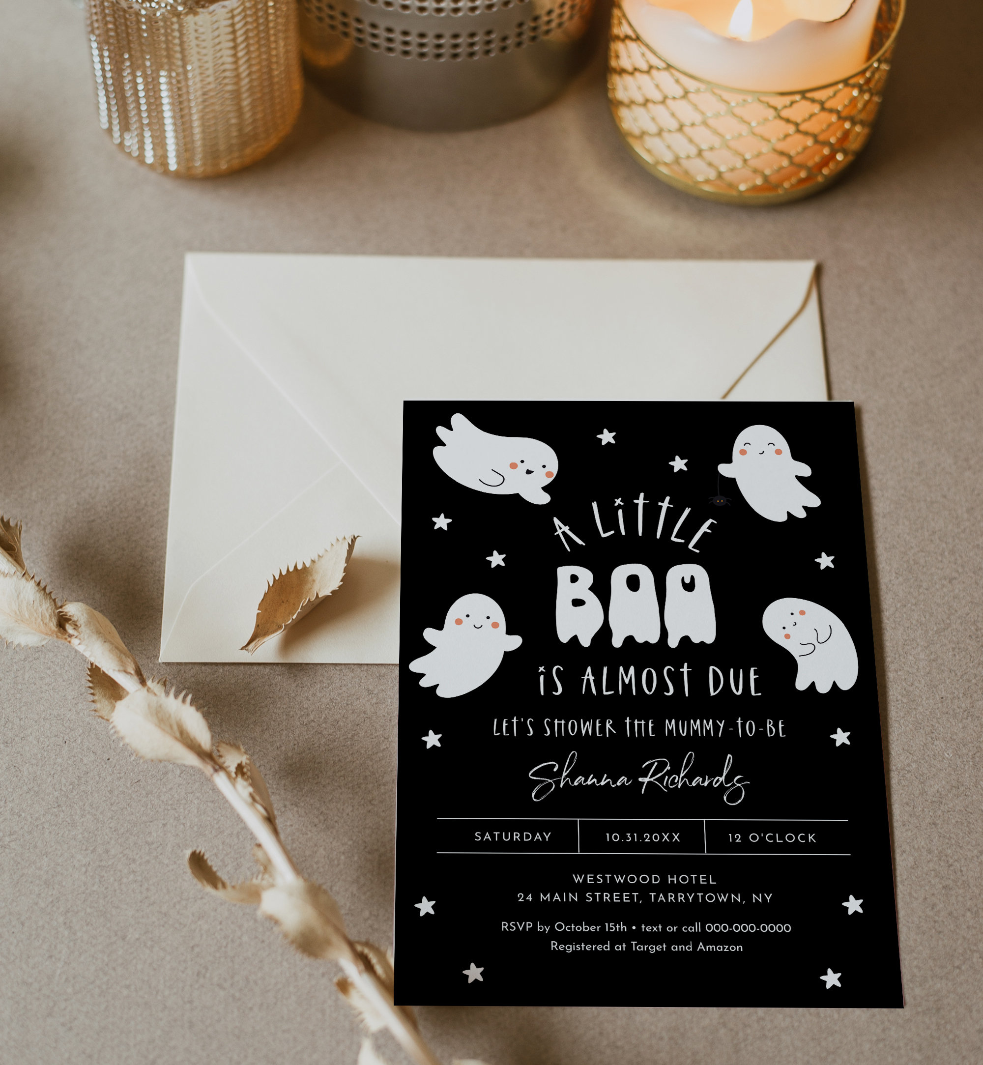 This halloween baby shower Invitation template is and instant download. Access your template within minutes of purchase and edit in Templett - A fully customizable template editor that allows you to personalize your printable directly in your web browser. No software to install or fonts to download.