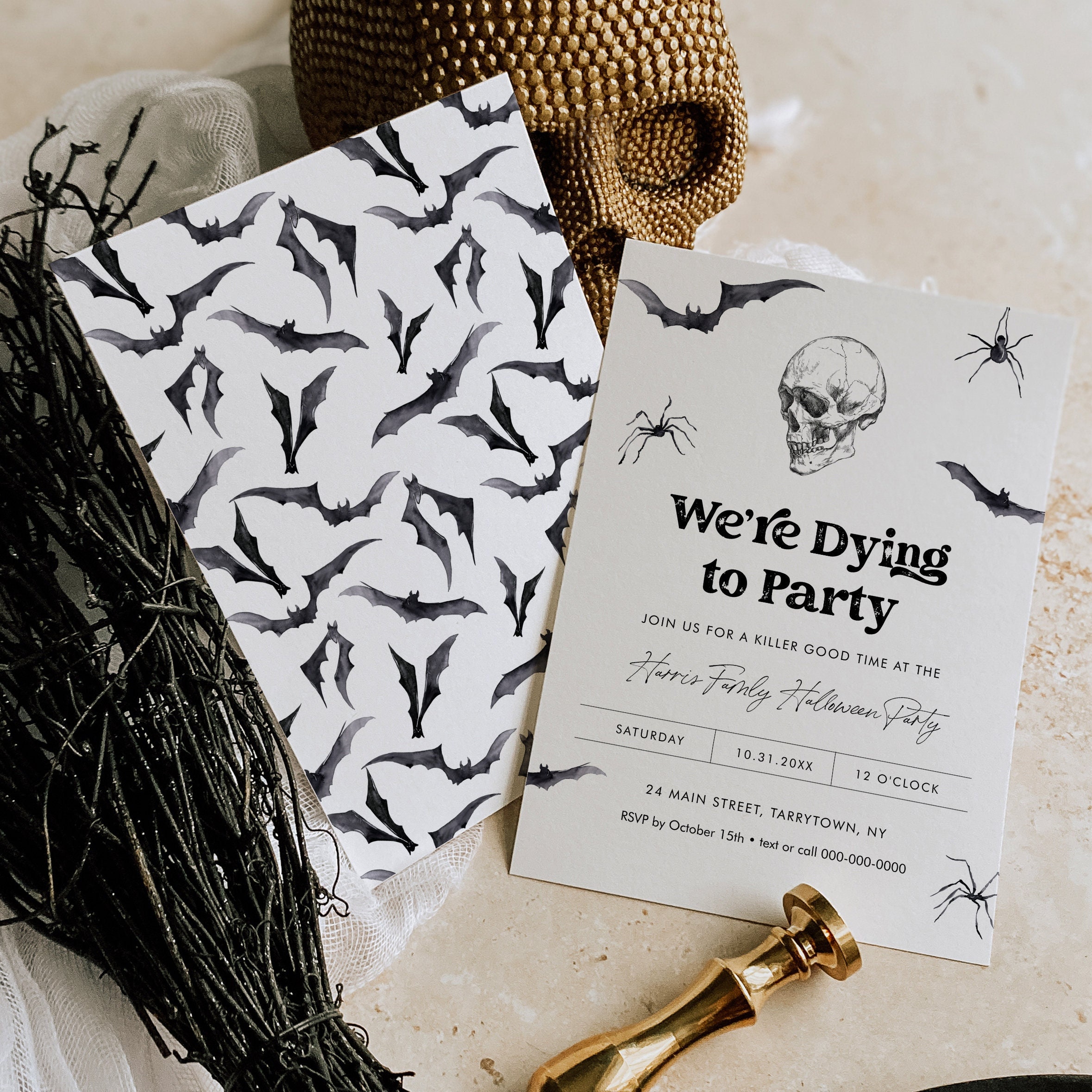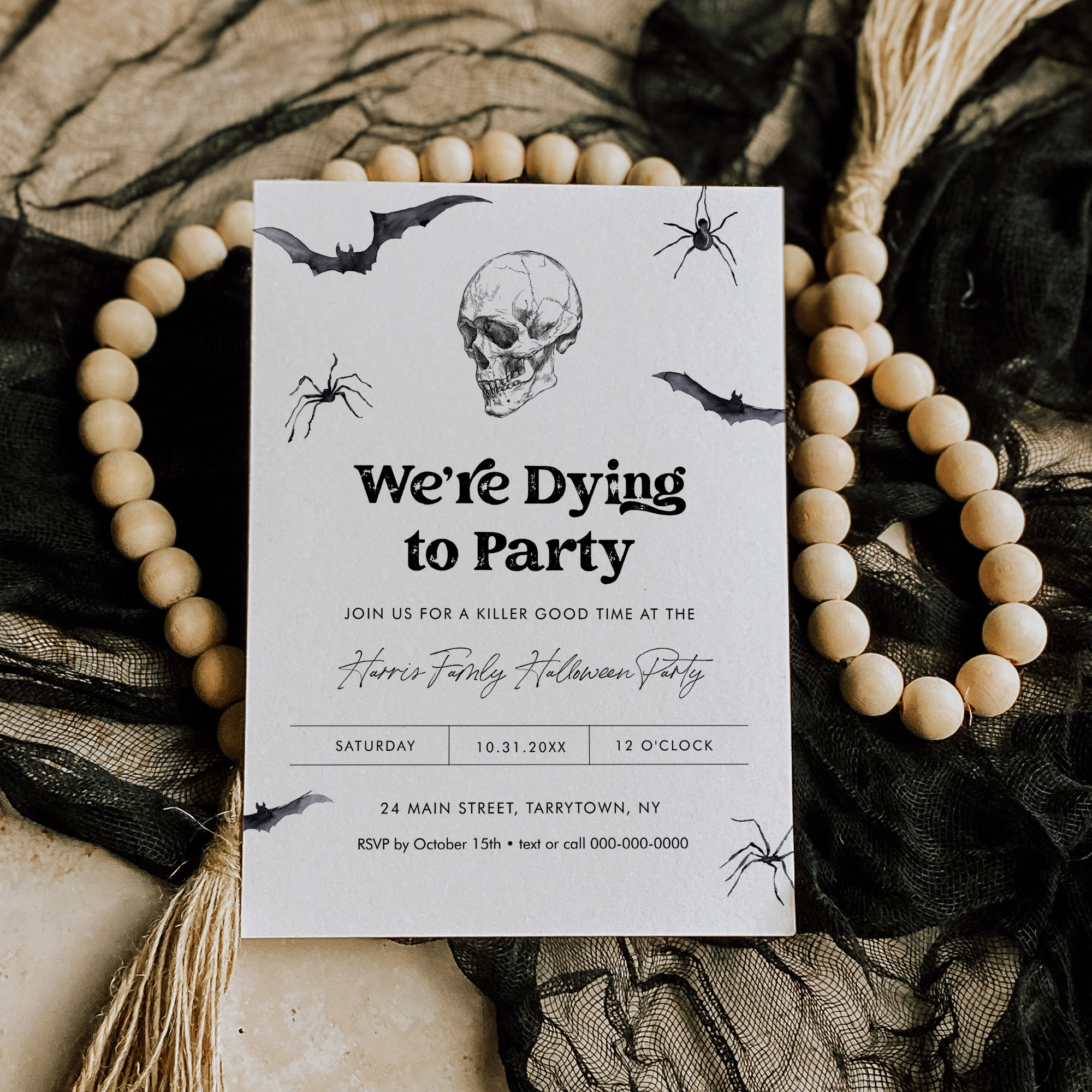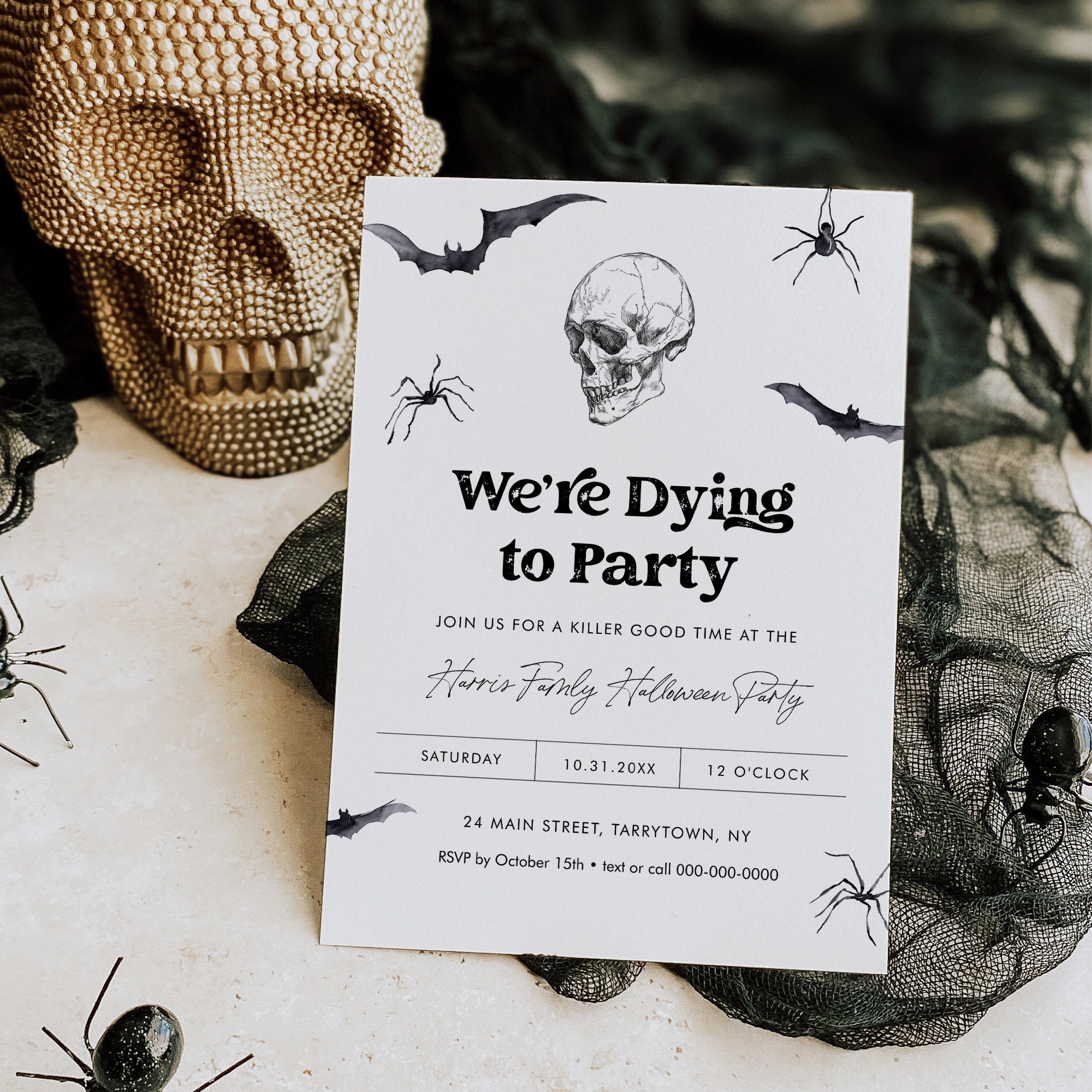 This skull halloween party invitation is an instant download. Access your template within minutes of purchase and edit in Templett - A fully customizable template editor that allows you to personalize your printable directly in your web browser. No software to install or fonts to download.