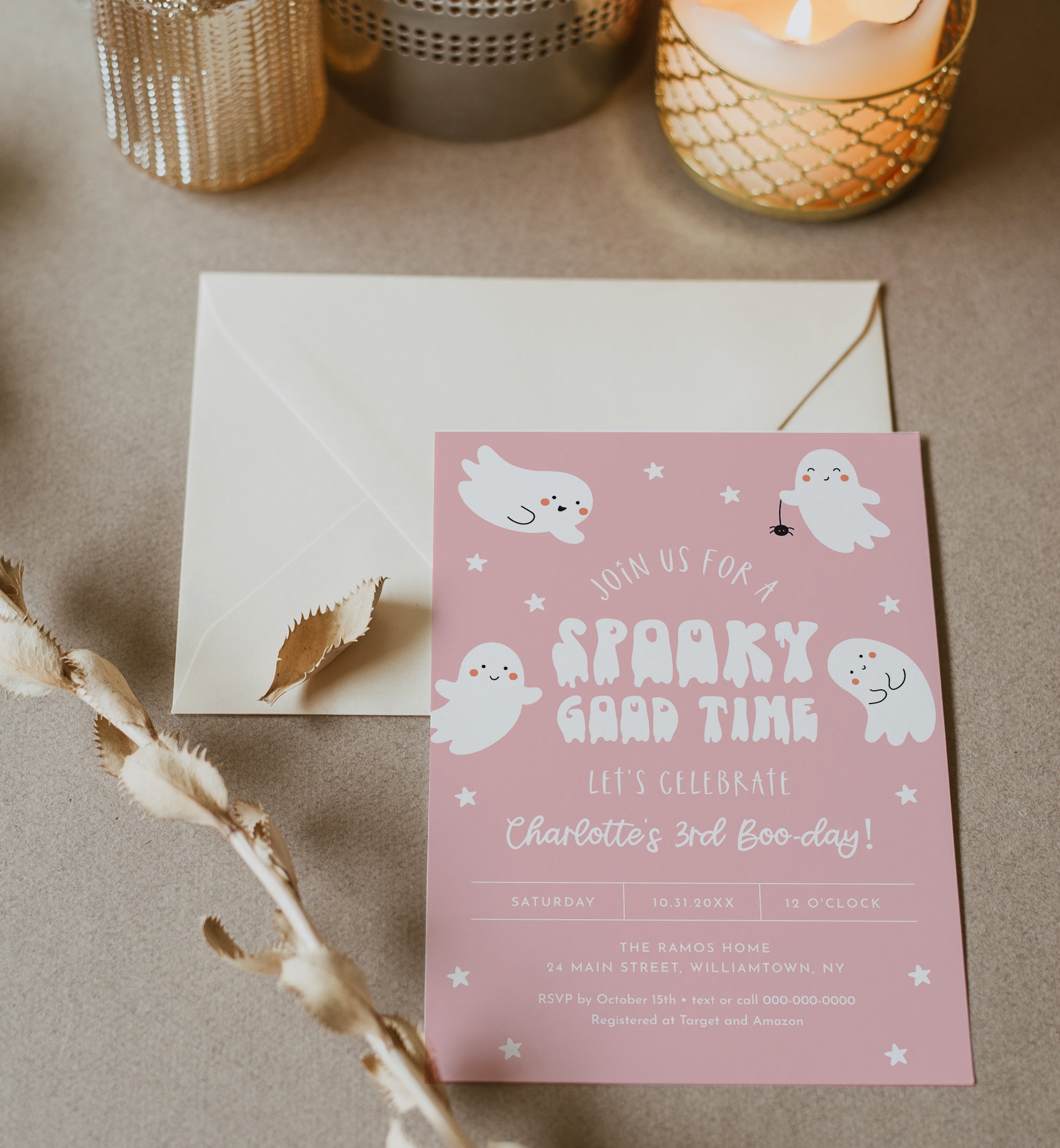 This halloween birthday Invitation template is and instant download. Access your template within minutes of purchase and edit in Templett - A fully customizable template editor that allows you to personalize your printable directly in your web browser. No software to install or fonts to download.