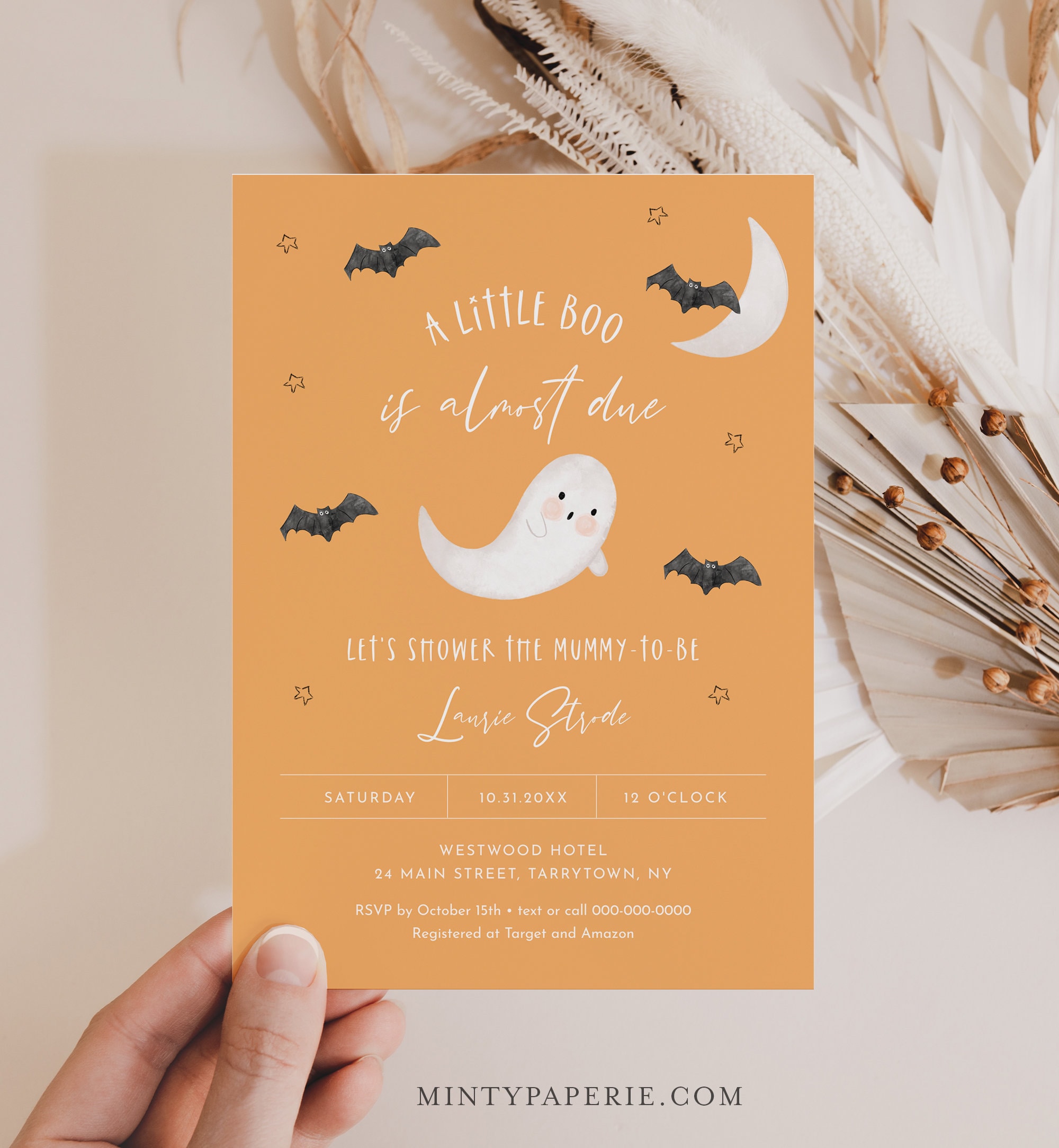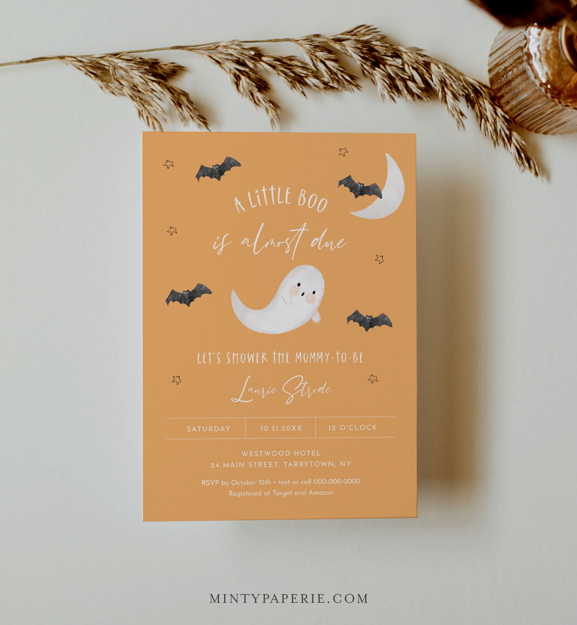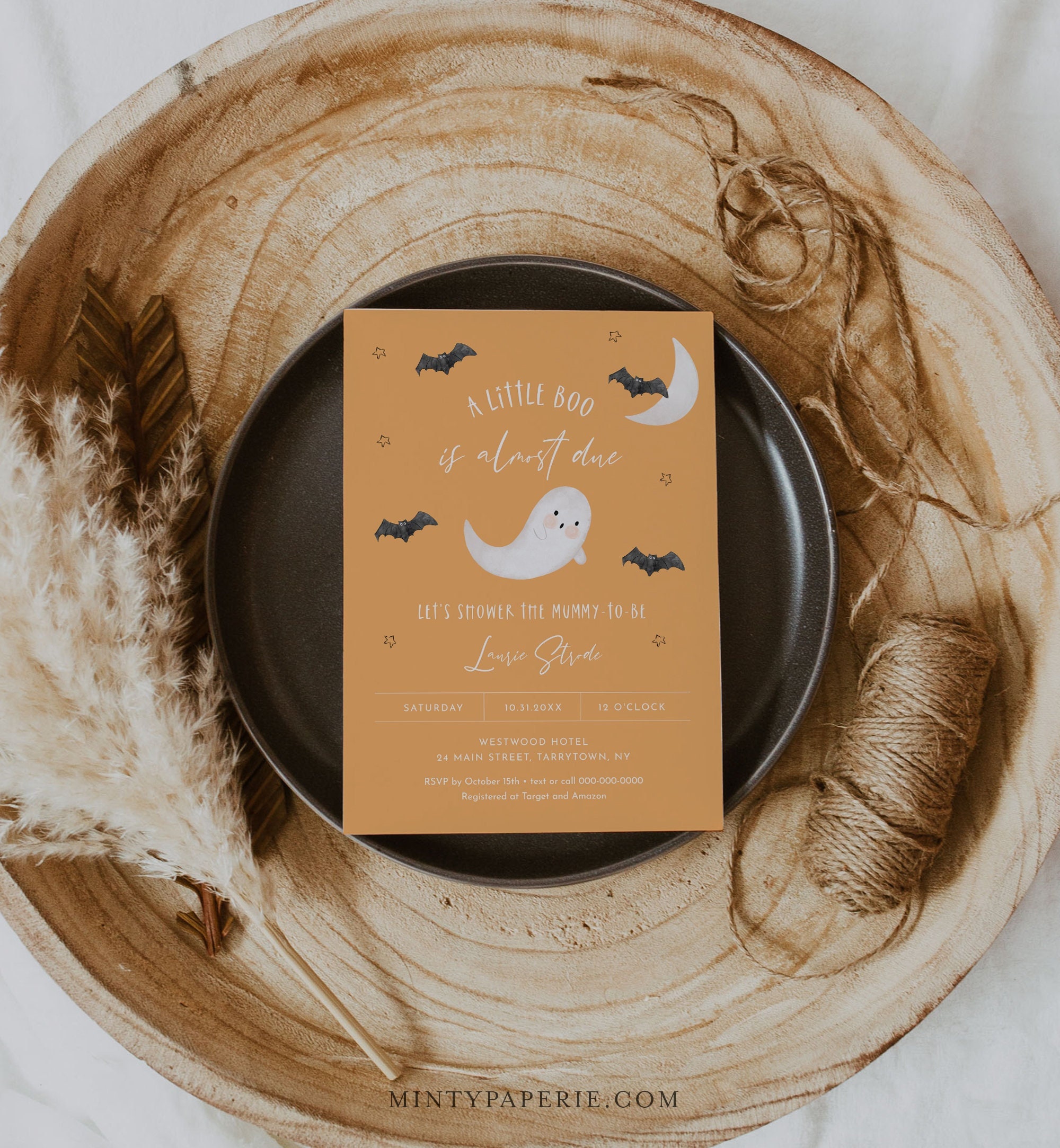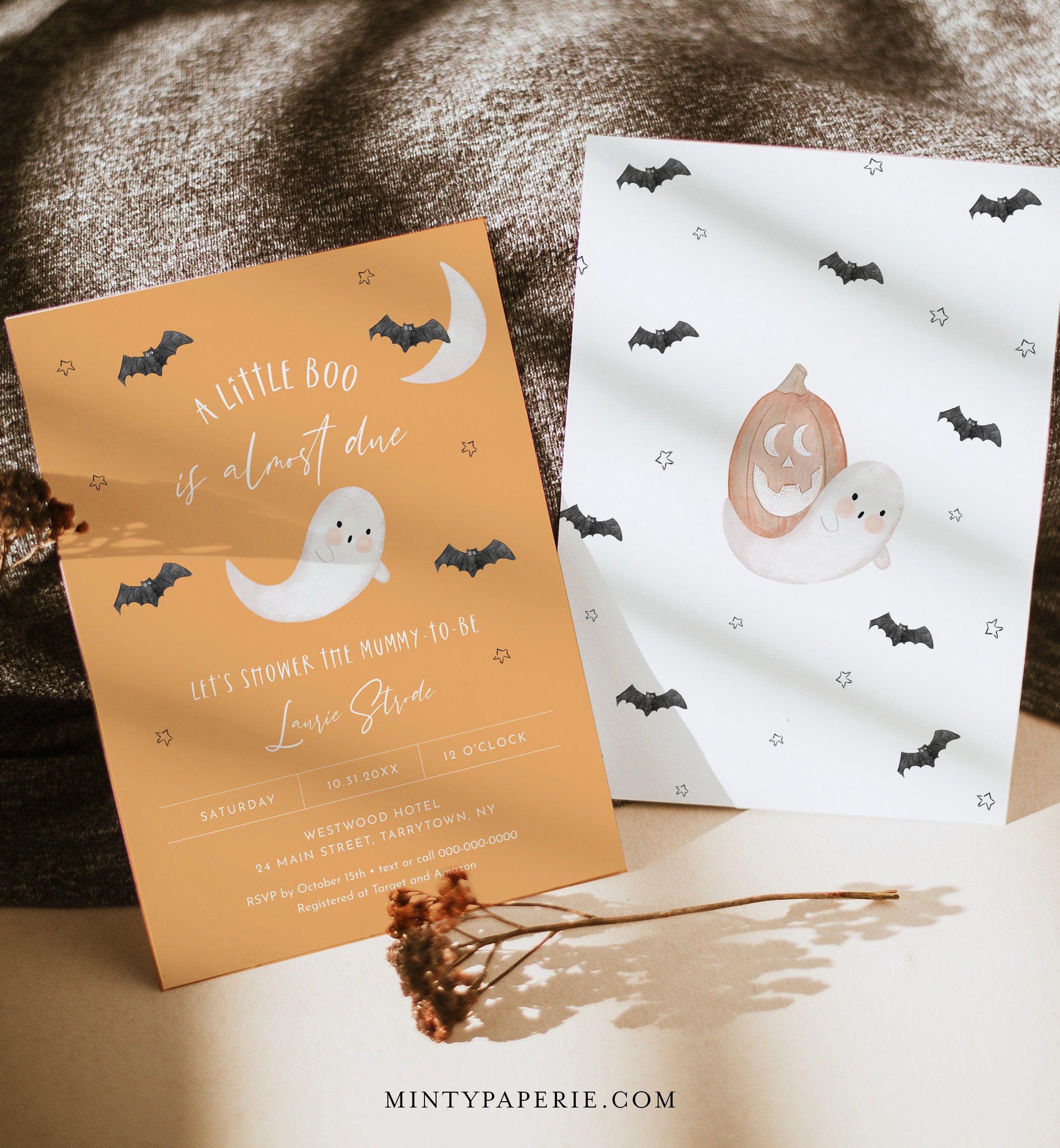 This halloween baby shower Invitation template is and instant download. Access your template within minutes of purchase and edit in Templett - A fully customizable template editor that allows you to personalize your printable directly in your web browser. No software to install or fonts to download.