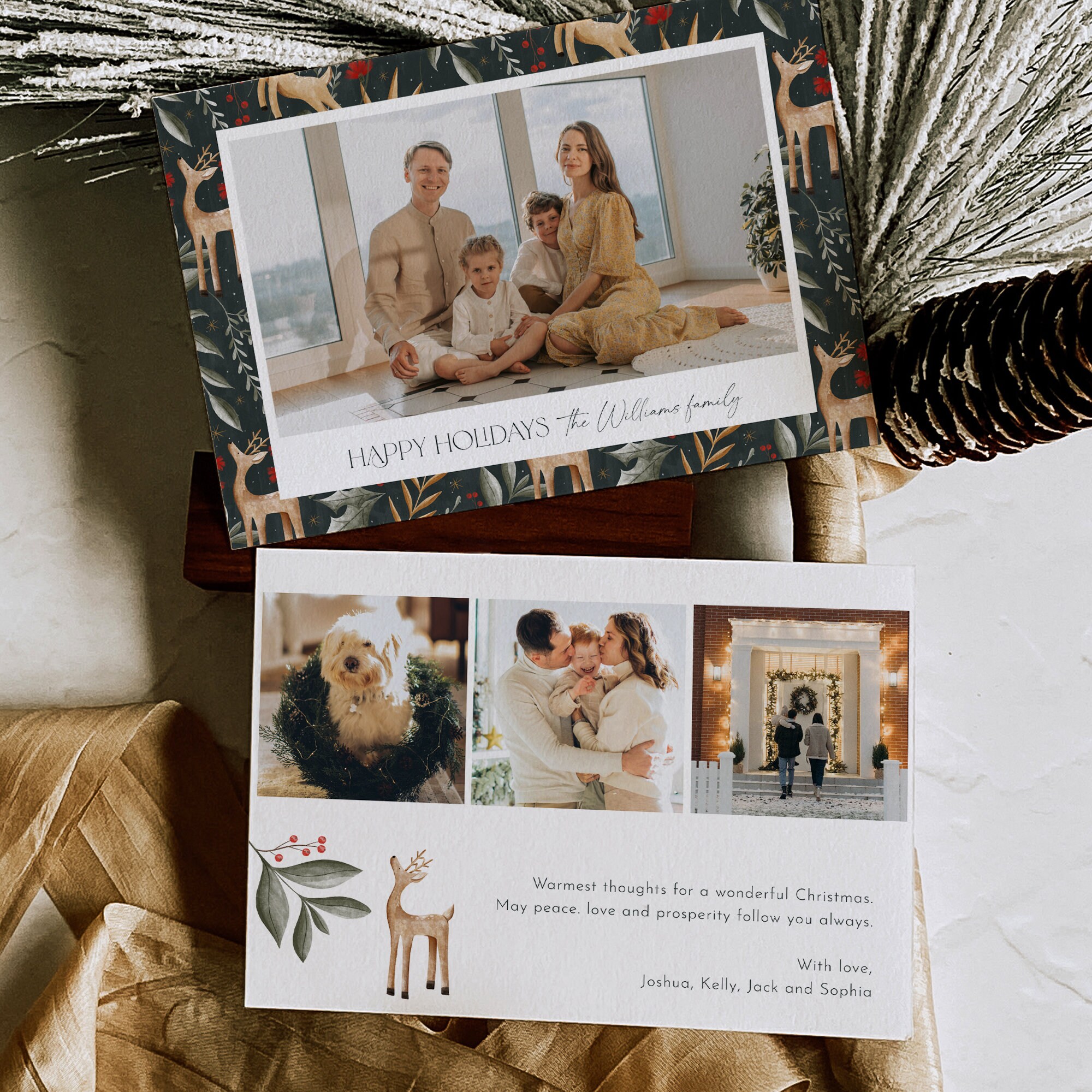 This photo holiday card template is an instant download. Access your template within minutes of purchase and edit using Templett - A fully customizable template editor that allows you to personalize your printable directly in your web browser. No software to install or fonts to download.