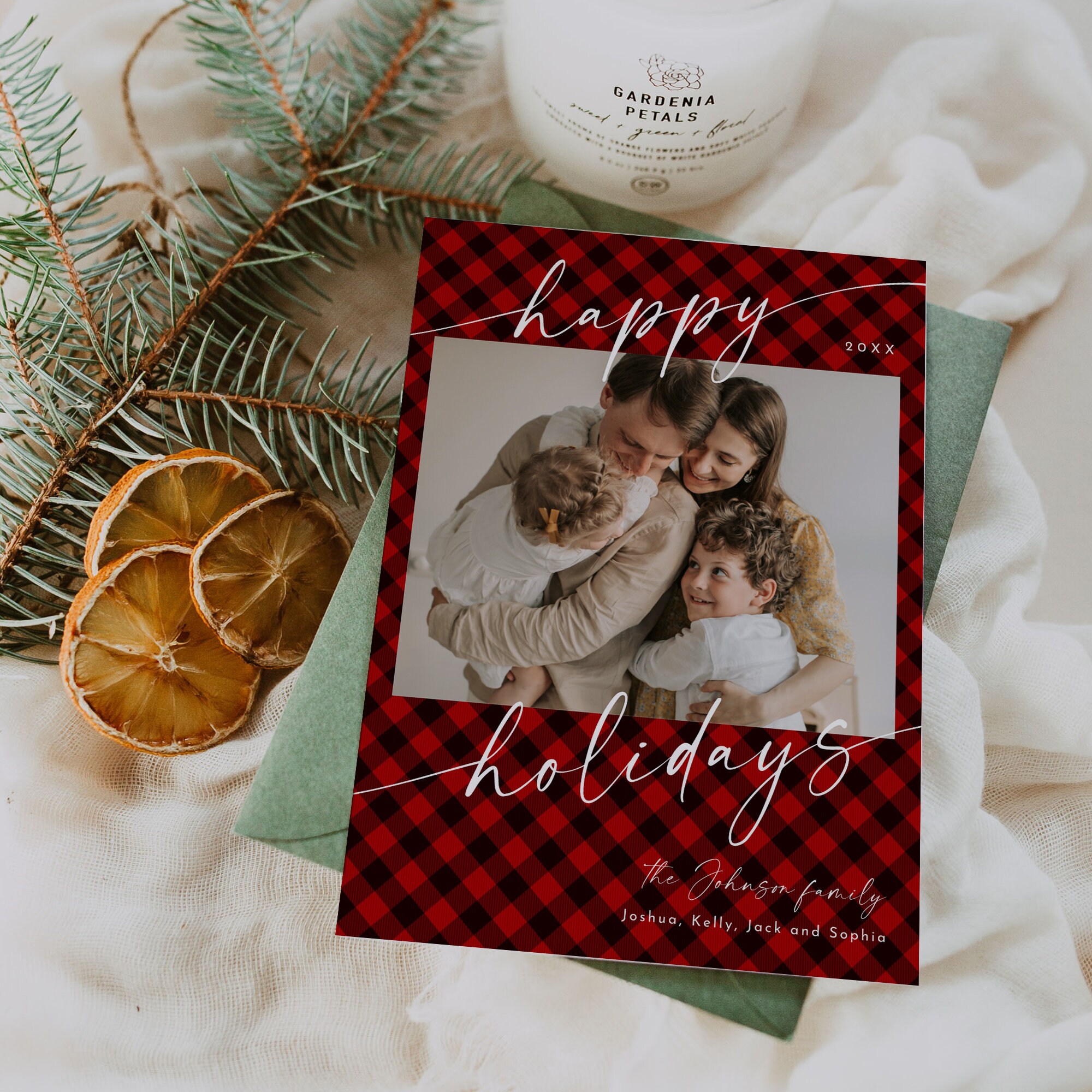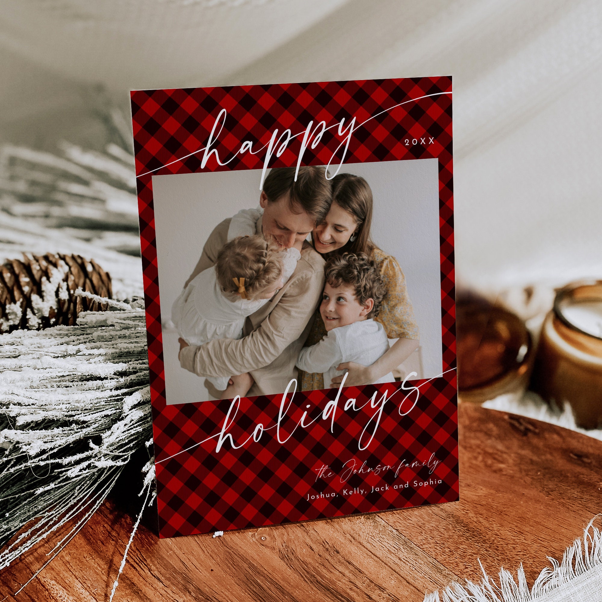 This photo holiday card template is an instant download. Access your template within minutes of purchase and edit using Templett - A fully customizable template editor that allows you to personalize your printable directly in your web browser. No software to install or fonts to download.
