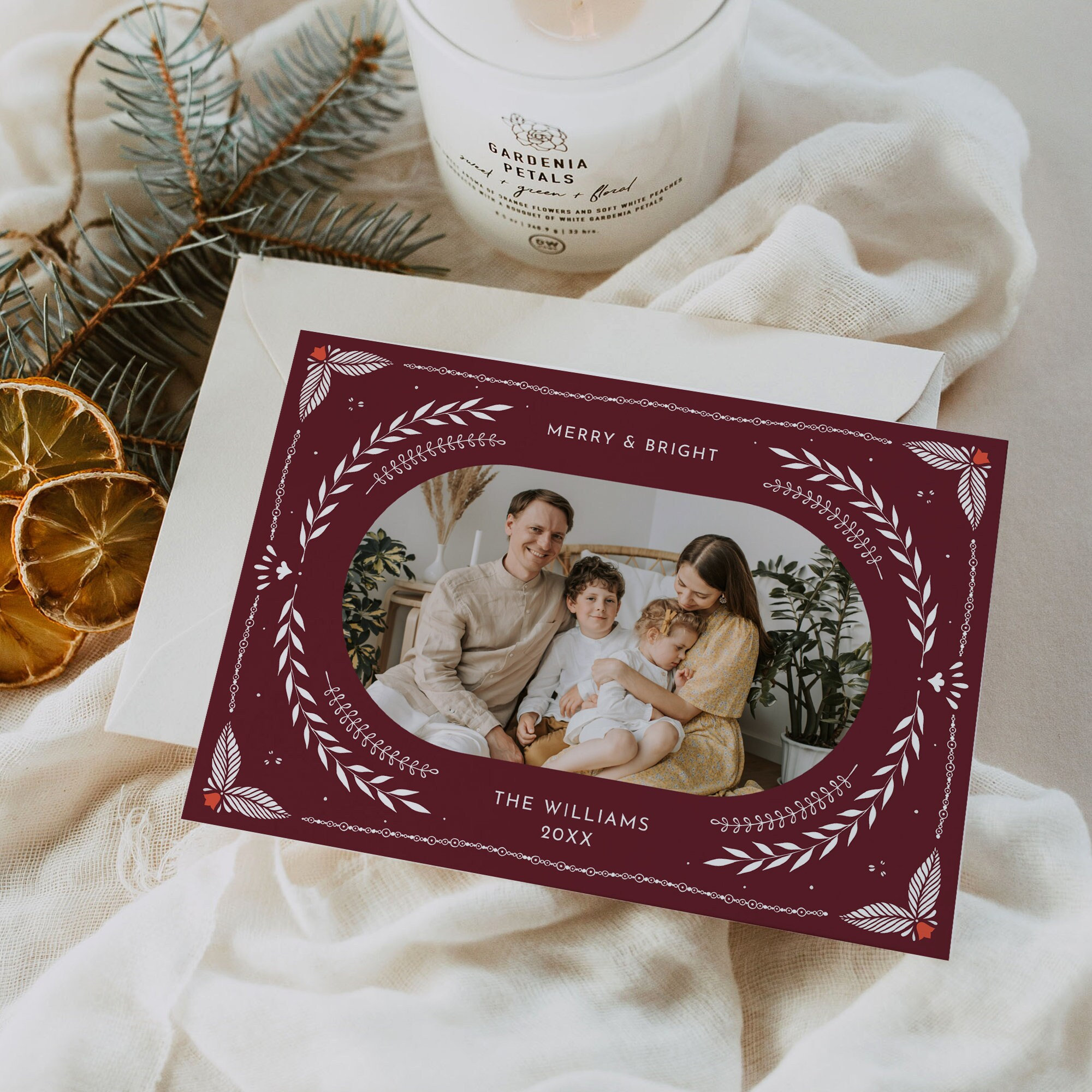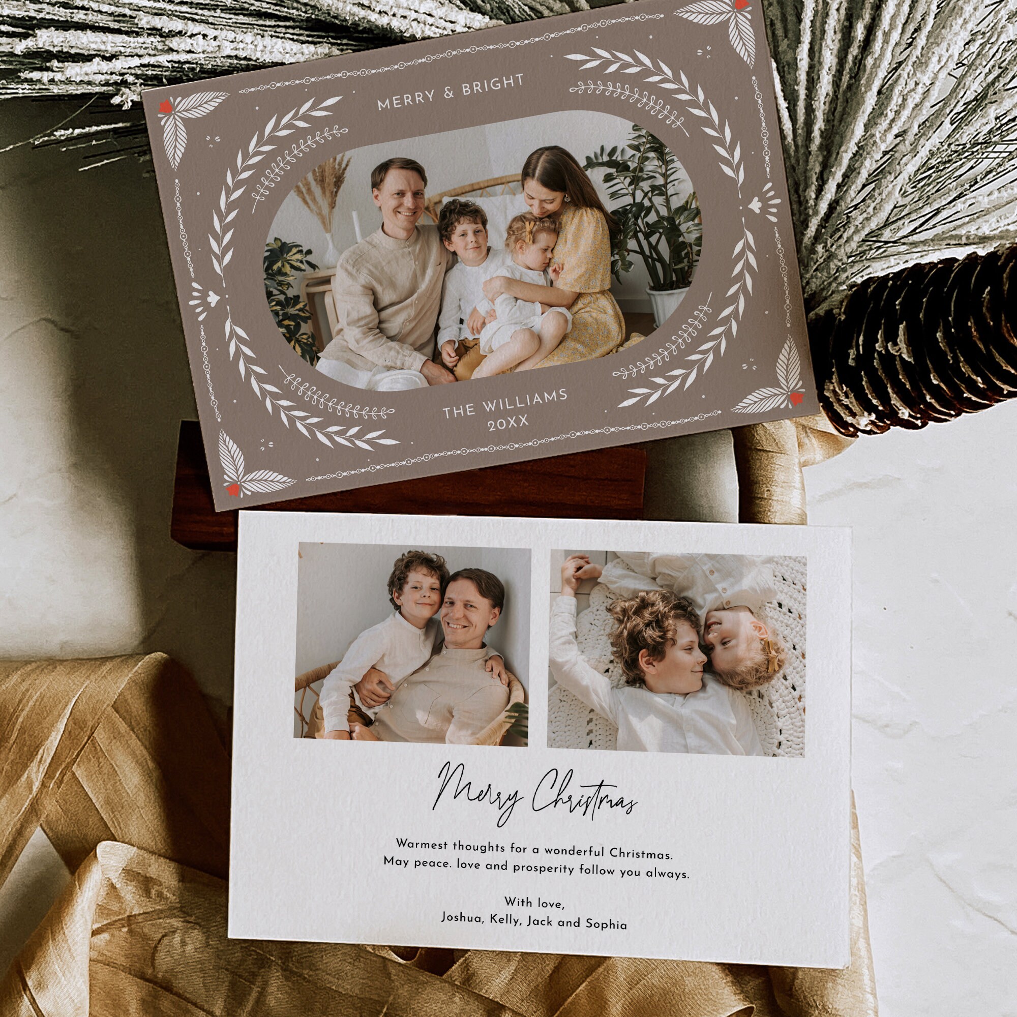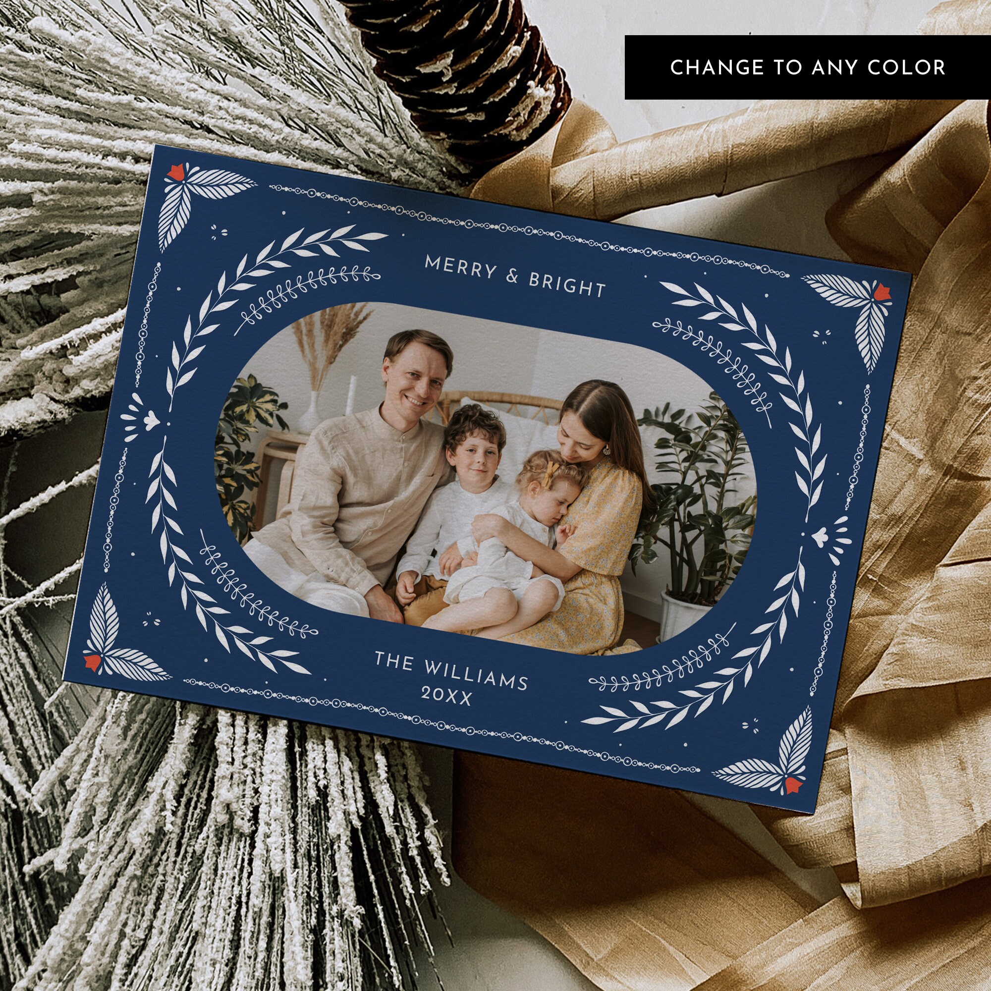 This photo holiday card template is an instant download. Access your template within minutes of purchase and edit using Templett - A fully customizable template editor that allows you to personalize your printable directly in your web browser. No software to install or fonts to download.