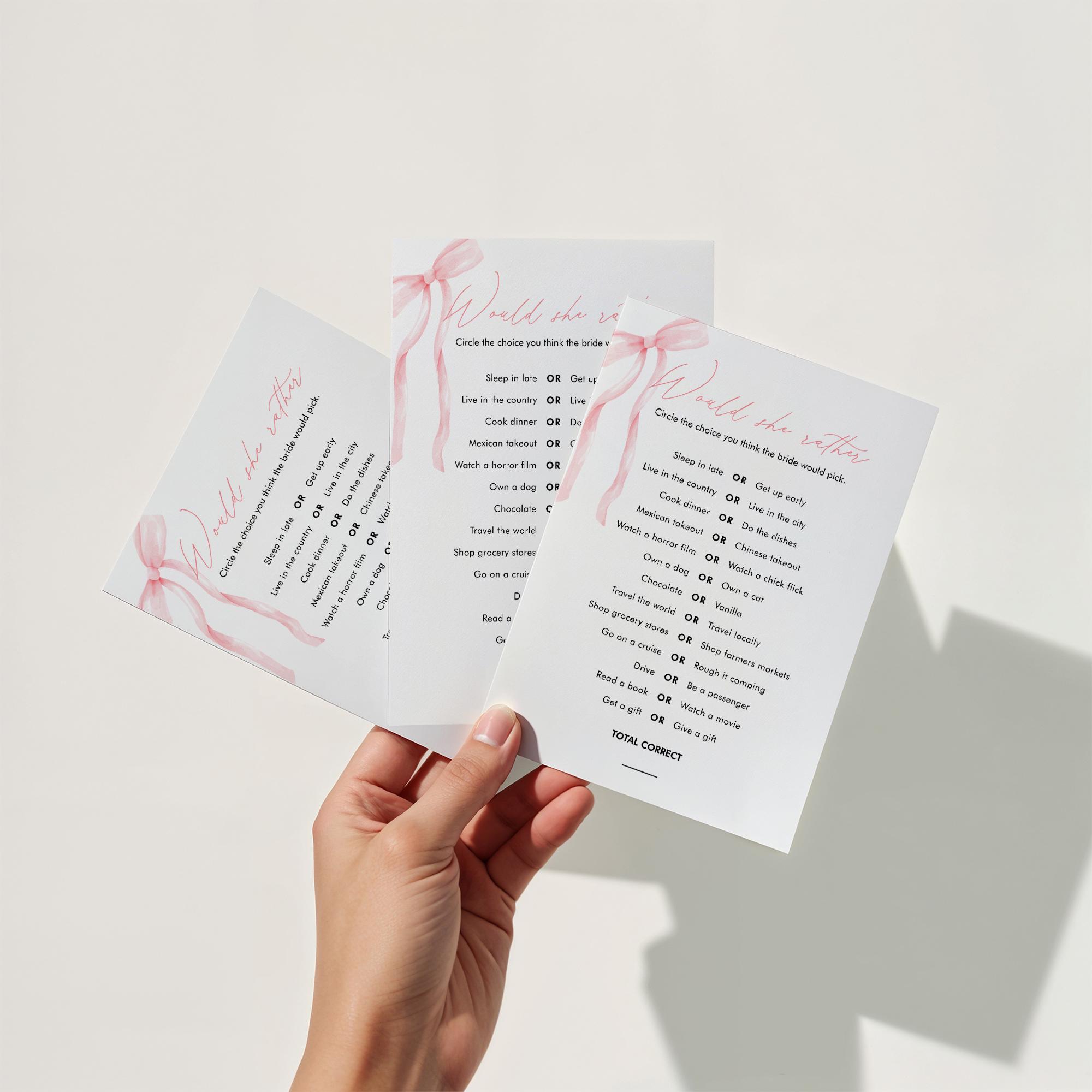 This would she rather bridal shower game is an instant download. Access your template within minutes of purchase and edit in Templett - A fully customizable template editor that allows you to personalize your printable directly in your web browser. No software to install or fonts to download.