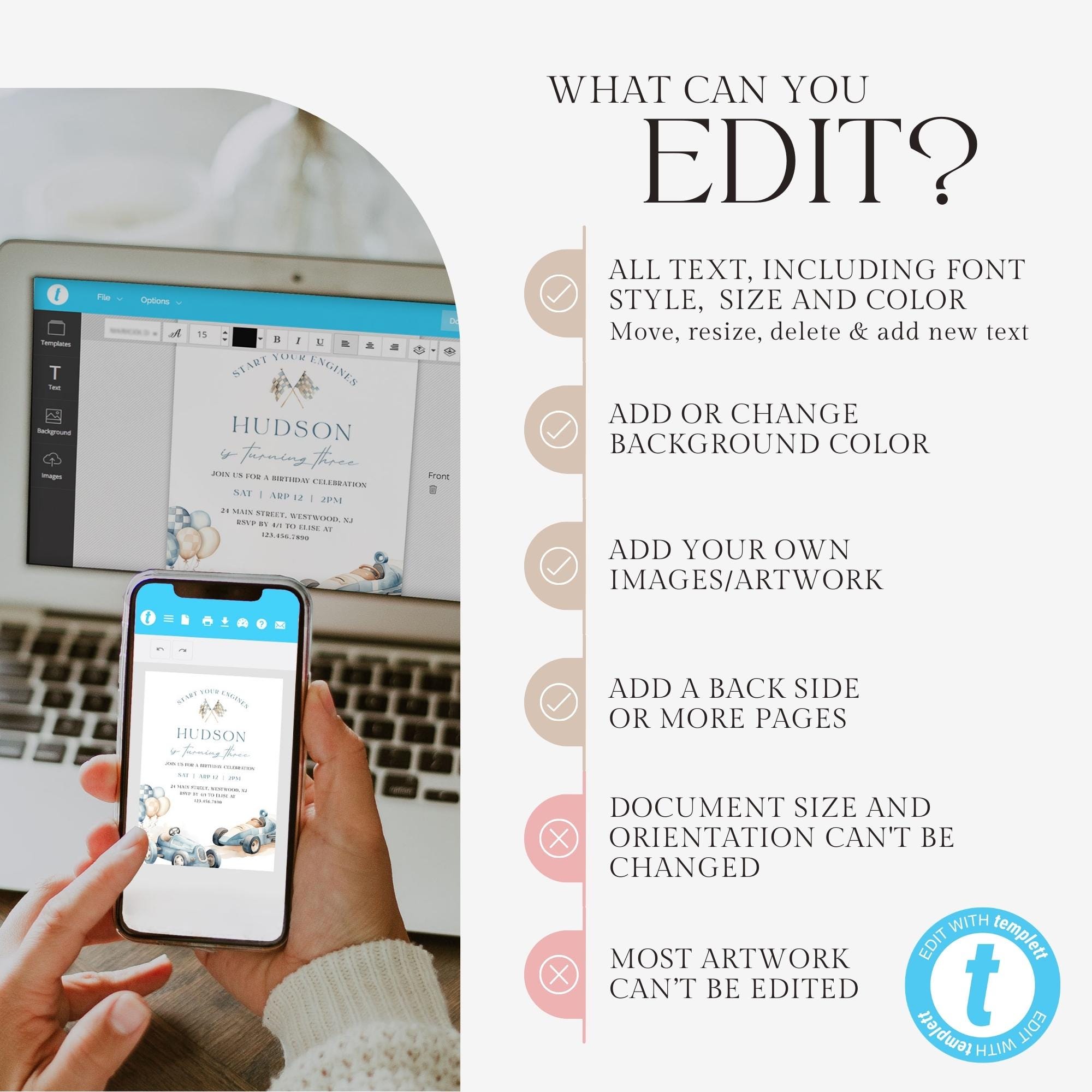 • The purchase of a template is strictly for ONE-TIME USE ONLY. You are permitted to edit, save, and download the template as many times as needed for the purpose of editing and proofreading, but it should be used for a single event only. Using the template for multiple events is not allowed.