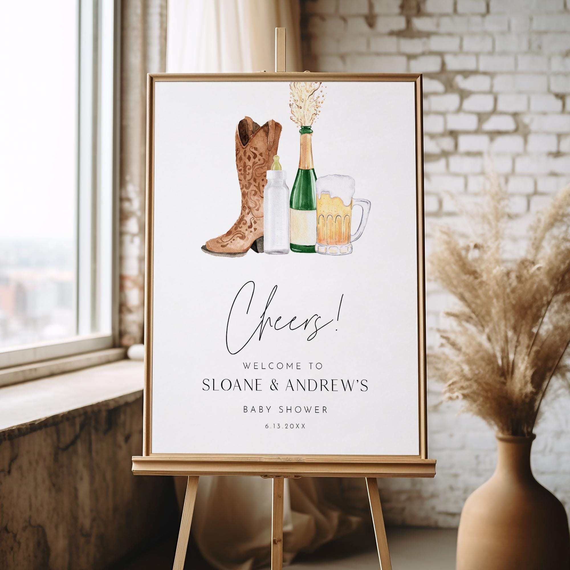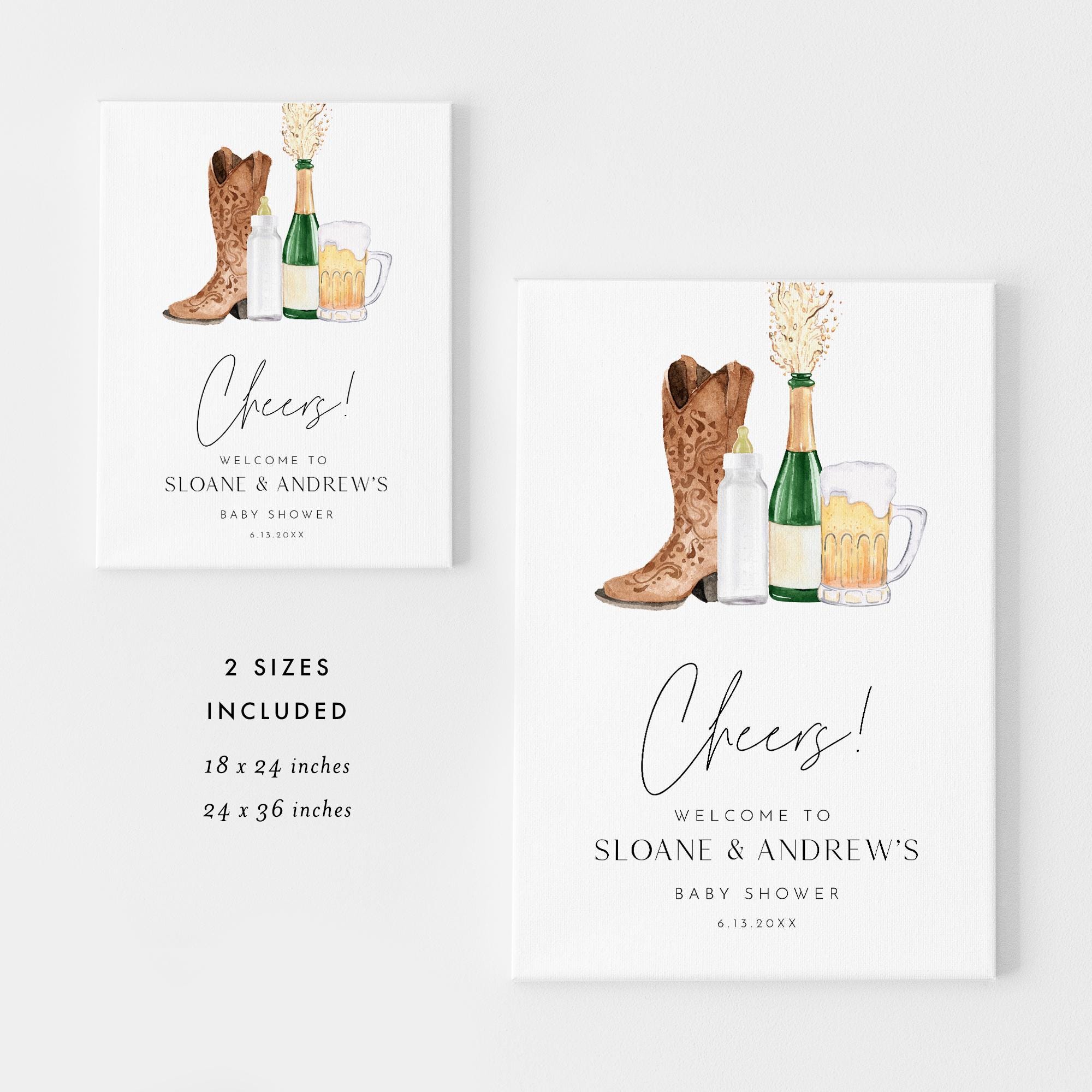 This boots and bottles baby shower welcome sign template is an instant download. Access your template within minutes of purchase and edit in Templett - A fully customizable template editor that allows you to personalize your printable directly in your web browser. No software to install or fonts to download.