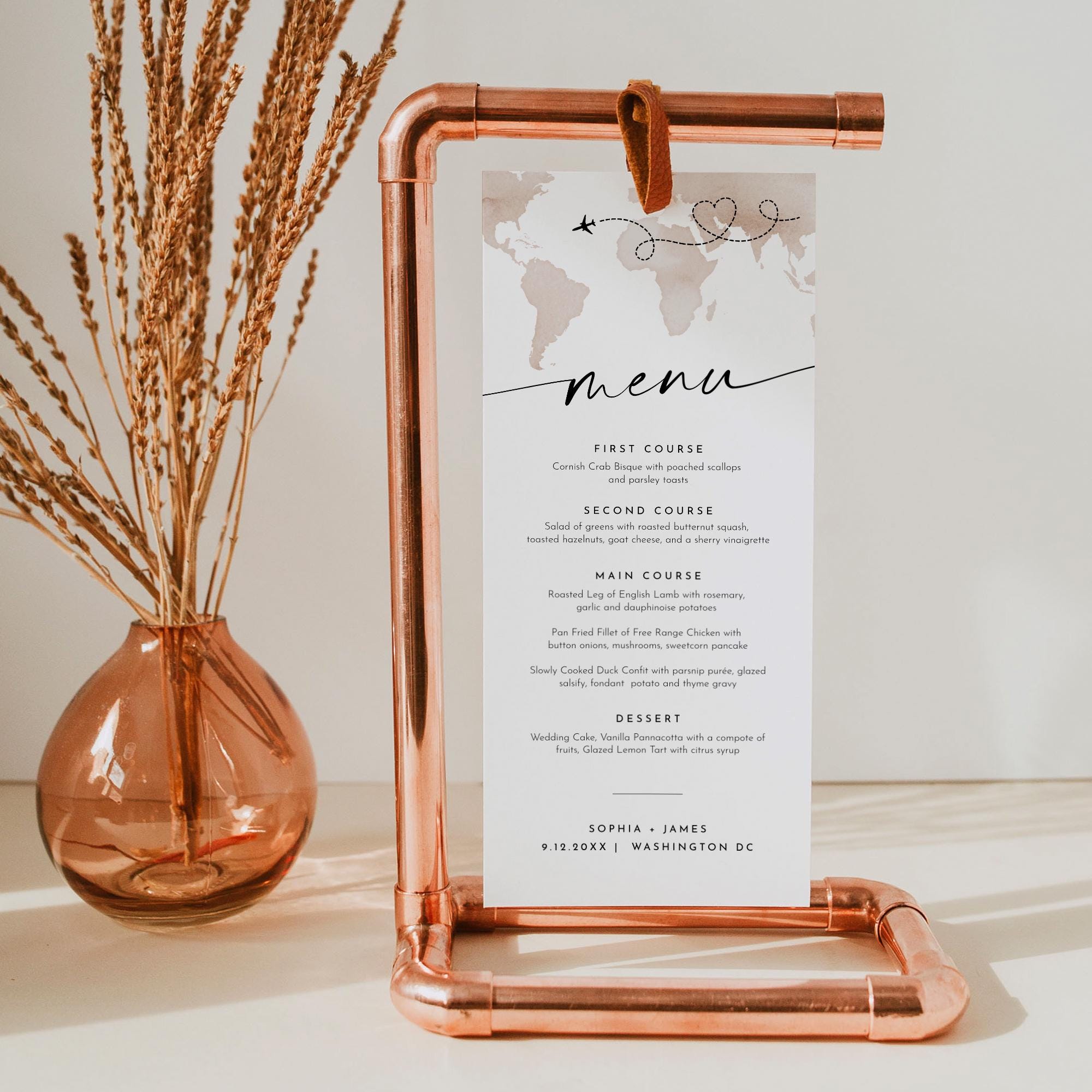 This maps menu template is an instant download. Access your template within minutes of purchase and edit in Templett - A fully customizable template editor that allows you to personalize your printable directly in your web browser. No software to install or fonts to download.