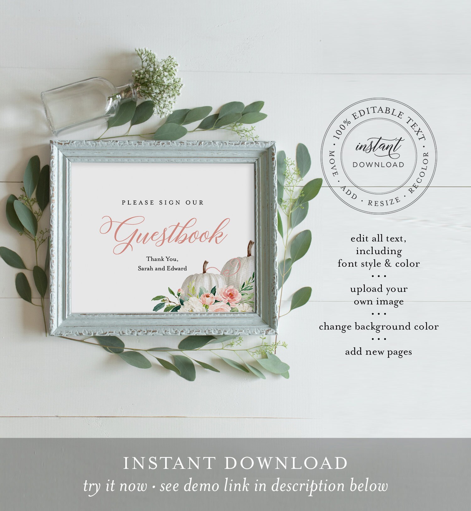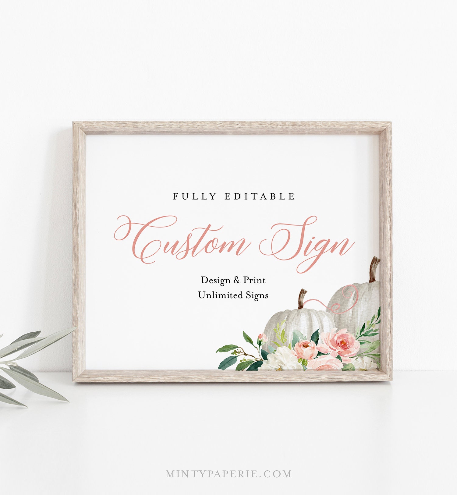 This CUSTOM WEDDING SIGN template allows you to create and design as many signs as you wish. It's an INSTANT DOWNLOAD - Access your template within minutes of purchase and edit in TEMPLETT - A fully customizable template editor that allows you to personalize your printable directly in your web browser. No software to install or fonts to download.