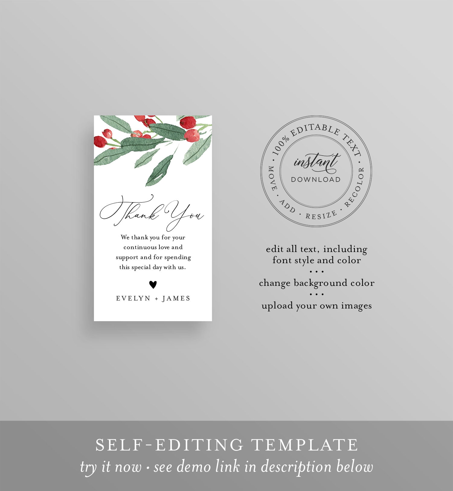 This listing is an "INSTANT DOWNLOAD" that includes a high resolution, printable WEDDING FAVOR TAG Template. Design and create as many tags as you like. Use it for a wedding, bridal shower, baby shower or birthday party. Access your template within minutes of purchase and edit in TEMPLETT - A fully customizable template editor that allows you to personalize your printable directly in your web browser. No software to install or fonts to download.
