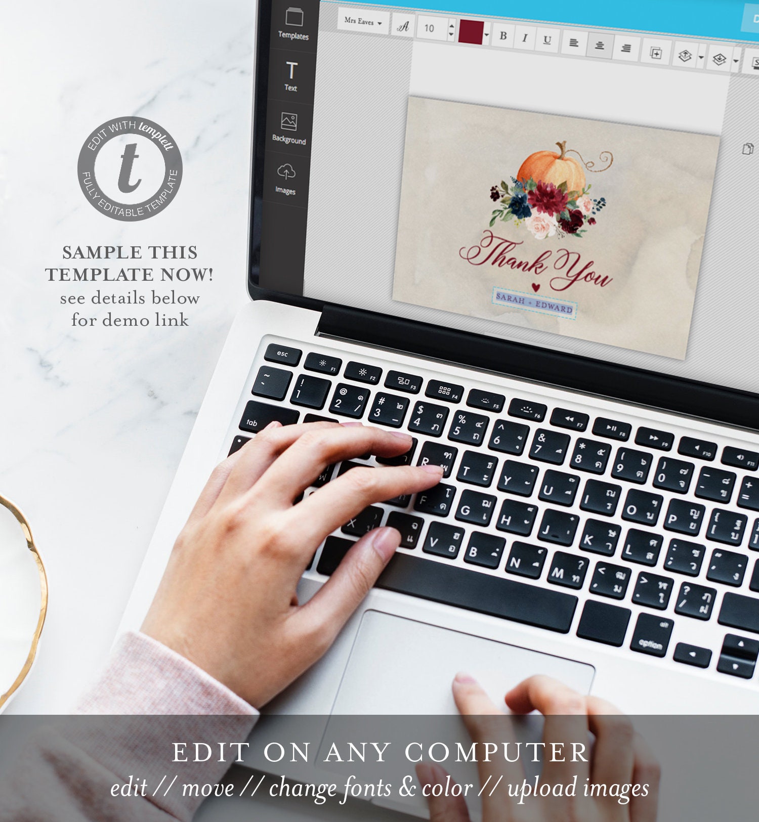 This WEDDING THANK YOU CARD template is an INSTANT DOWNLOAD. Access your template within minutes of purchase and edit in TEMPLETT - A fully customizable template editor that allows you to personalize your printable directly in your web browser. No software to install or fonts to download.