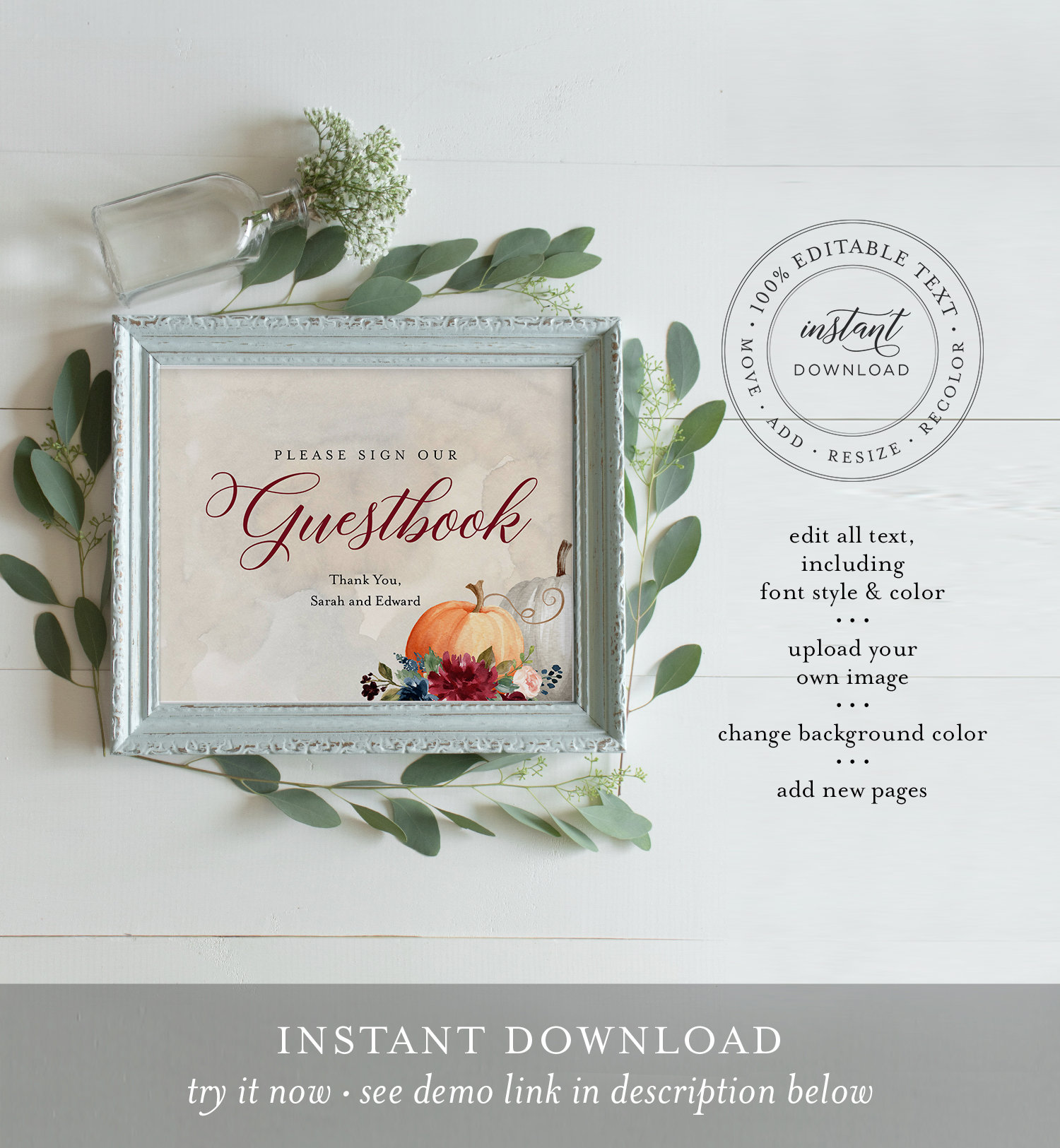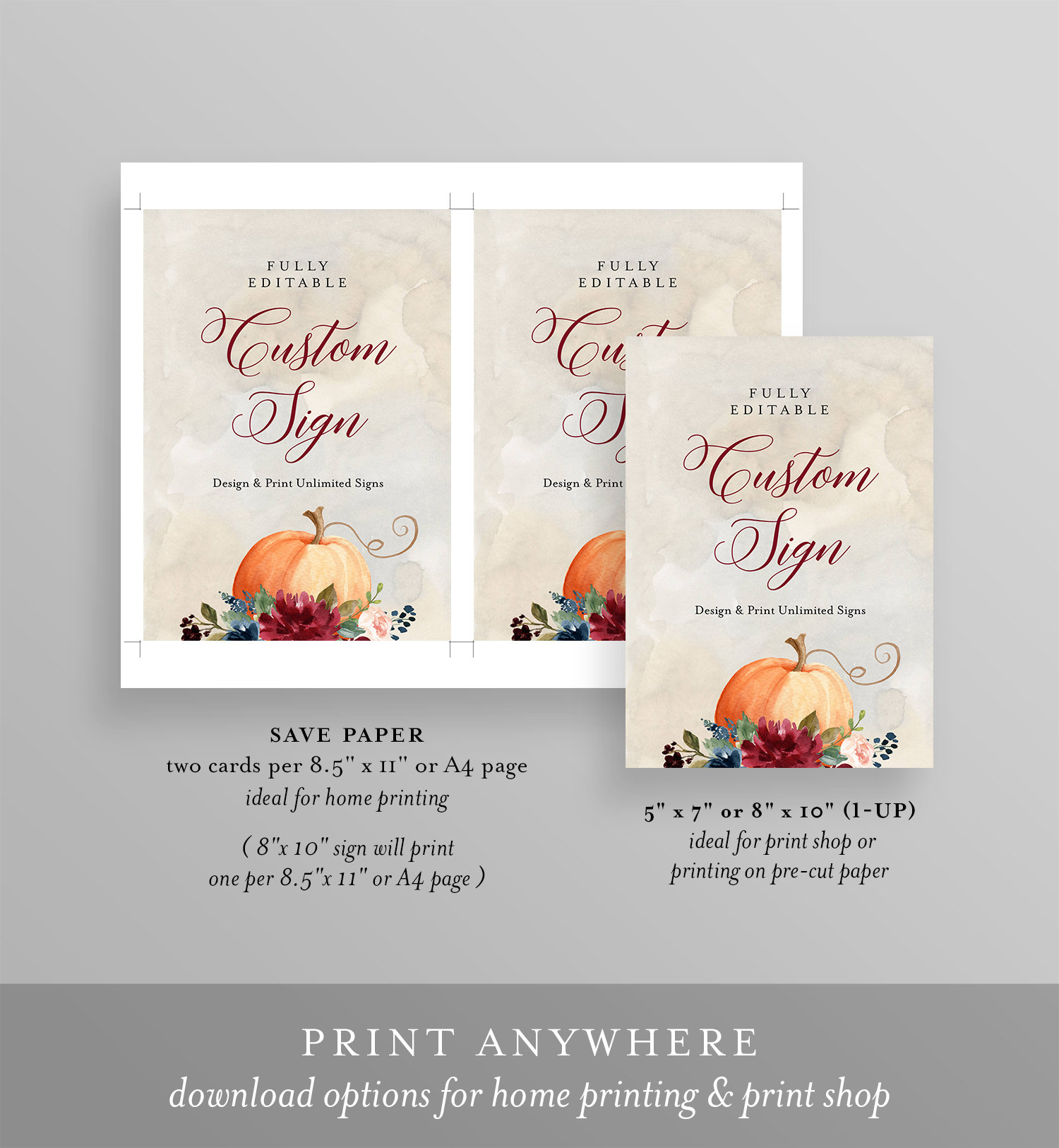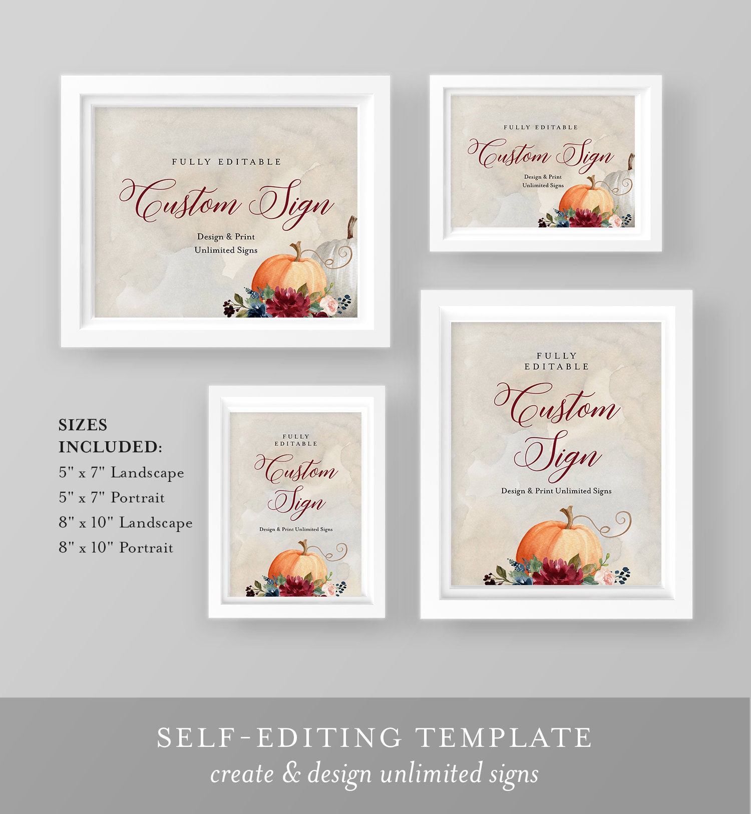 This CUSTOM WEDDING SIGN template allows you to create and design as many signs as you wish. It's an INSTANT DOWNLOAD - Access your template within minutes of purchase and edit in TEMPLETT - A fully customizable template editor that allows you to personalize your printable directly in your web browser. No software to install or fonts to download.