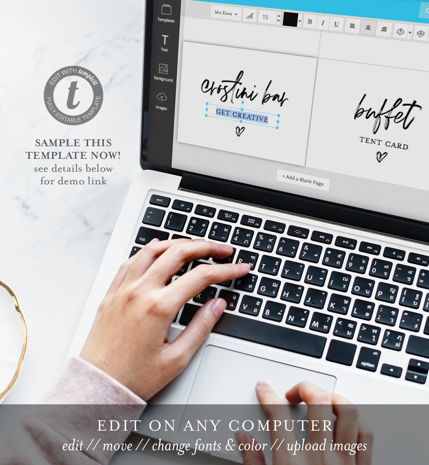 This WEDDING BUFFET CARD template allows you to create and design as many food labels as you wish. It's an INSTANT DOWNLOAD - Access your template within minutes of purchase and edit in TEMPLETT - A fully customizable template editor that allows you to personalize your printable directly in your web browser. No software to install or fonts to download.