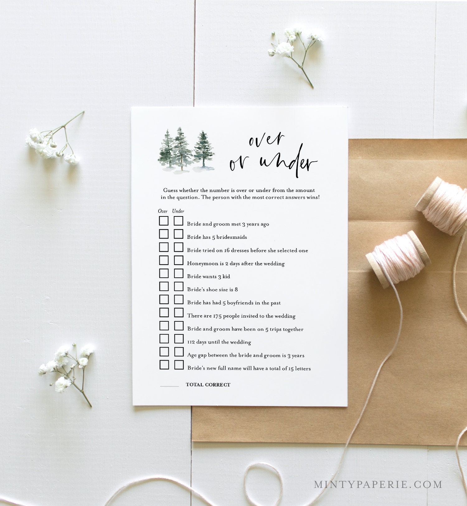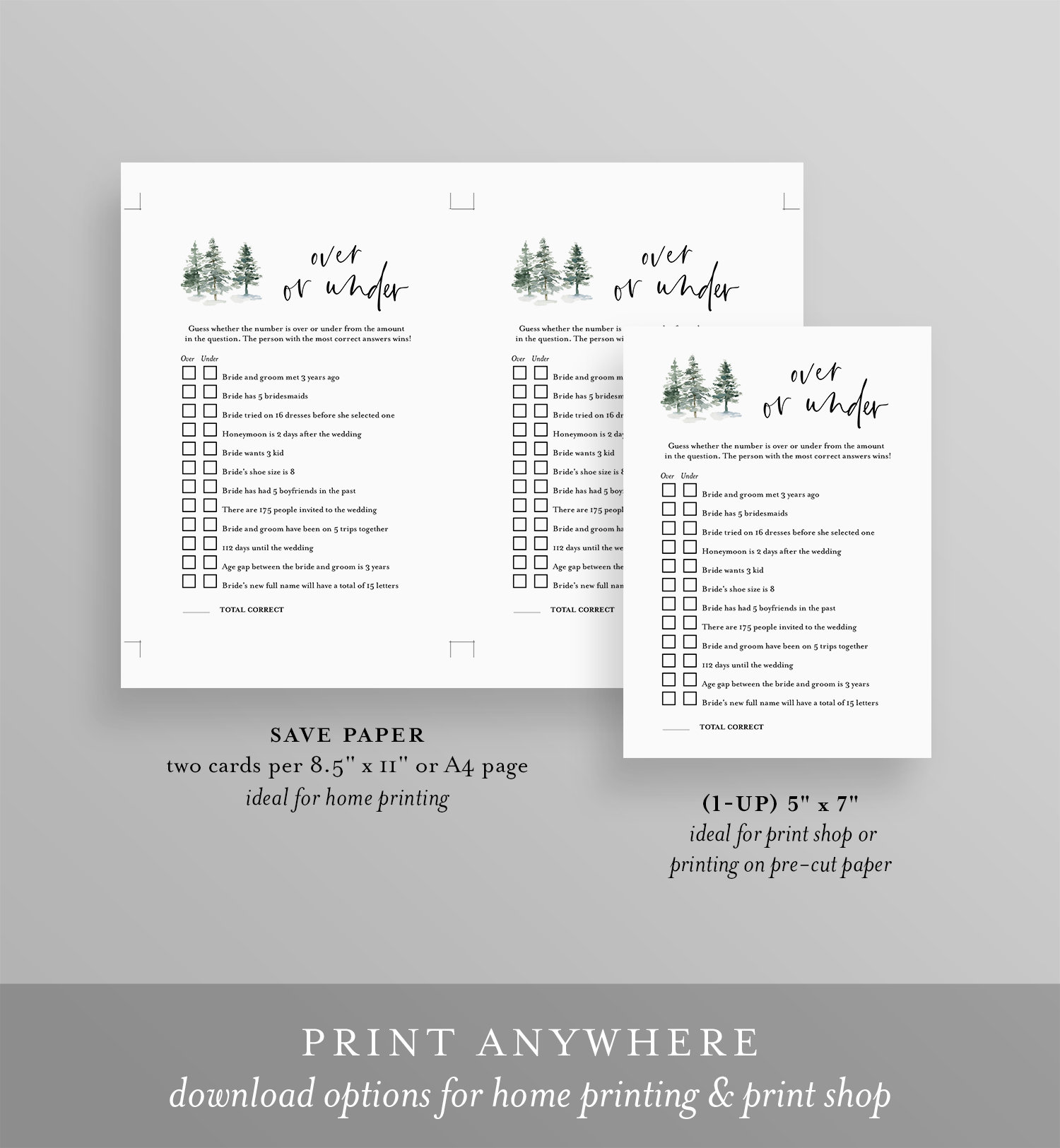 This OVER OR UNDER Bridal Shower Game is an INSTANT DOWNLOAD. Access your template within minutes of purchase and edit in TEMPLETT - A fully customizable template editor that allows you to personalize your printable directly in your web browser. No software to install or fonts to download.