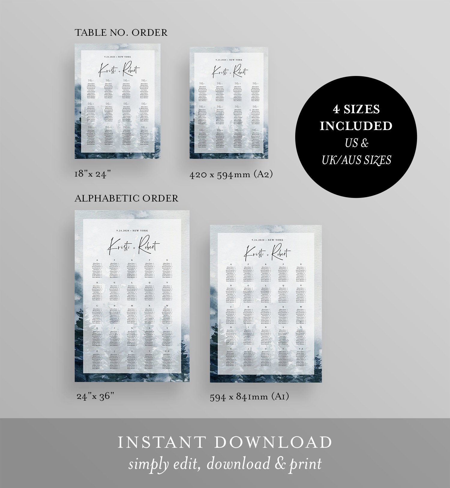 This listing is for a SEATING CHART SIGN template is an INSTANT DOWNLOAD. Access your template within minutes of purchase and edit in TEMPLETT - A fully customizable template editor that allows you to personalize your printable directly in your web browser. No software to install or fonts to download.