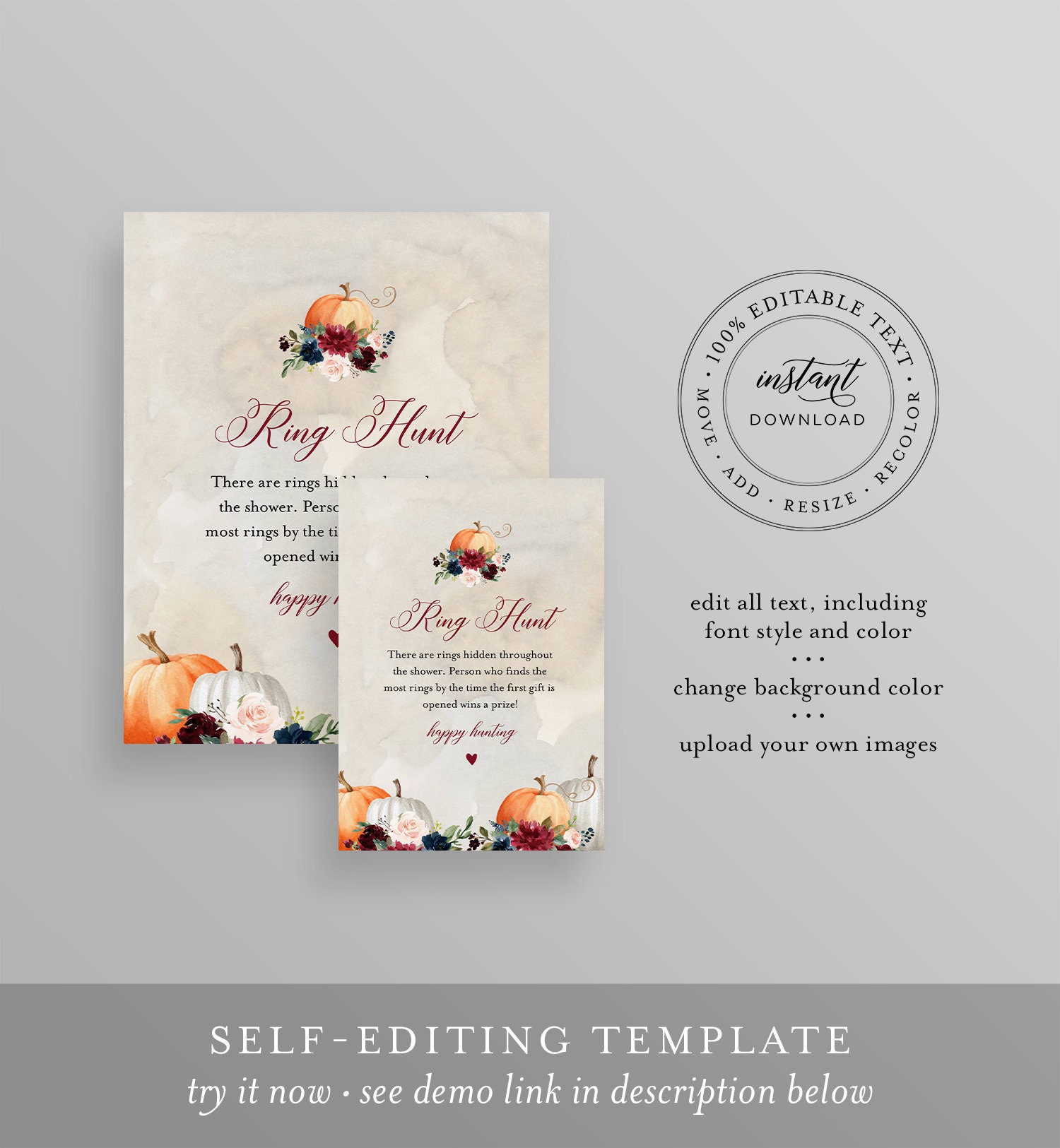 This ring hunt bridal shower game is an instant download. Access your template within minutes of purchase and edit in Templett - A fully customizable template editor that allows you to personalize your printable directly in your web browser. No software to install or fonts to download.