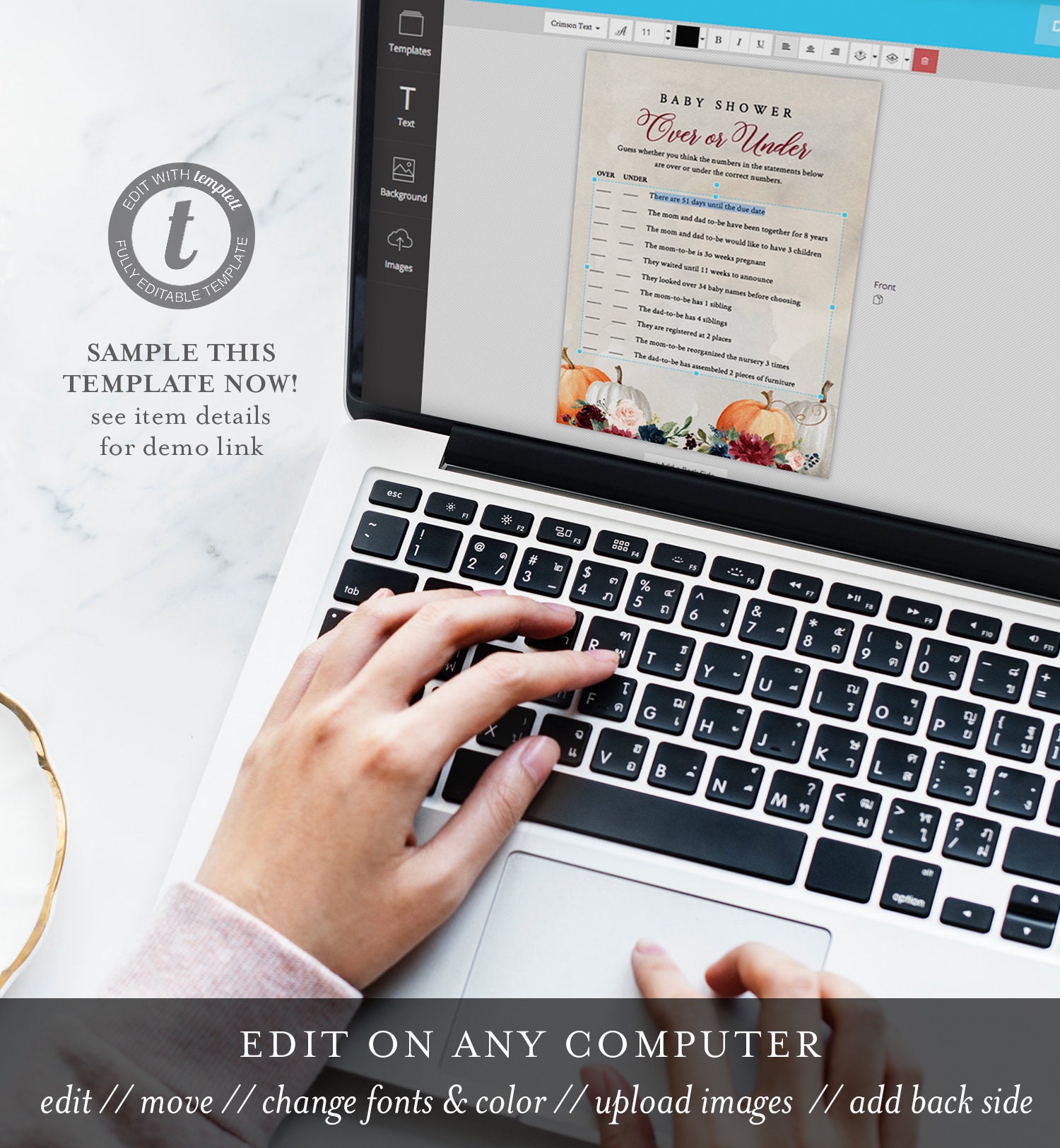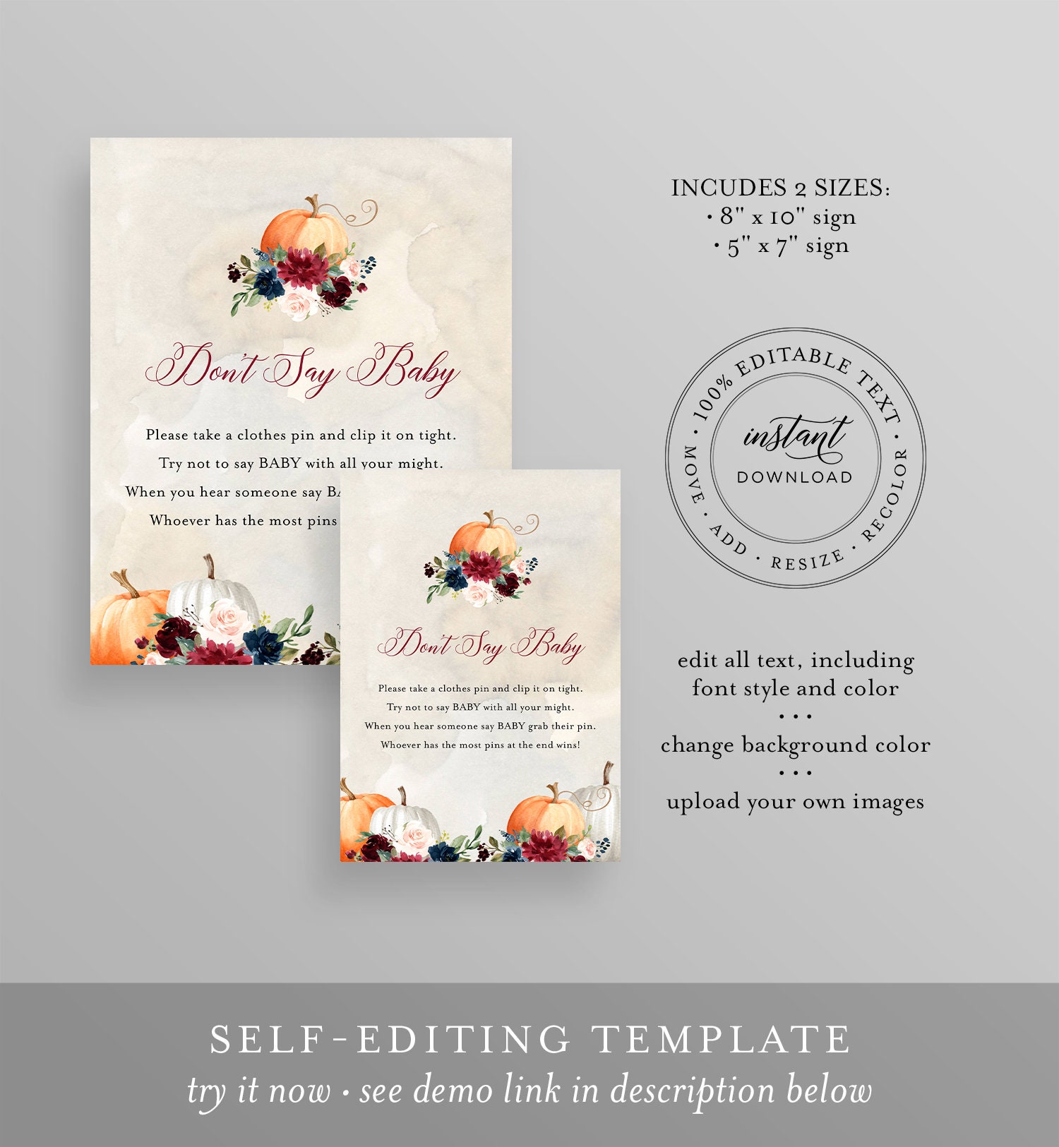 This don't say "baby" baby shower game template is an INSTANT DOWNLOAD. Access your template within minutes of purchase and edit in TEMPLETT - A fully customizable template editor that allows you to personalize your printable directly in your web browser. No software to install or fonts to download.