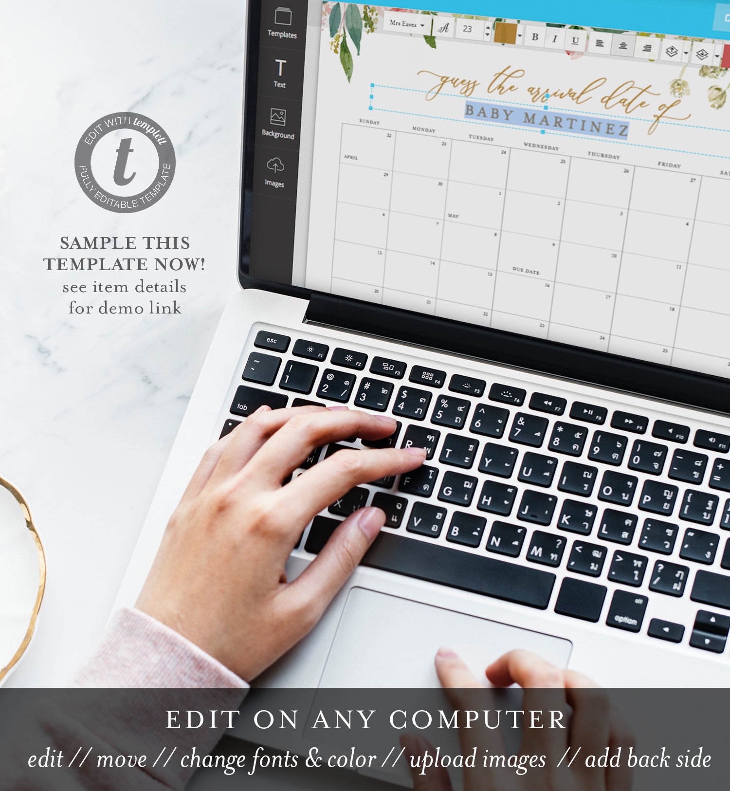 This guess the baby arrival date game is an instant download. Access your template within minutes of purchase and edit in Templett - A fully customizable template editor that allows you to personalize your printable directly in your web browser. No software to install or fonts to download.