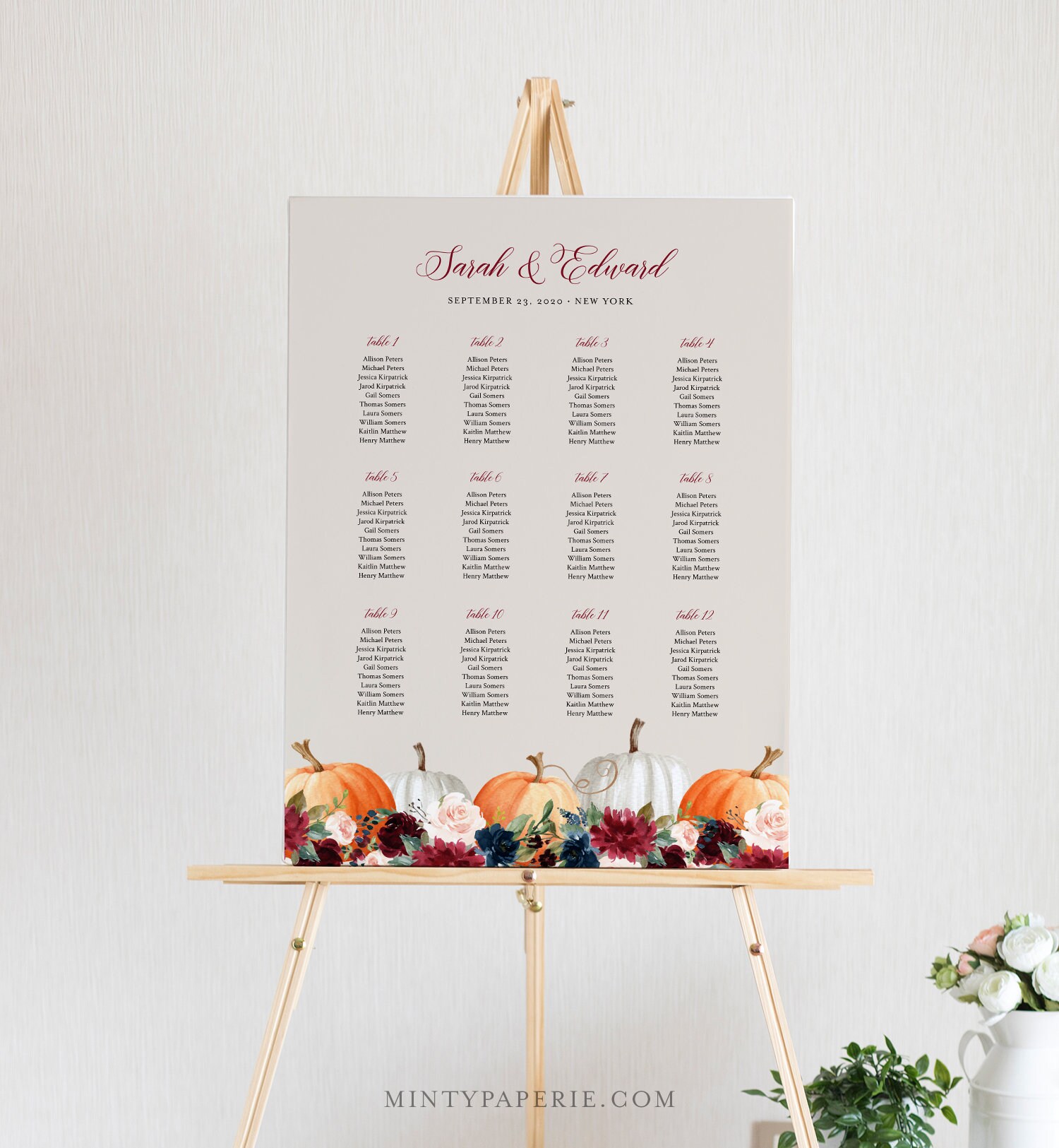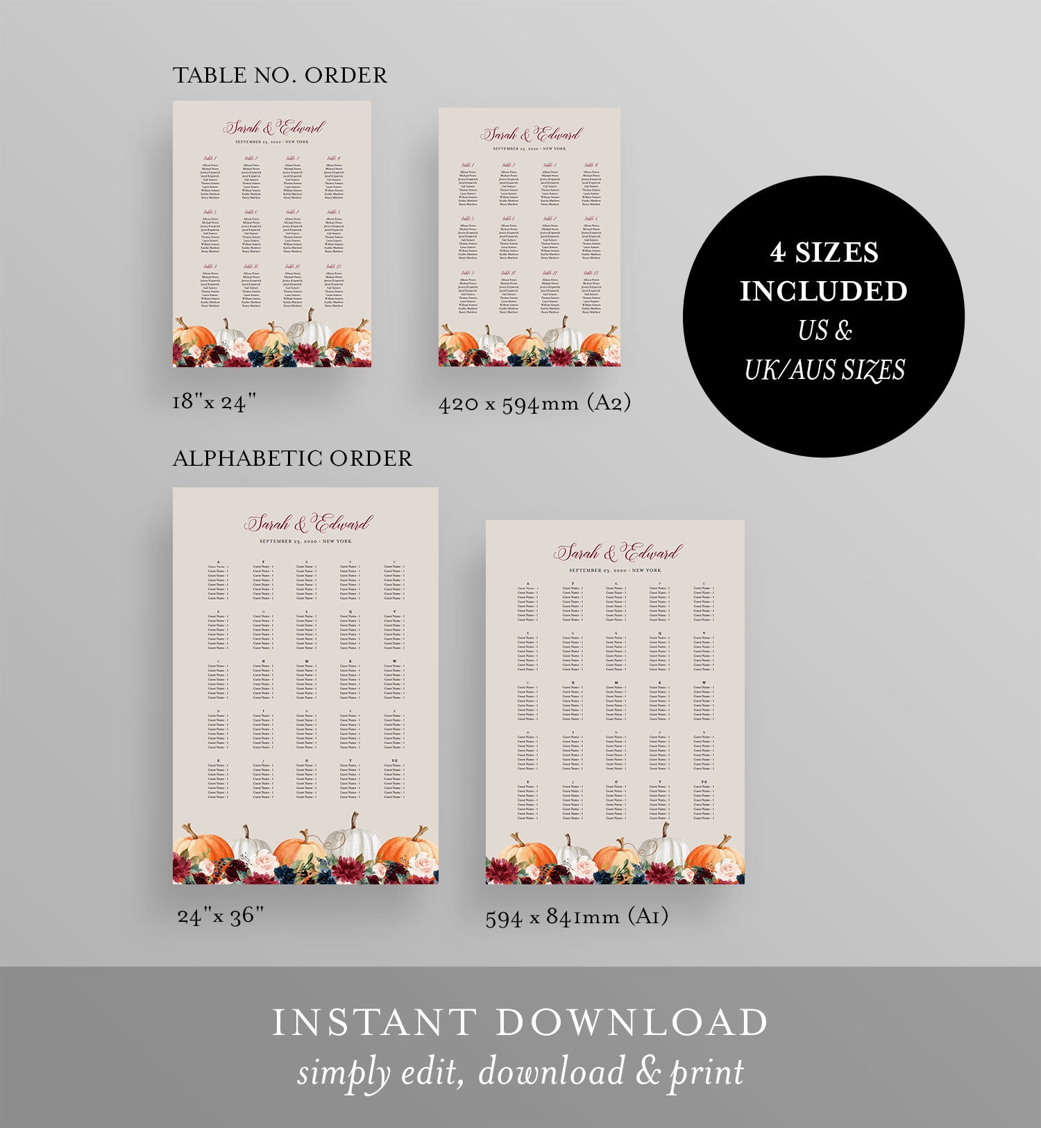 This fall pumpkin seating chart template is an instant download. Access your template within minutes of purchase and edit in Templett - A fully customizable template editor that allows you to personalize your printable directly in your web browser. No software to install or fonts to download.