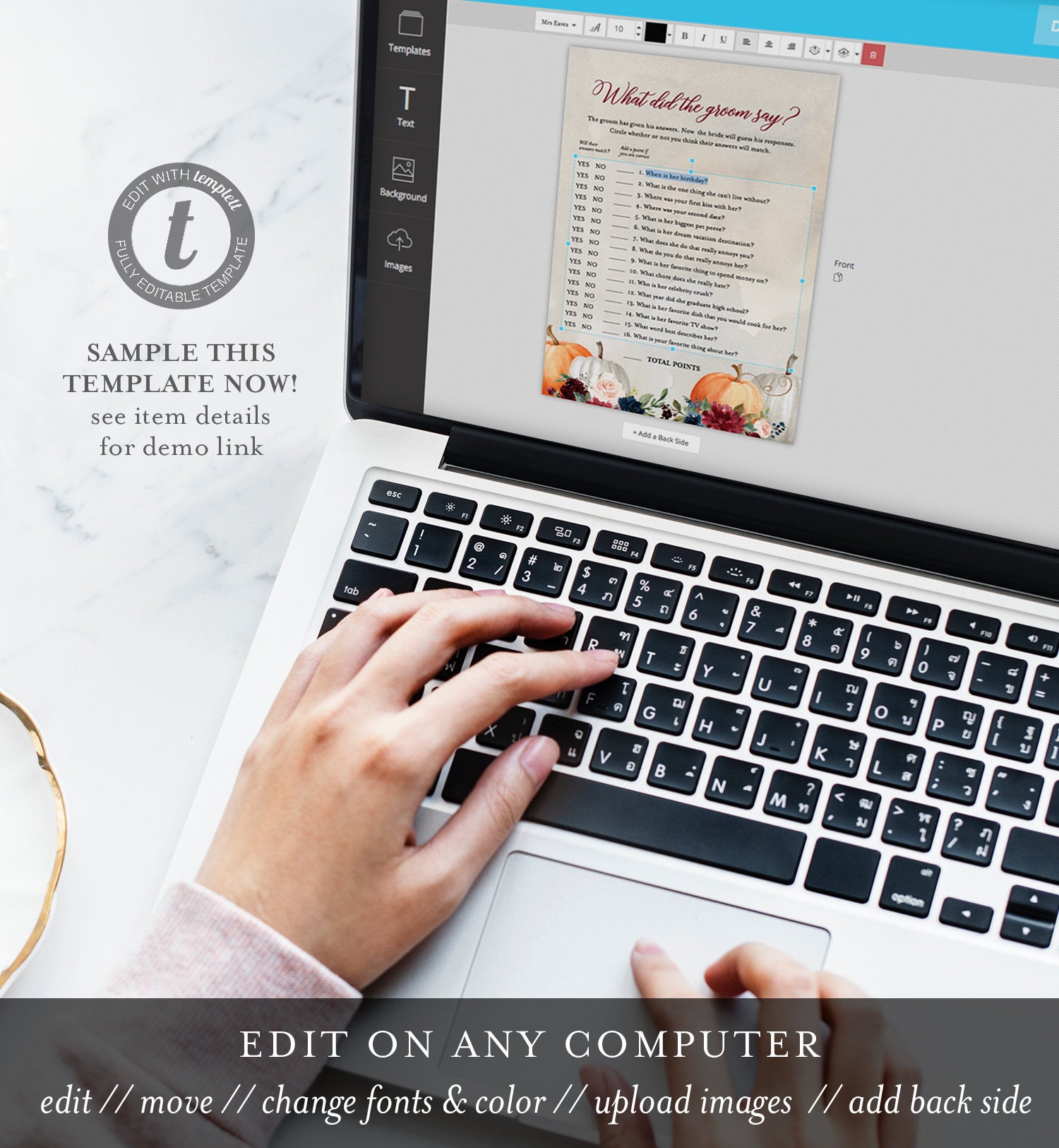 *Desktop computer or laptop only (can't be edited on a tablet or mobile device). Please be sure your browser is updated to the latest version as the Templett application uses some of the latest web technologies.