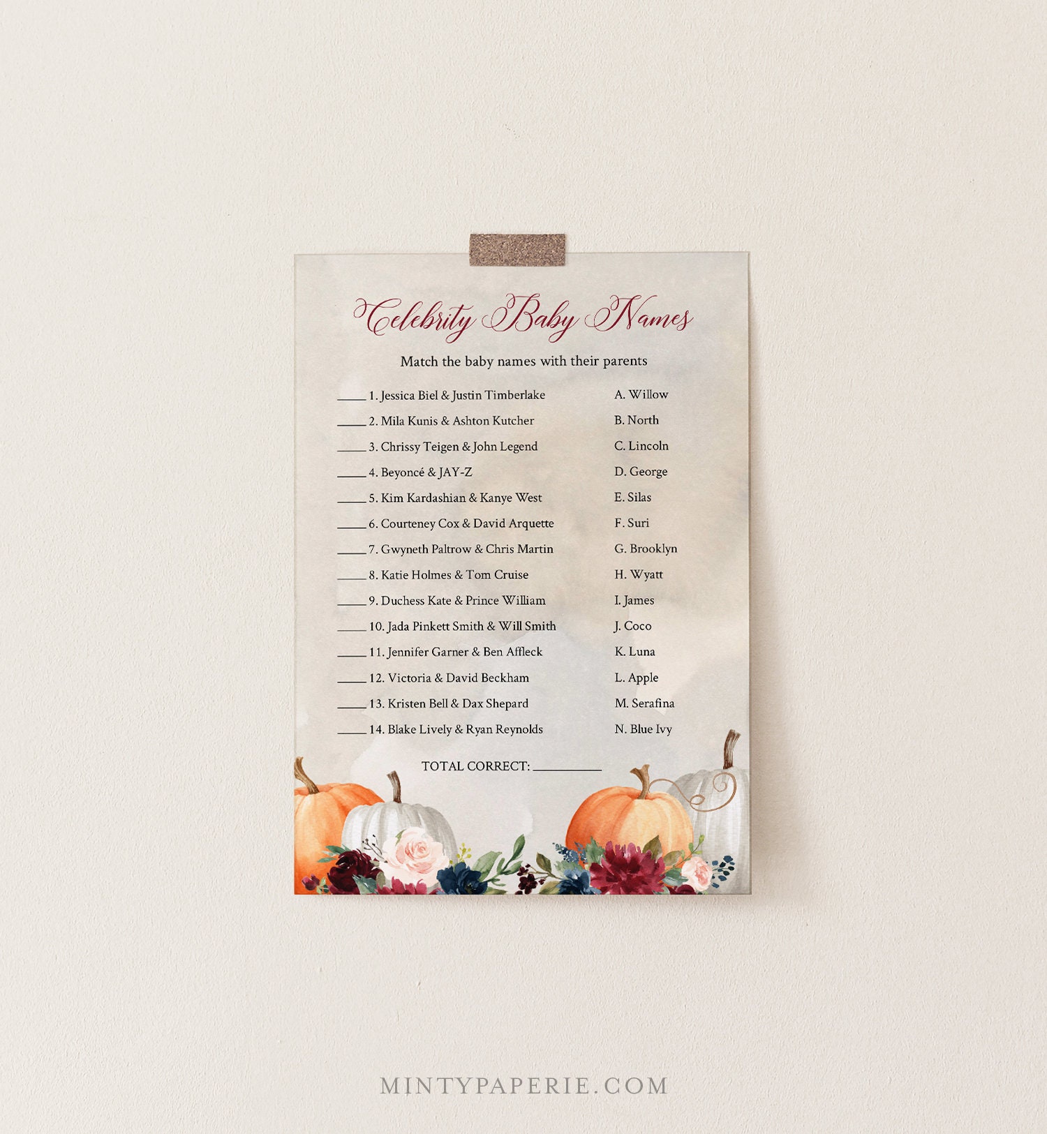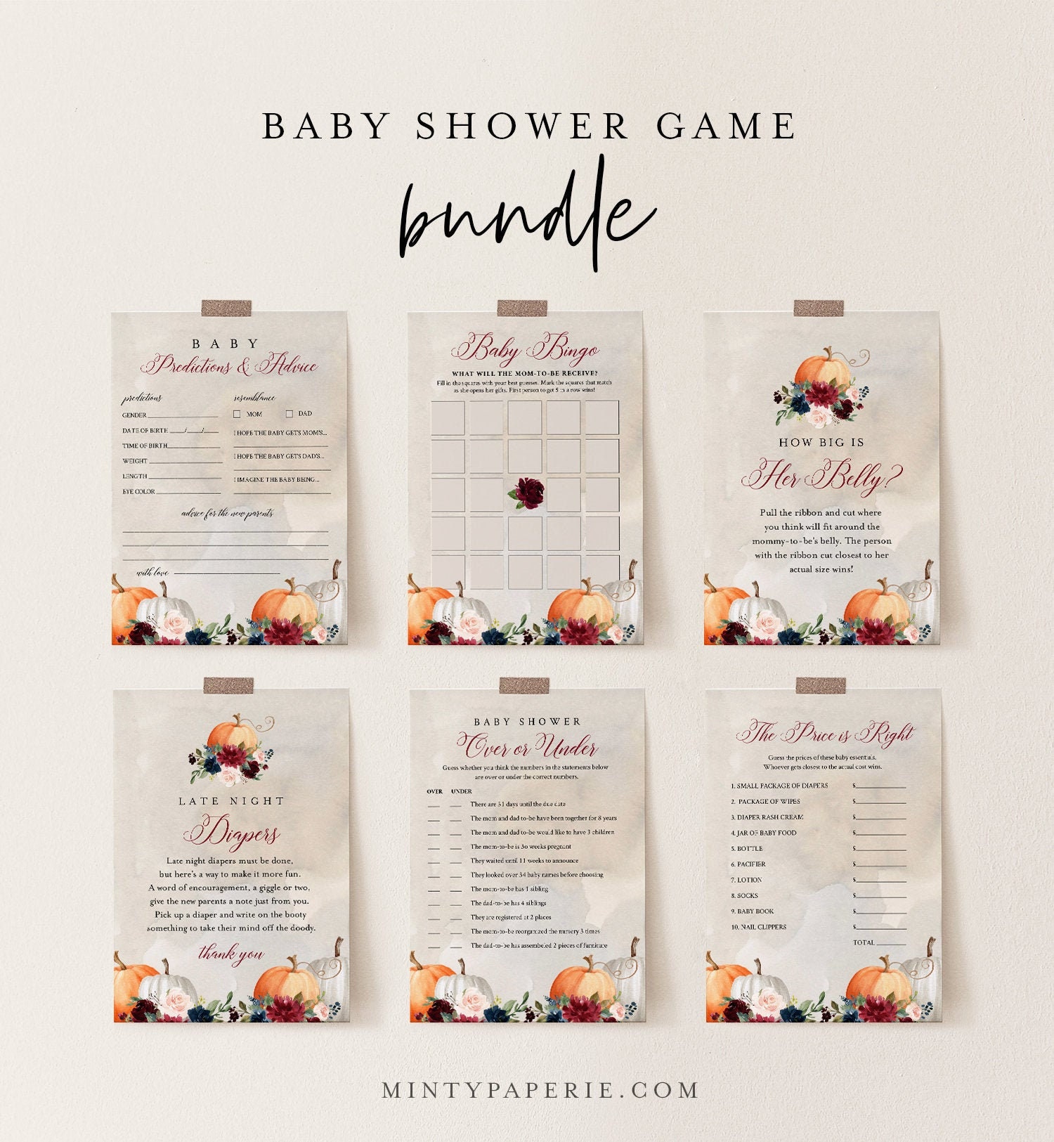 Save money with this fall pumpkin baby shower game bundle. All of these games are editable and can be customized with the bride and groom names, edit/add/remove personal questions and add photos.
