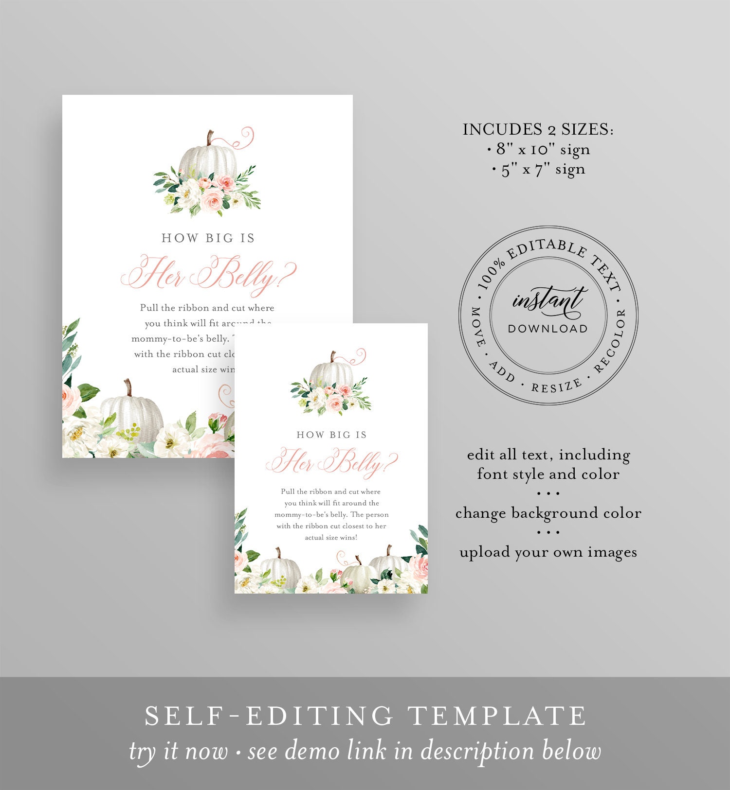 This How Big Is Her Belly Baby Shower Game template is an instant download. Access your template within minutes of purchase and edit in Templett - A fully customizable template editor that allows you to personalize your printable directly in your web browser. No software to install or fonts to download.