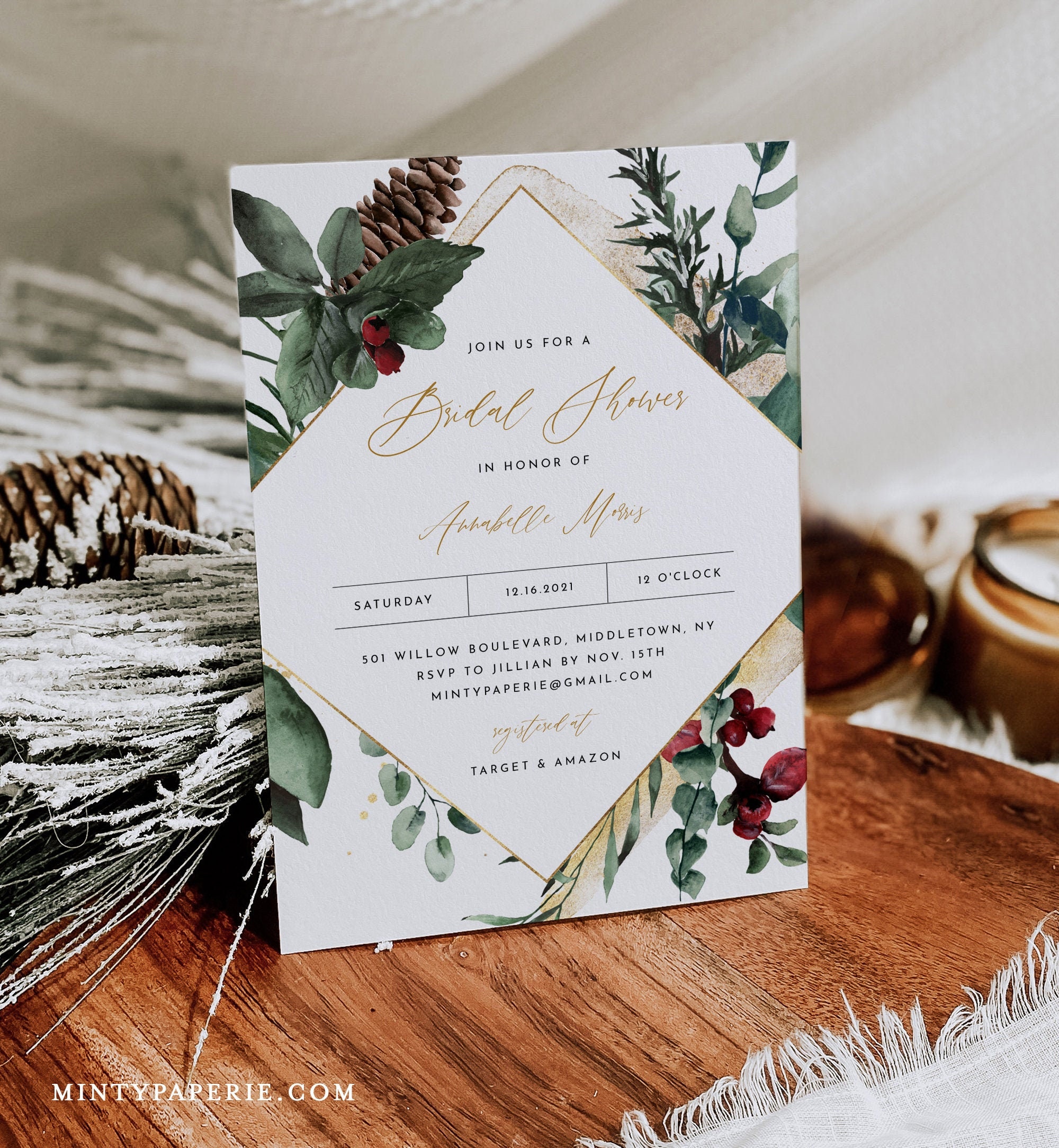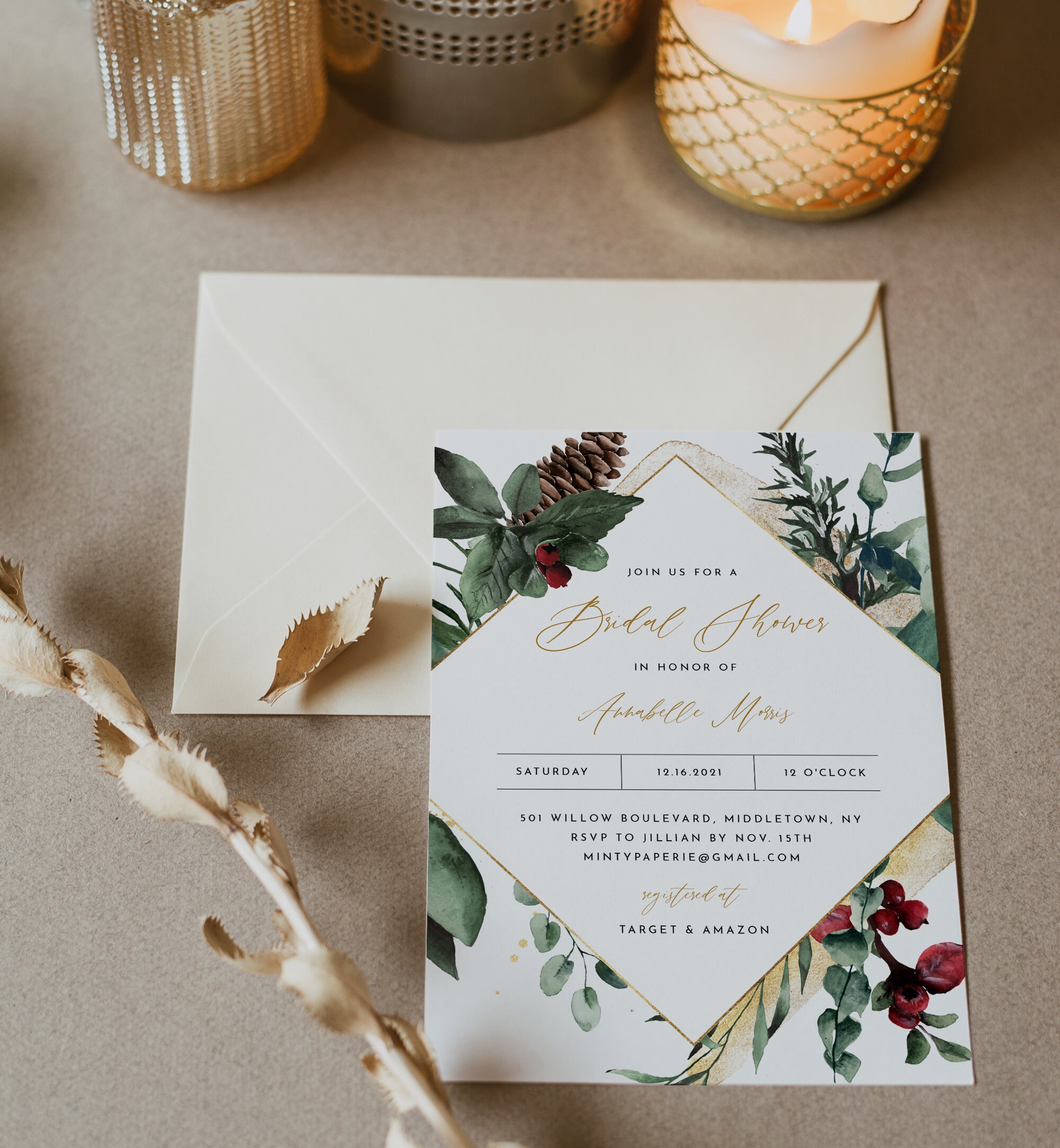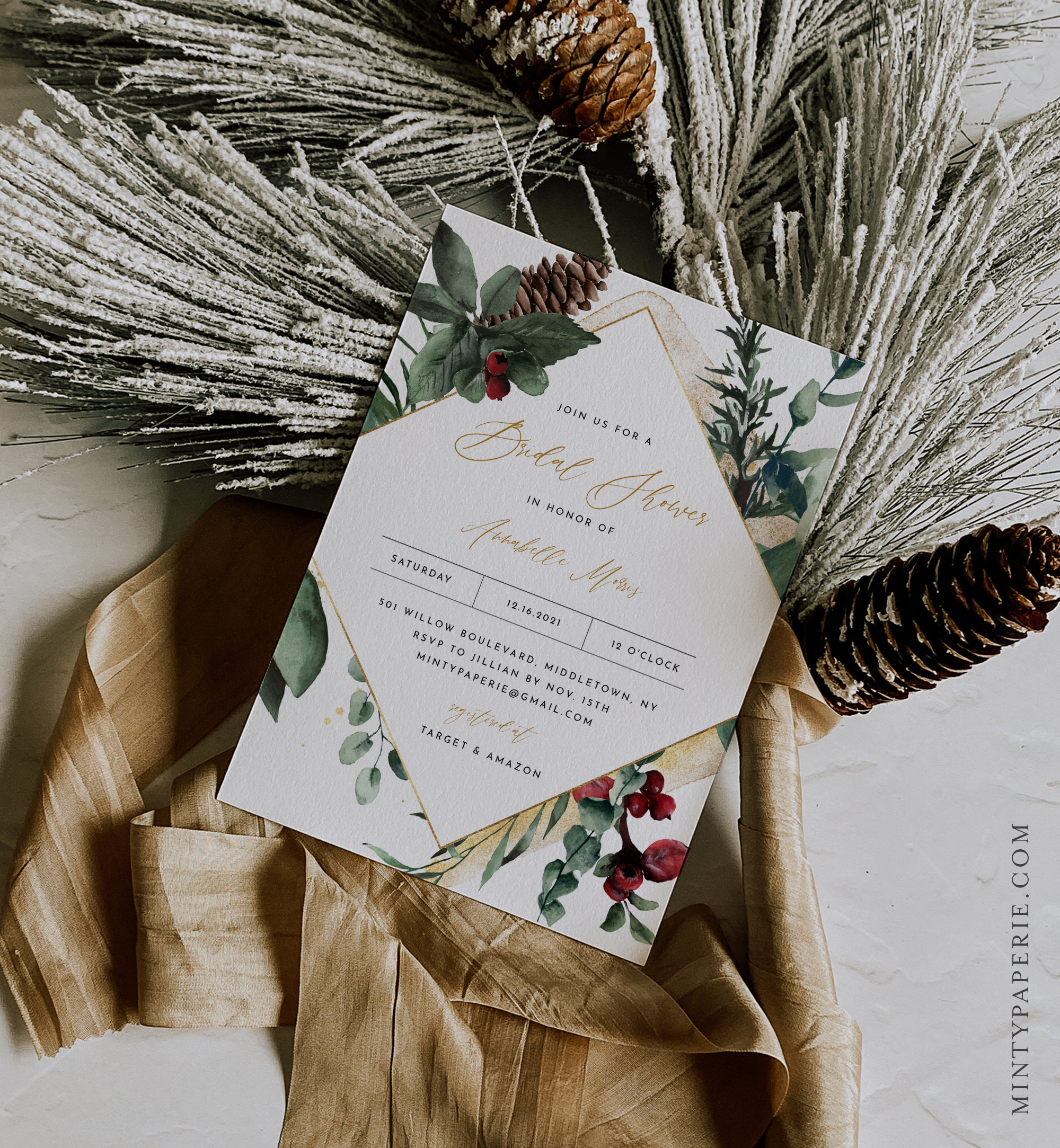 This winter bridal shower invitation template is an instant download. Access your template within minutes of purchase and edit using Templett - A fully customizable template editor that allows you to personalize your printable directly in your web browser. No software to install or fonts to download.