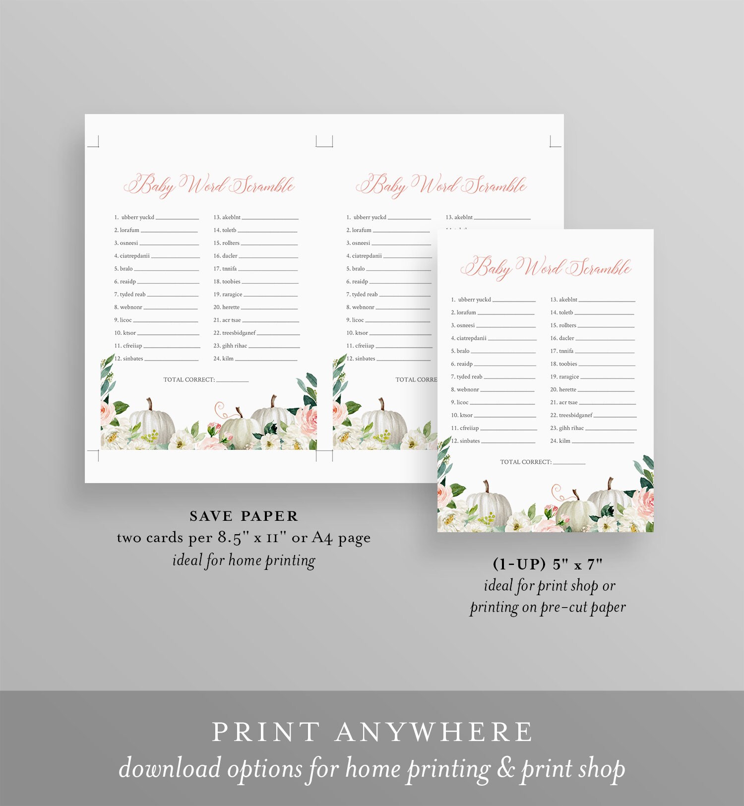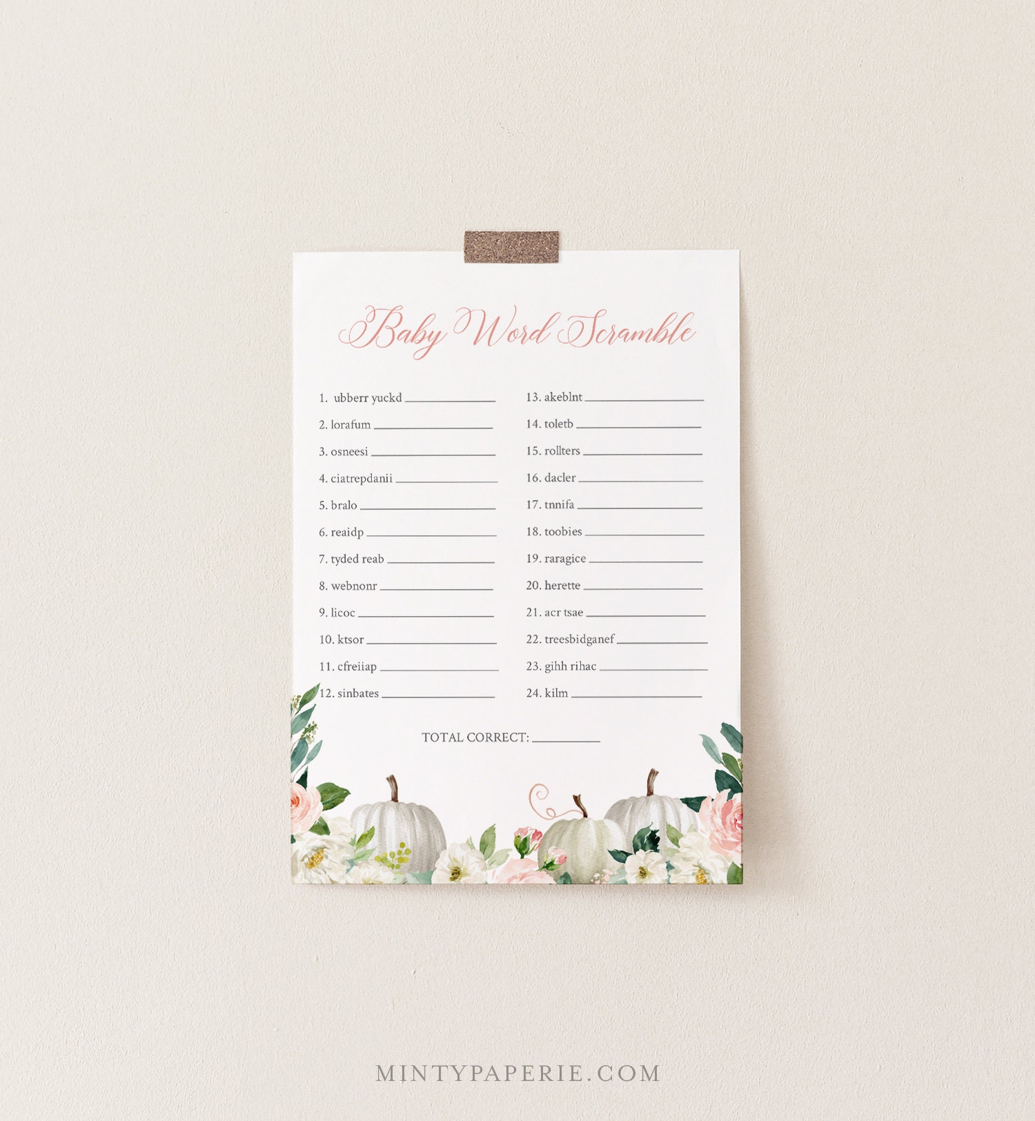 This baby word scramble game template is an instant download. Access your template within minutes of purchase and edit using Templett - A fully customizable template editor that allows you to personalize your printable directly in your web browser. No software to install or fonts to download.