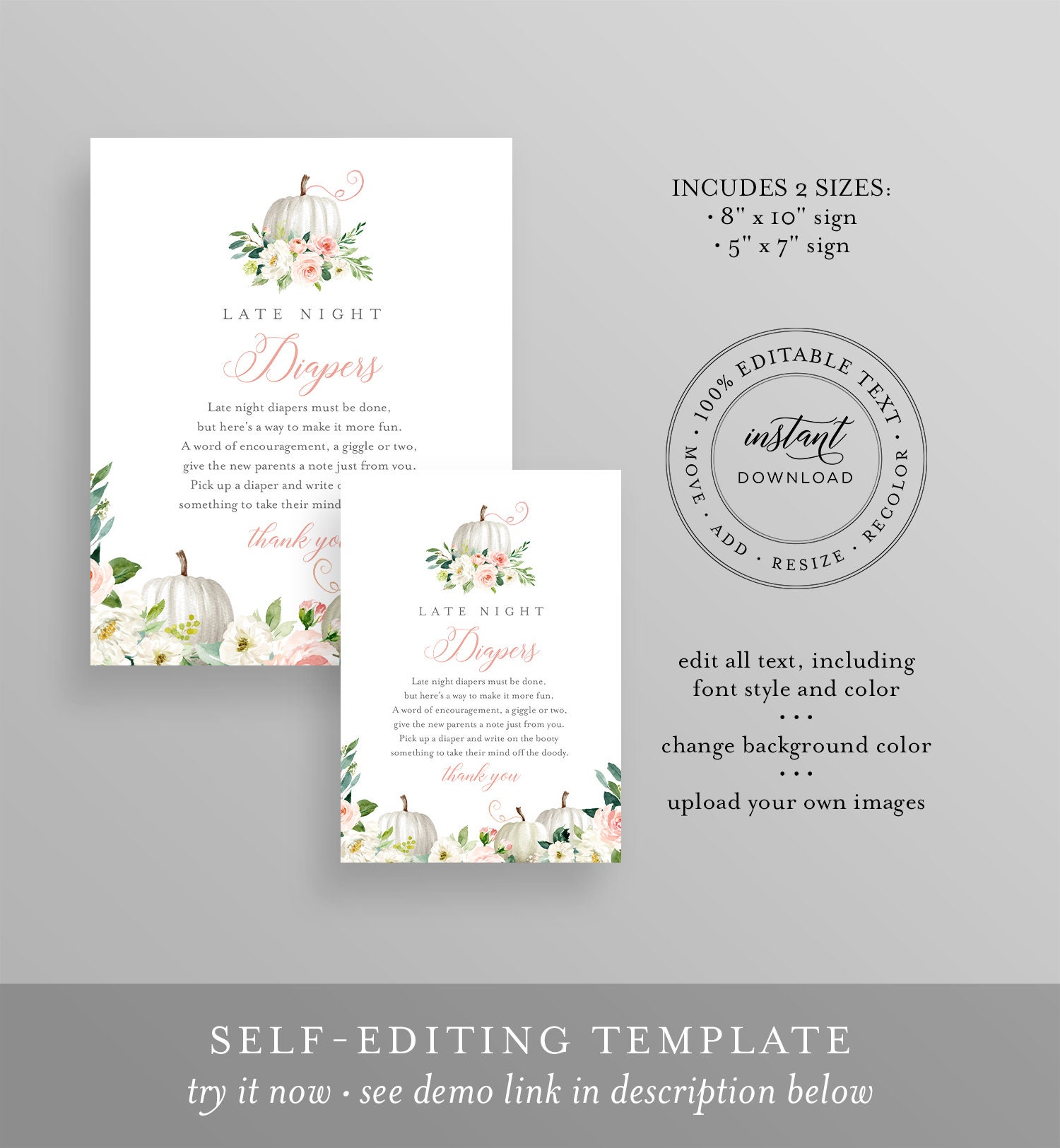 This Late Night Diapers baby shower game template is an instant download. Access your template within minutes of purchase and edit using Templett - A fully customizable template editor that allows you to personalize your printable directly in your web browser. No software to install or fonts to download.