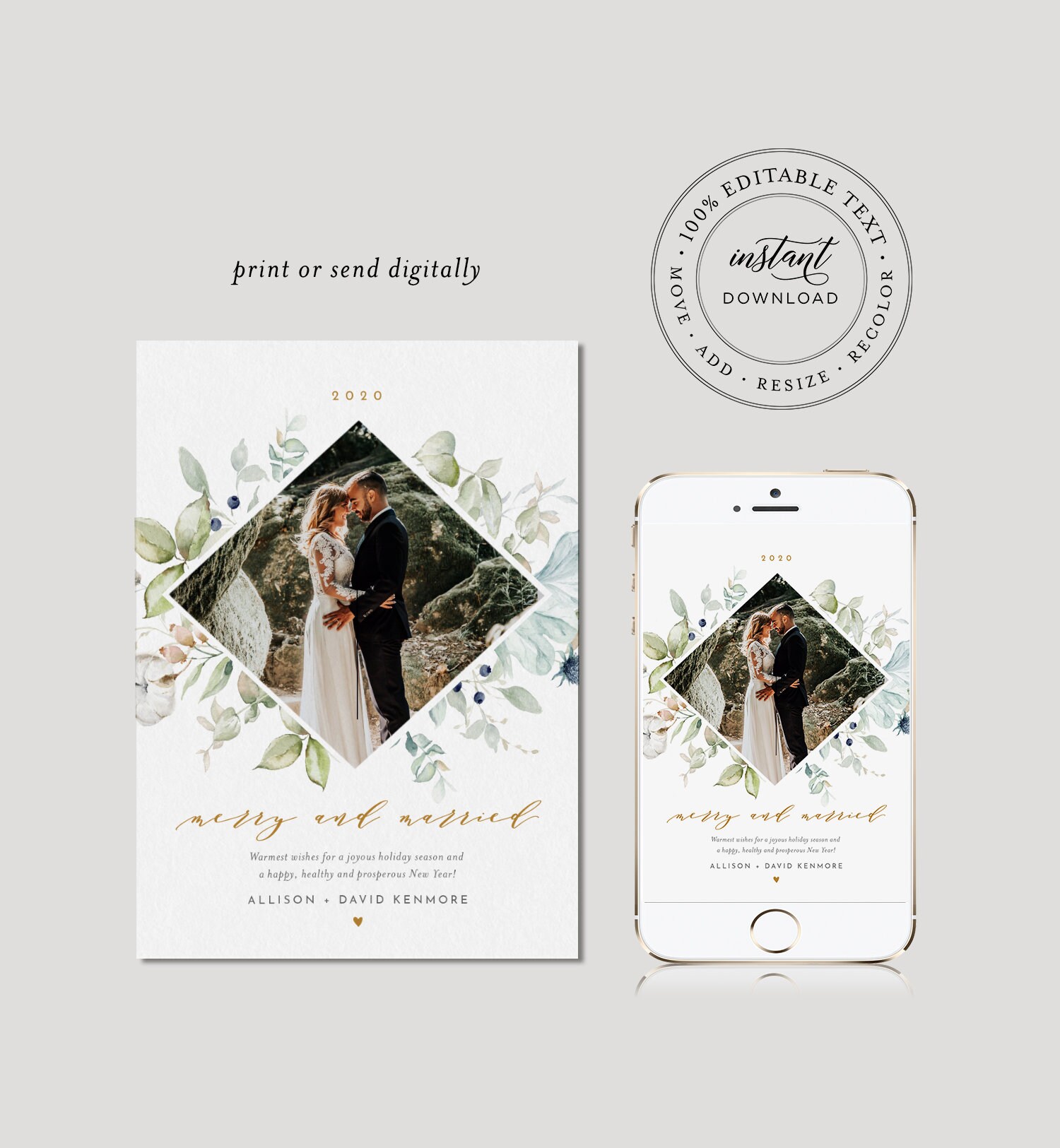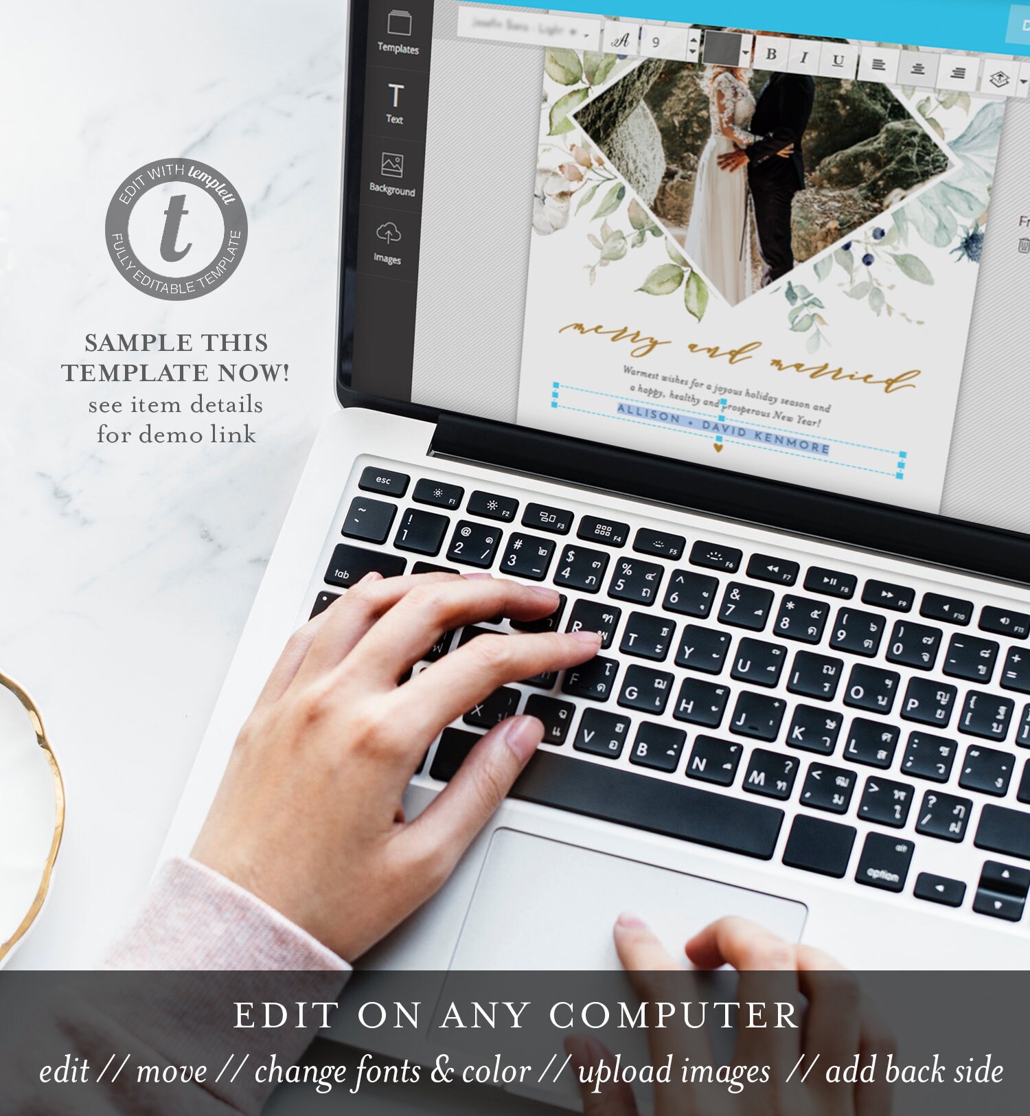 This photo holiday card template is an instant download. Access your template within minutes of purchase and edit using Templett - A fully customizable template editor that allows you to personalize your printable directly in your web browser. No software to install or fonts to download.