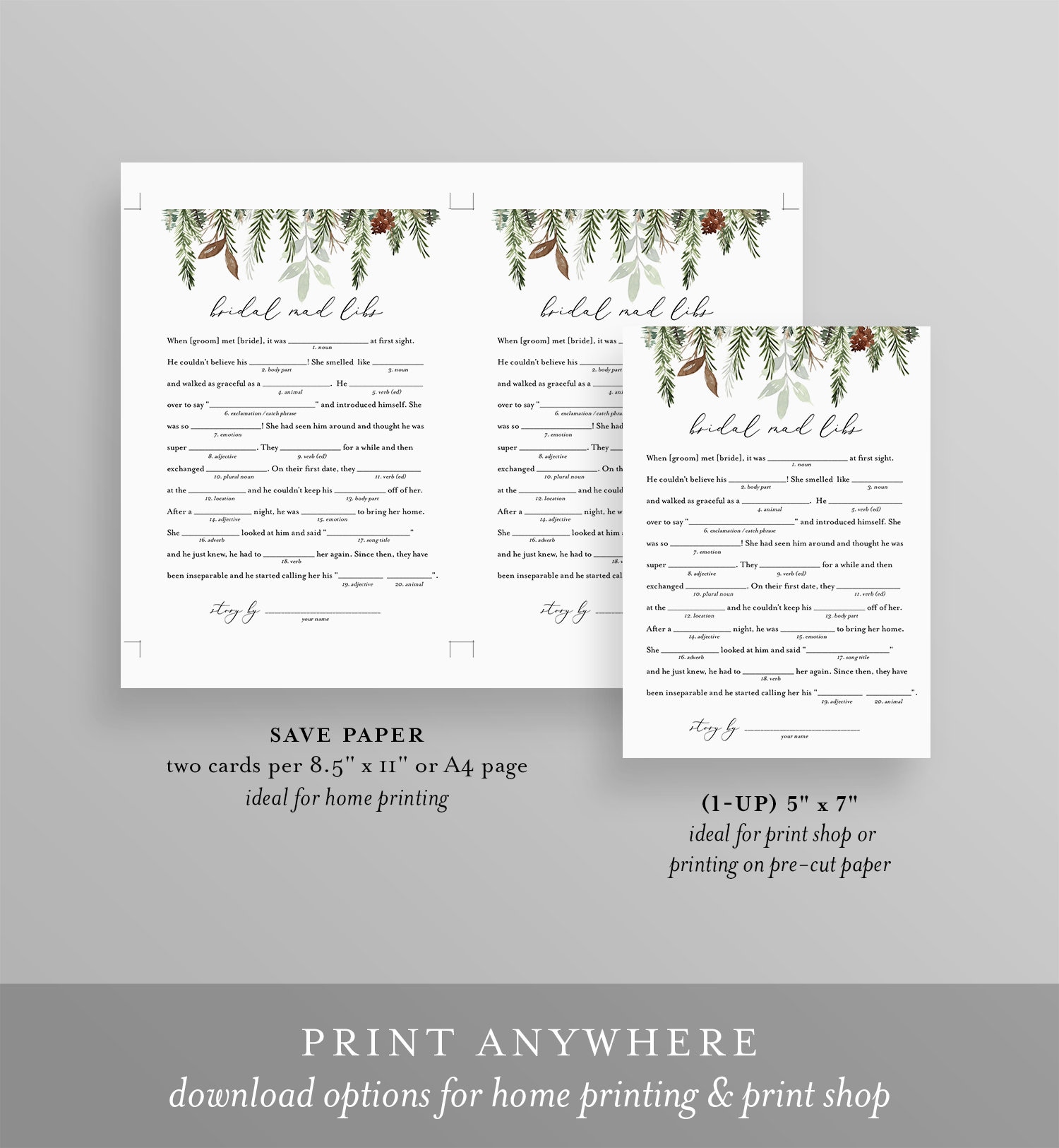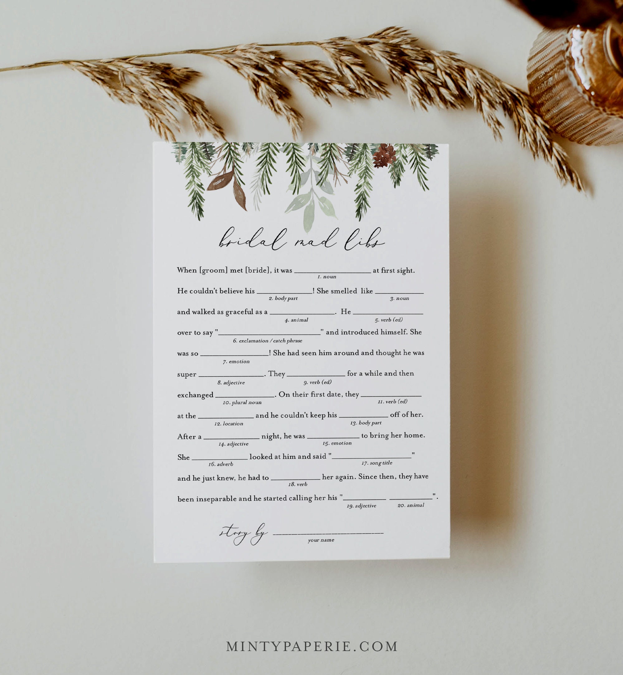This bridal mad lib is an instant download. Access your template within minutes of purchase and edit in Templett - A fully customizable template editor that allows you to personalize your printable directly in your web browser. No software to install or fonts to download.