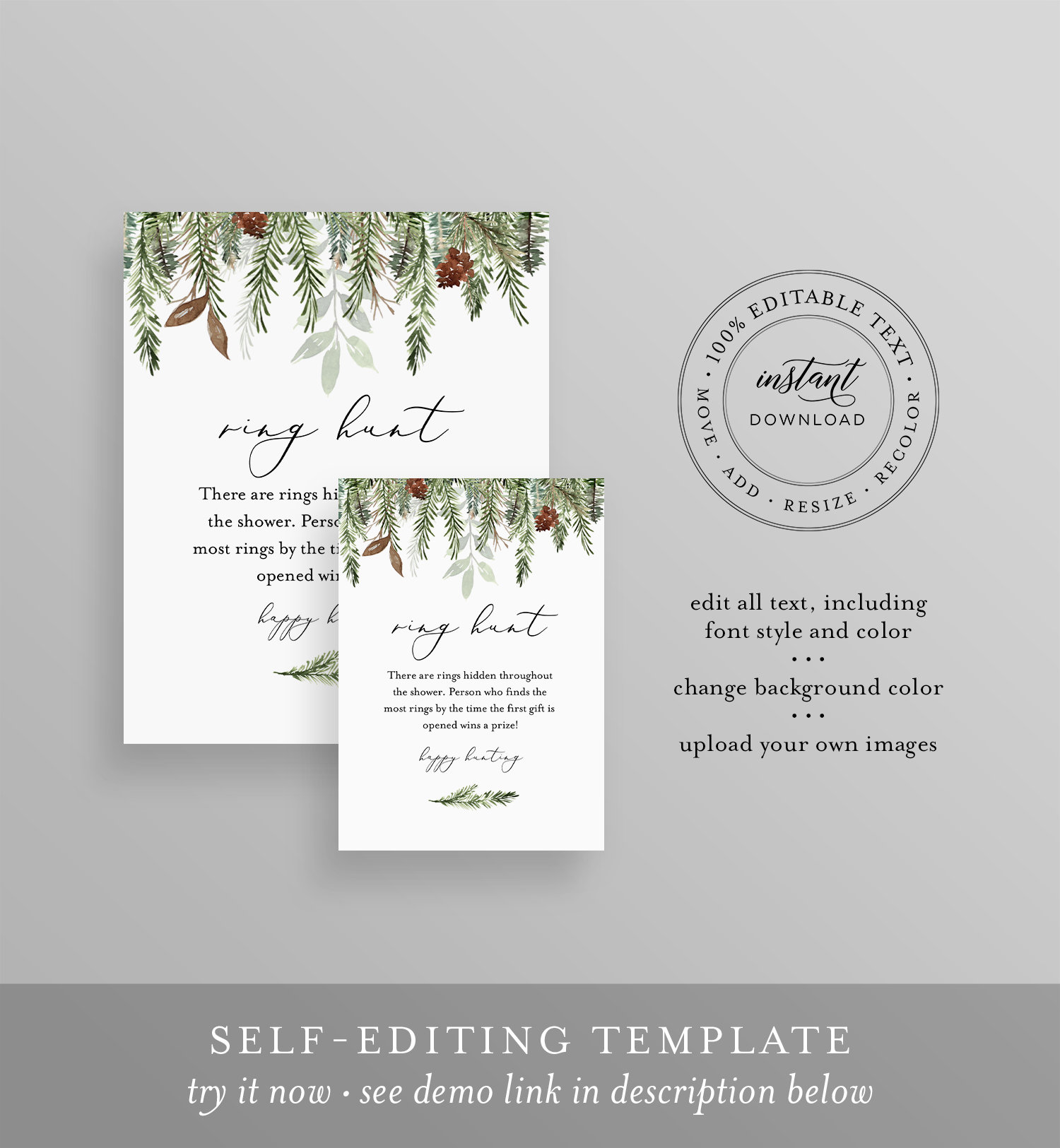 This ring hunt bridal shower game is an instant download. Access your template within minutes of purchase and edit in Templett - A fully customizable template editor that allows you to personalize your printable directly in your web browser. No software to install or fonts to download.