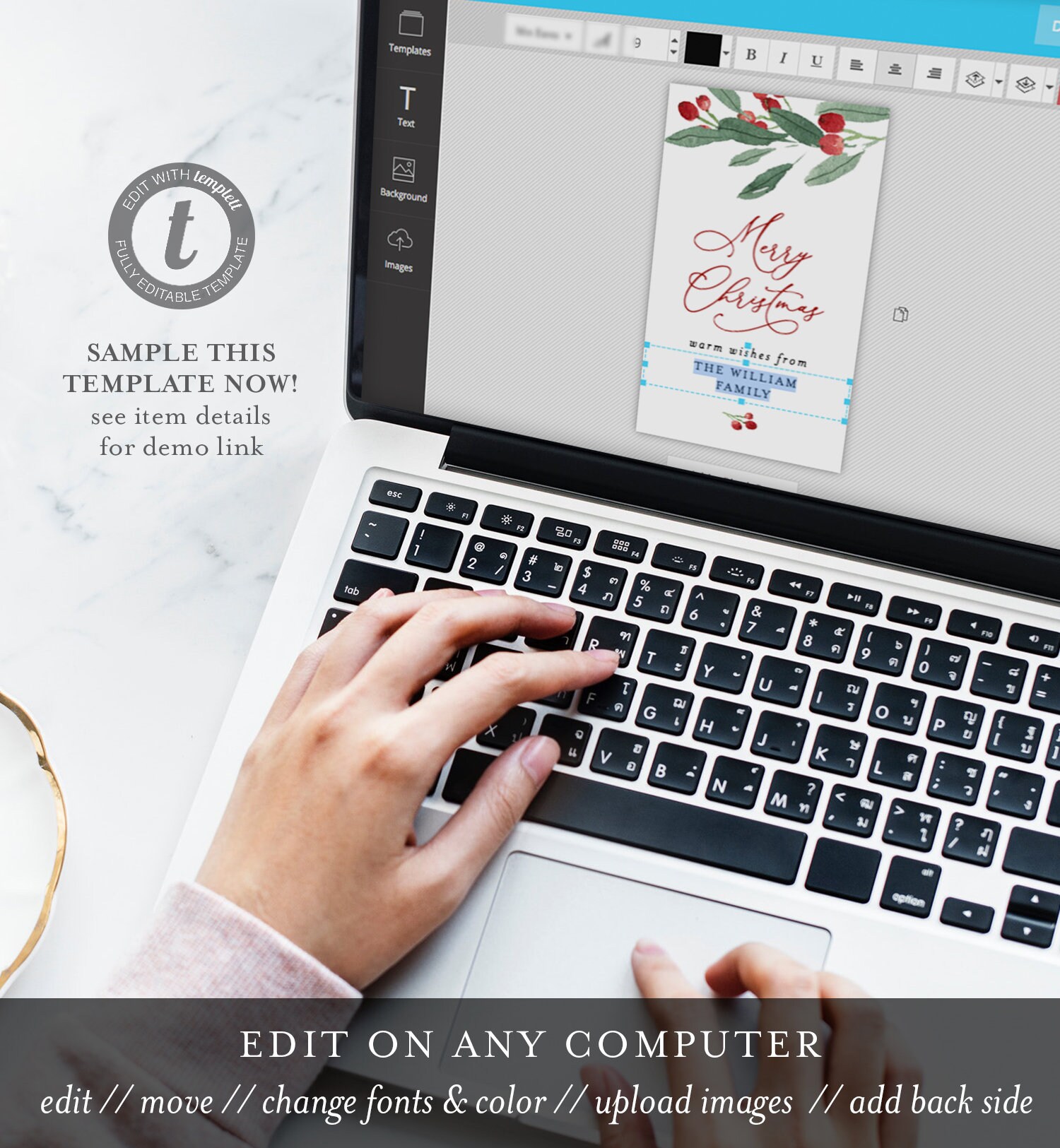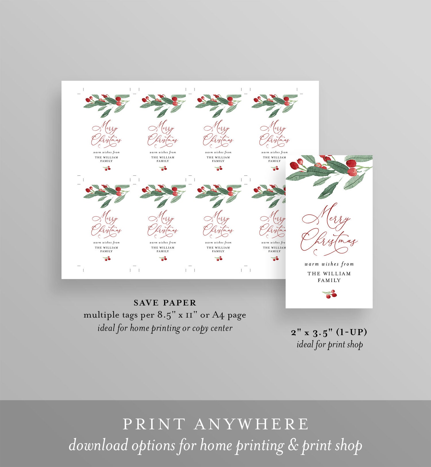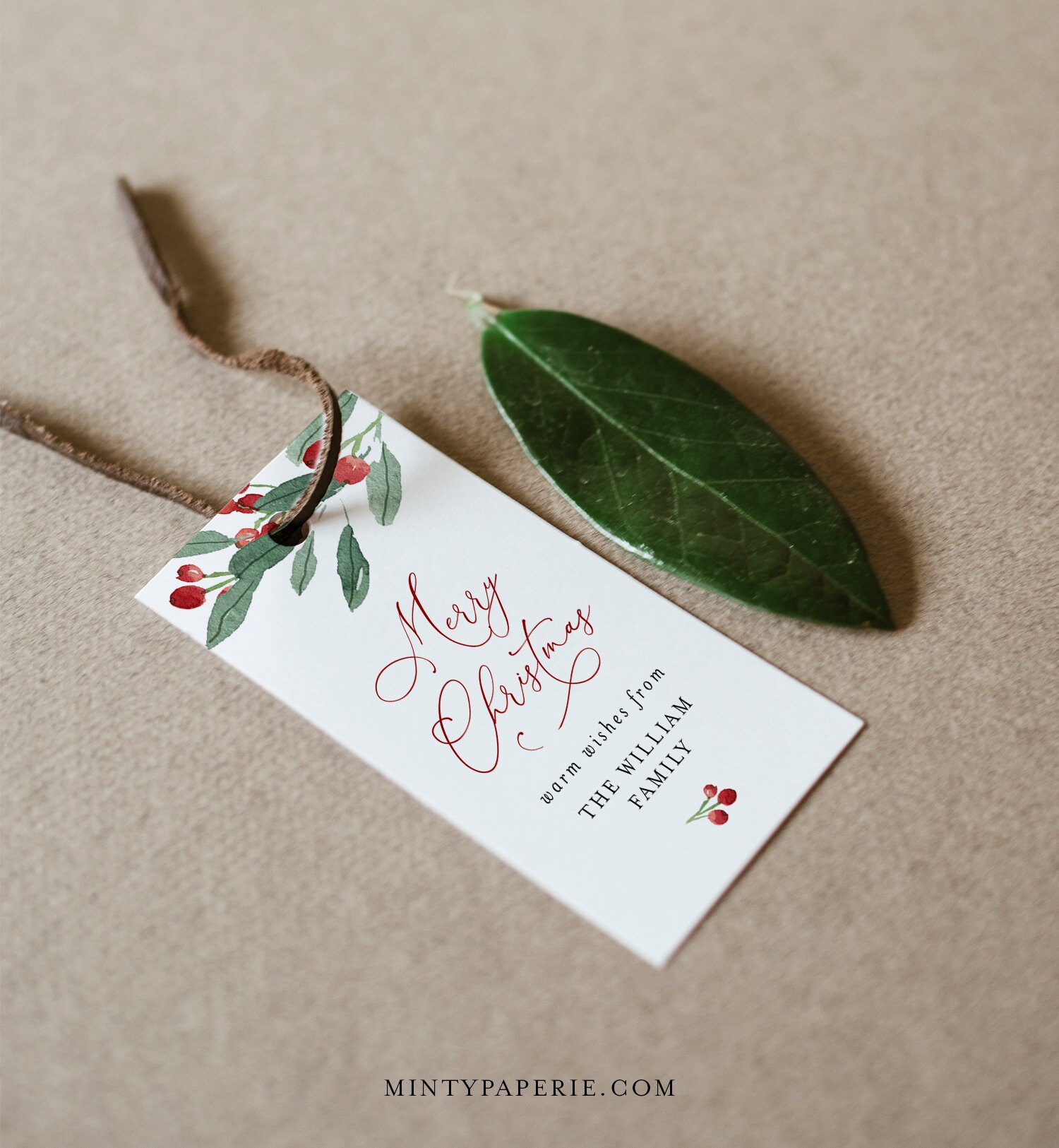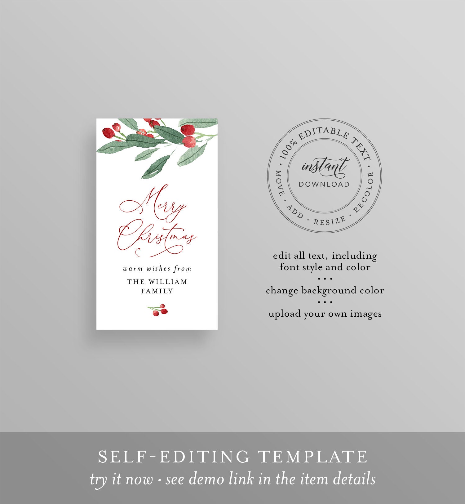 This listing is an instant download that includes a high resolution, printable Winter Holly Holiday Tag Template. Design and create as many tags as you like. Use it for a wedding, bridal shower, baby shower or birthday party. Access your template within minutes of purchase and edit in Templett - A fully customizable template editor that allows you to personalize your printable directly in your web browser. No software to install or fonts to download.