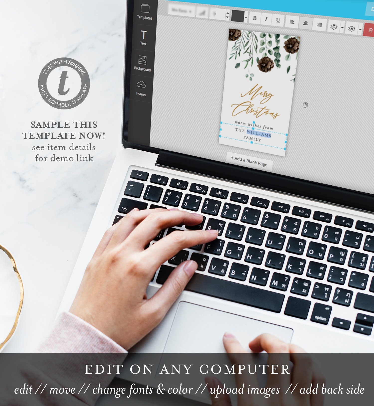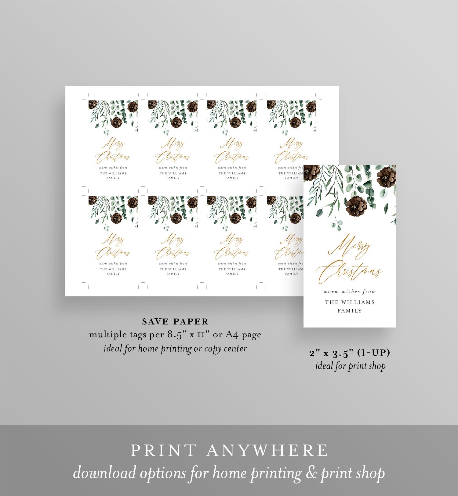 This listing is an instant download that includes a high resolution, printable Christmas Tag Template. Design and create as many tags as you like. Use it for a wedding, bridal shower, baby shower or birthday party. Access your template within minutes of purchase and edit in Templett - A fully customizable template editor that allows you to personalize your printable directly in your web browser. No software to install or fonts to download.