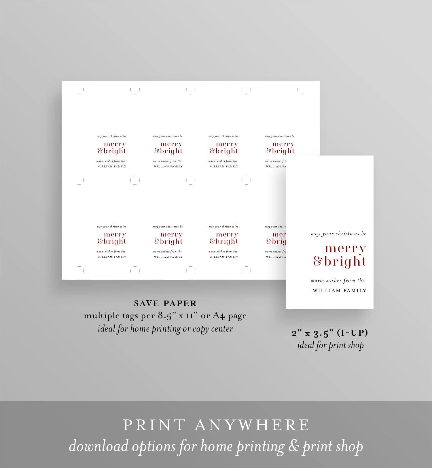 This listing is an instant download that includes a high resolution, printable Christmas Tag Template. Design and create as many tags as you like. Use it for a wedding, bridal shower, baby shower or birthday party. Access your template within minutes of purchase and edit in Templett - A fully customizable template editor that allows you to personalize your printable directly in your web browser. No software to install or fonts to download.